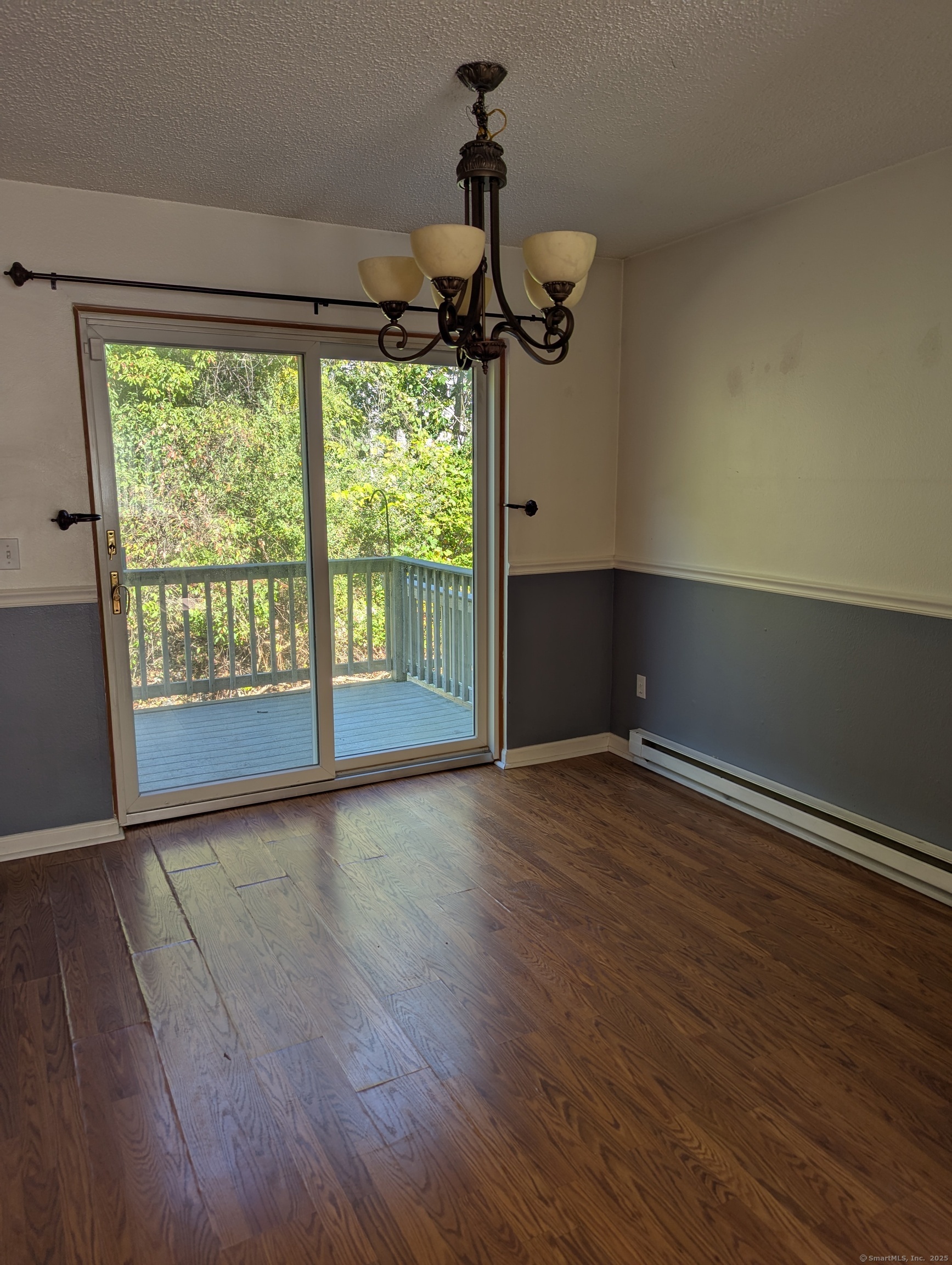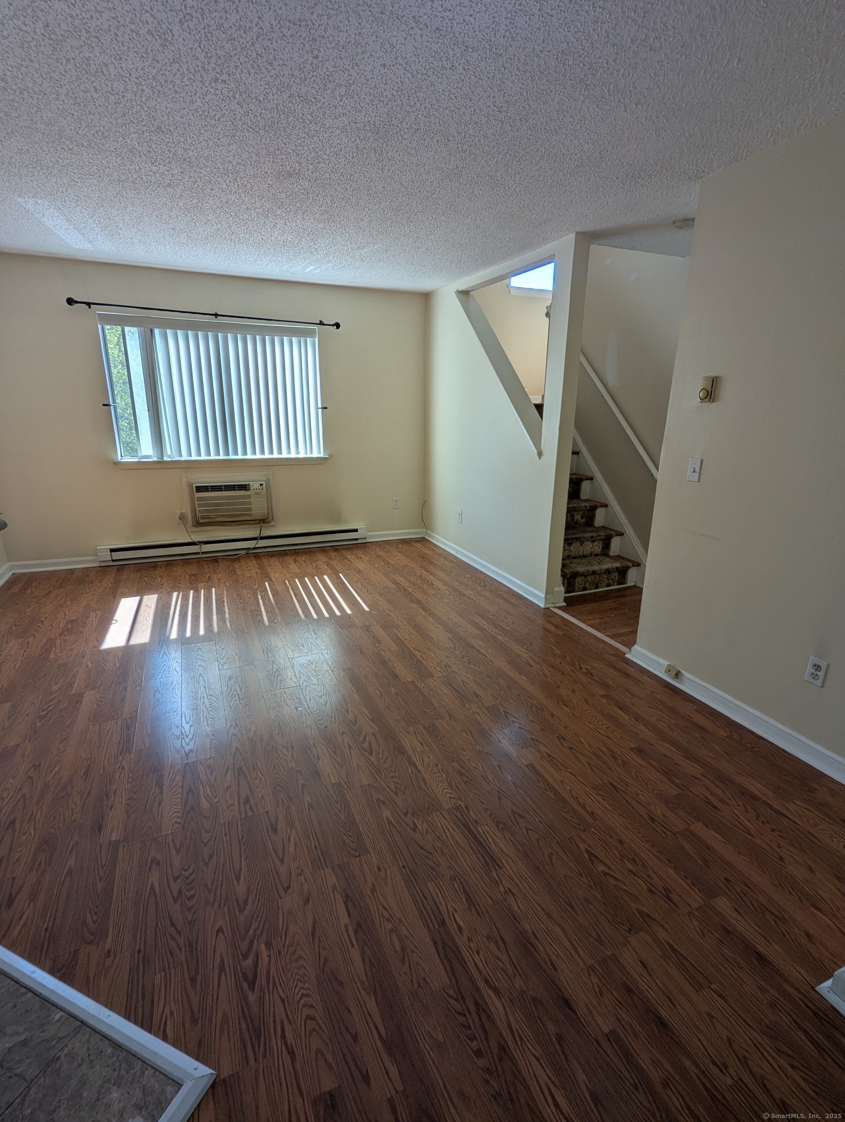 Nice floor-plan for this full size townhouse with garage under. Open floor plan with fireplace and slider to deck with private setting. Newer oven/range and brand new microwave .3 a/c wall units. Large primary bedroom with walk-in closet and bathroom entrance.Nice finished room in lower level for extra flex space. great commuter location in well kept condo complex !