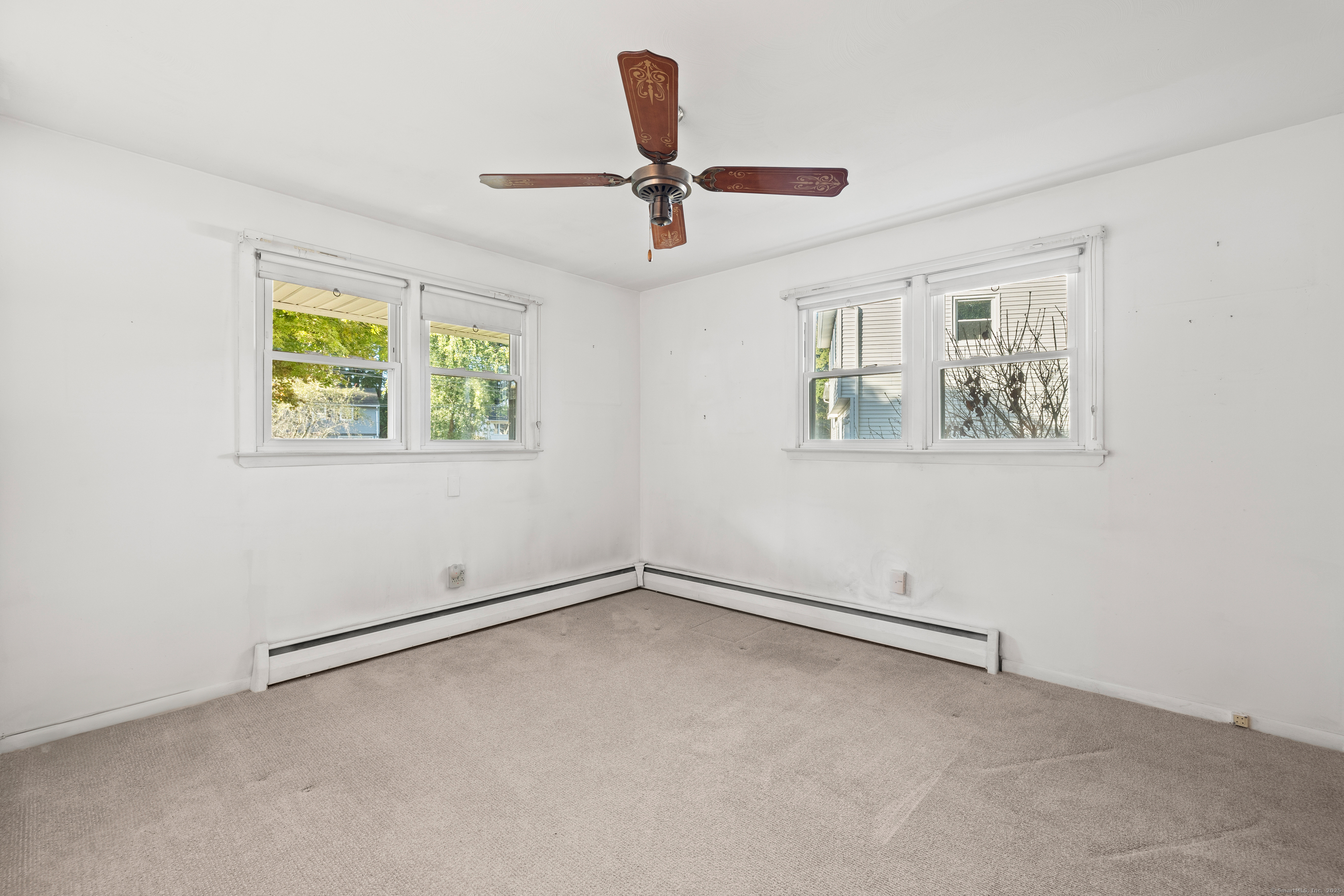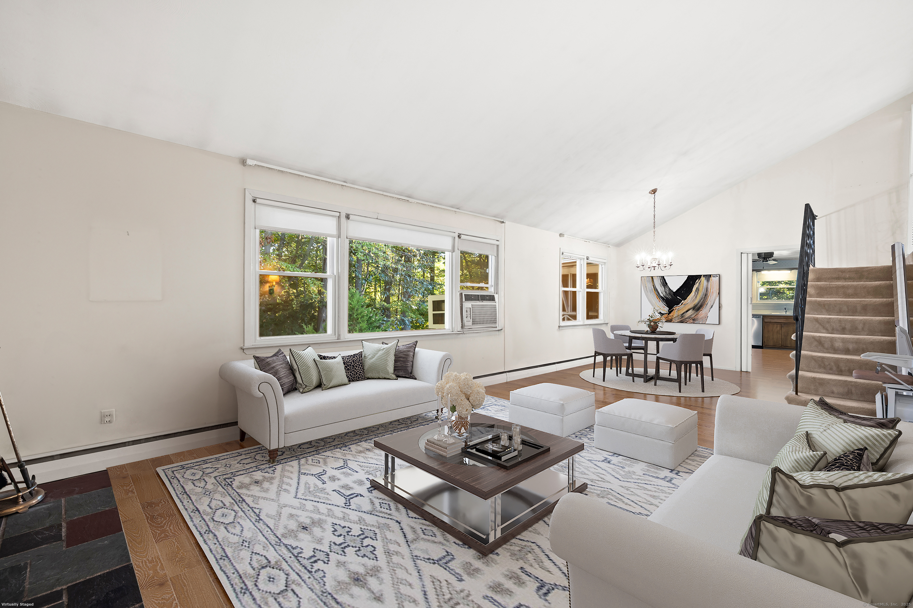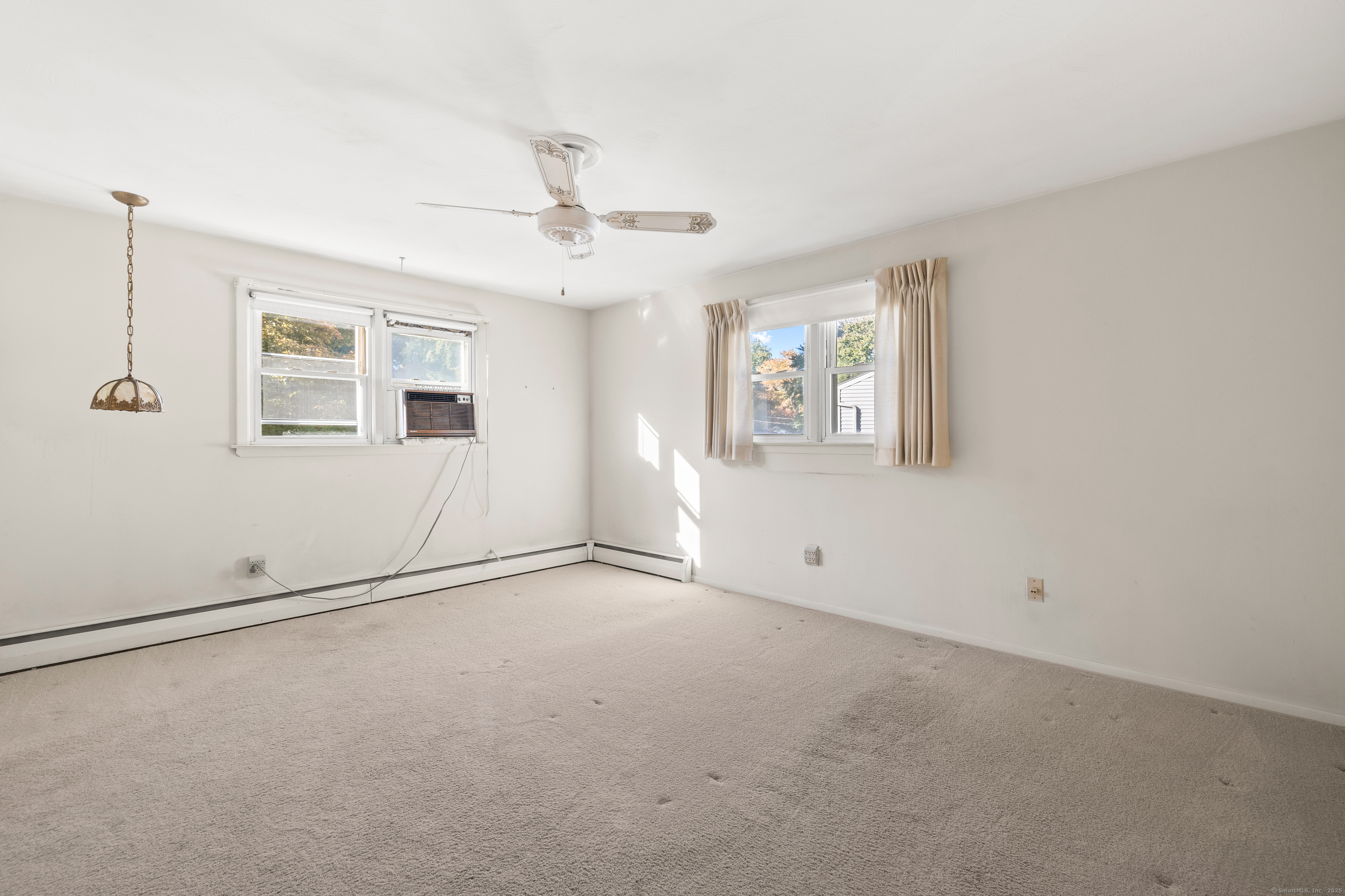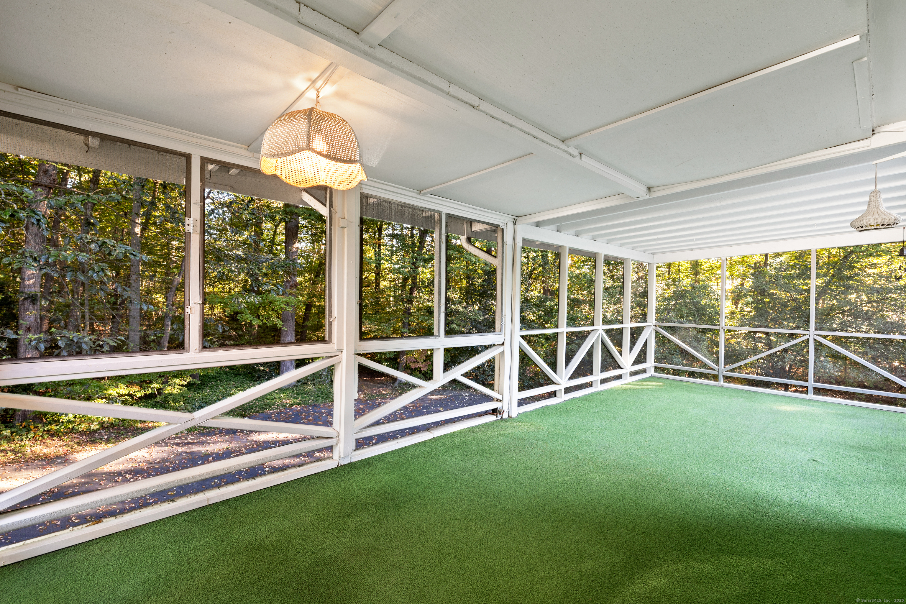 Tucked away on a quiet cul-de-sac and backing up to The Hartford Golf Club, this spacious split-level home offers the perfect blend of comfort, function, and location. With 3 bedrooms, 2.1 bathrooms, and multiple living areas, there's room for everyone to spread out and enjoy. Step inside to find a welcoming living room/dining room combination, filled with natural light. Hardwood floors lie beneath the carpeting, ready to be uncovered and restored to their original charm. The adjacent kitchen offers a practical layout for daily living and entertaining, along with a breakfast nook, perfect for casual meals or morning coffee. A cozy family room provides the ideal spot for movie nights, while a separate den offers flexibility as a 4th bedroom, home office, playroom, or guest space. Upstairs, you'll find three spacious bedrooms, each with hardwood floors hidden beneath the carpet, providing a great opportunity to enhance the home's character and charm. The primary bedroom features an attached ensuite bathroom with finishes that have been well maintained. One of the standout features of this home is the sunporch-a bright, peaceful retreat located just off the back of the house. It offers a comfortable indoor-outdoor feel and is the perfect spot to relax rain or shine.