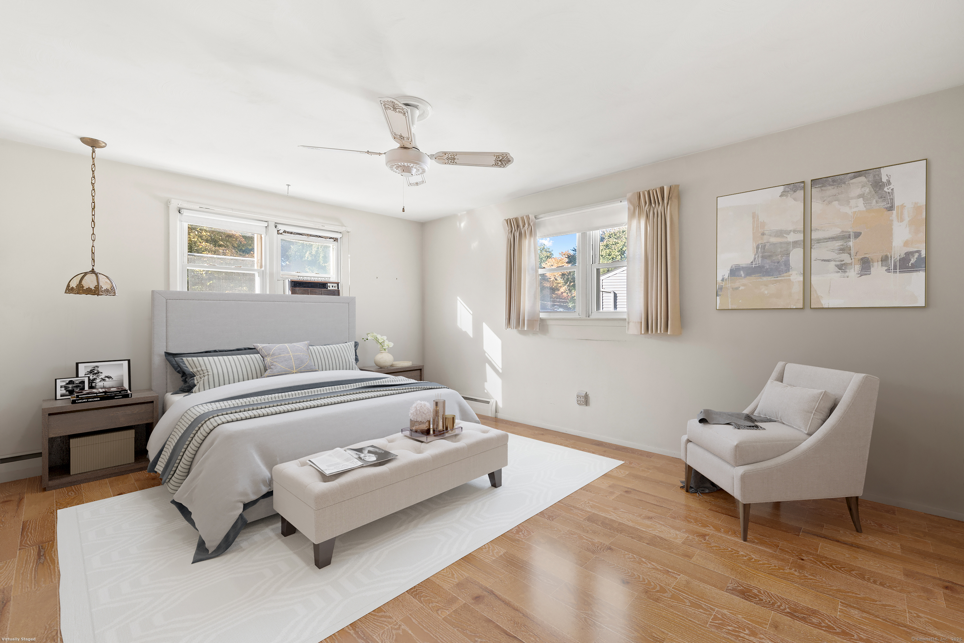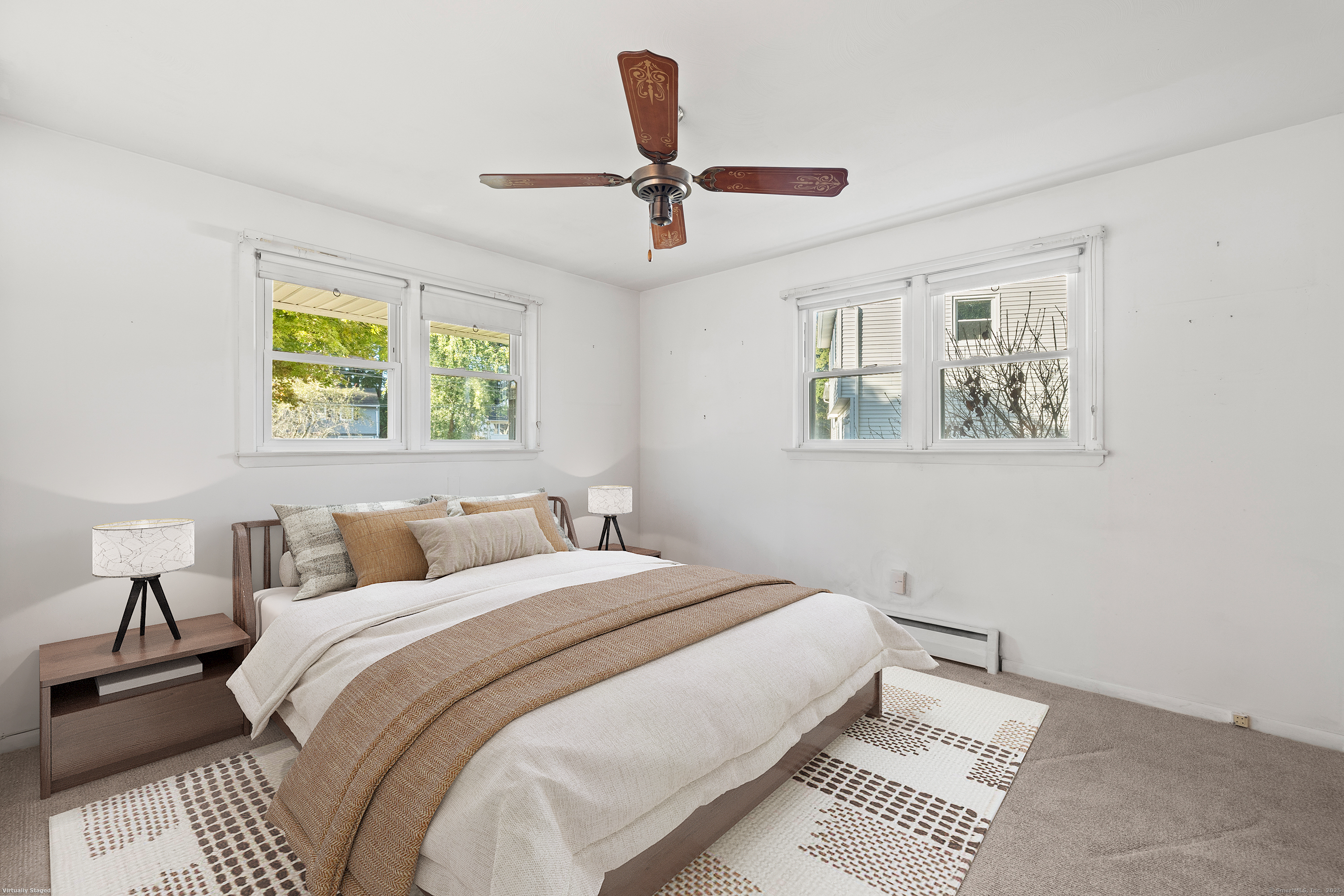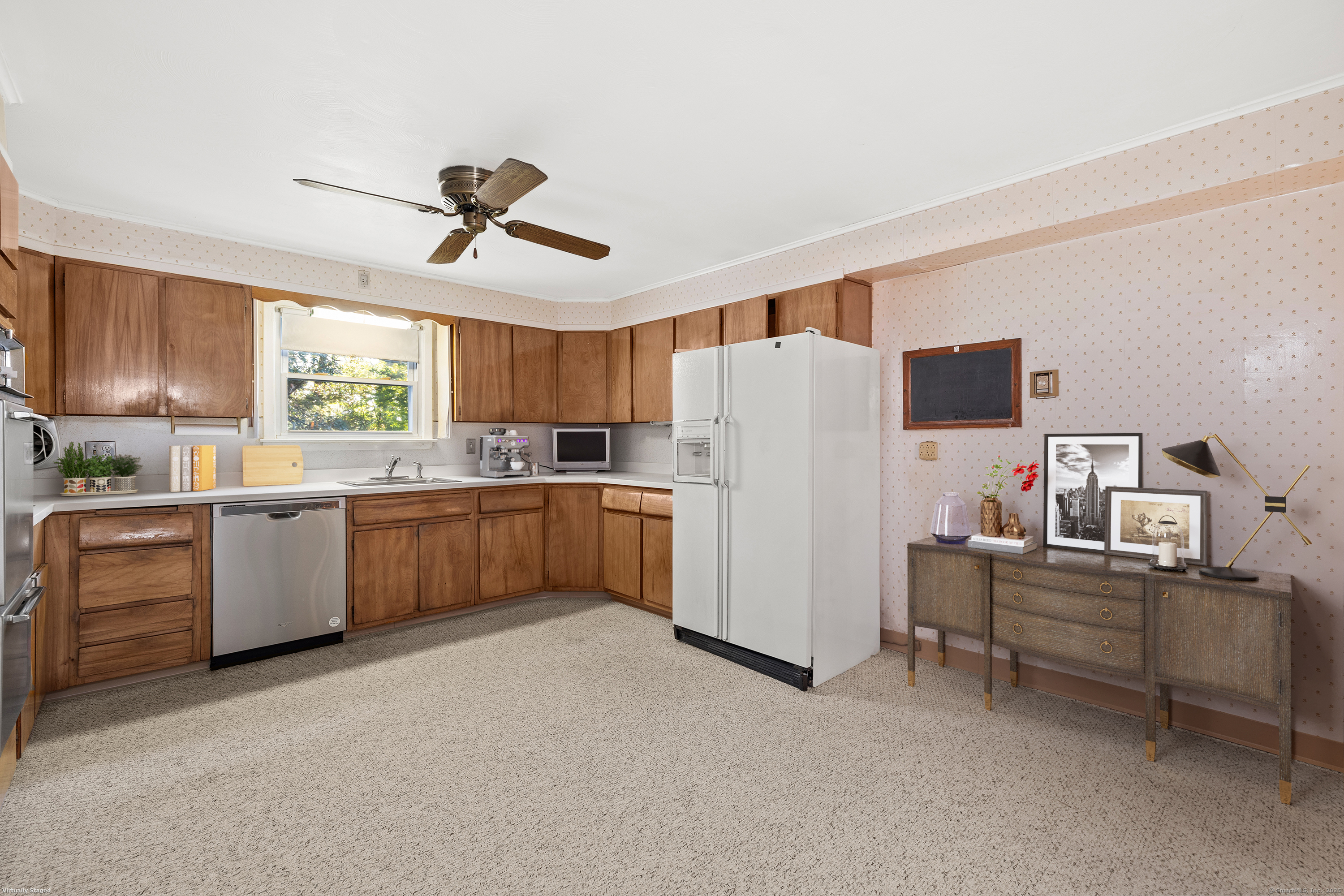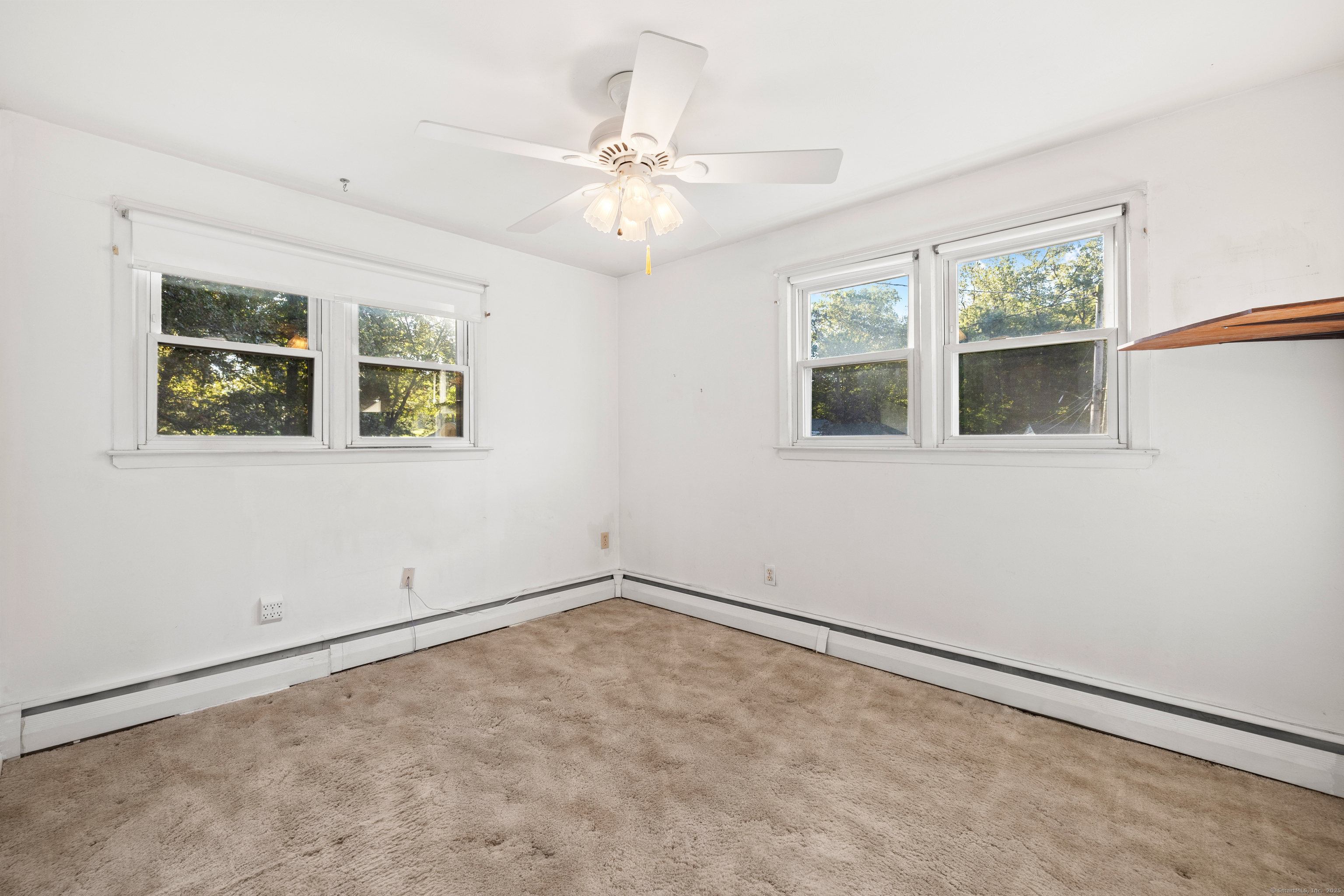 Tucked away on a quiet cul-de-sac and backing up to The Hartford Golf Club, this spacious split-level home offers the perfect blend of comfort, function, and location. With 3 bedrooms, 2.1 bathrooms, and multiple living areas, there's room for everyone to spread out and enjoy. Step inside to find a welcoming living room/dining room combination, filled with natural light. Hardwood floors lie beneath the carpeting, ready to be uncovered and restored to their original charm. The adjacent kitchen offers a practical layout for daily living and entertaining, along with a breakfast nook, perfect for casual meals or morning coffee. A cozy family room provides the ideal spot for movie nights, while a separate den offers flexibility as a 4th bedroom, home office, playroom, or guest space. Upstairs, you'll find three spacious bedrooms, each with hardwood floors hidden beneath the carpet, providing a great opportunity to enhance the home's character and charm. The primary bedroom features an attached ensuite bathroom with finishes that have been well maintained. One of the standout features of this home is the sunporch-a bright, peaceful retreat located just off the back of the house. It offers a comfortable indoor-outdoor feel and is the perfect spot to relax rain or shine.