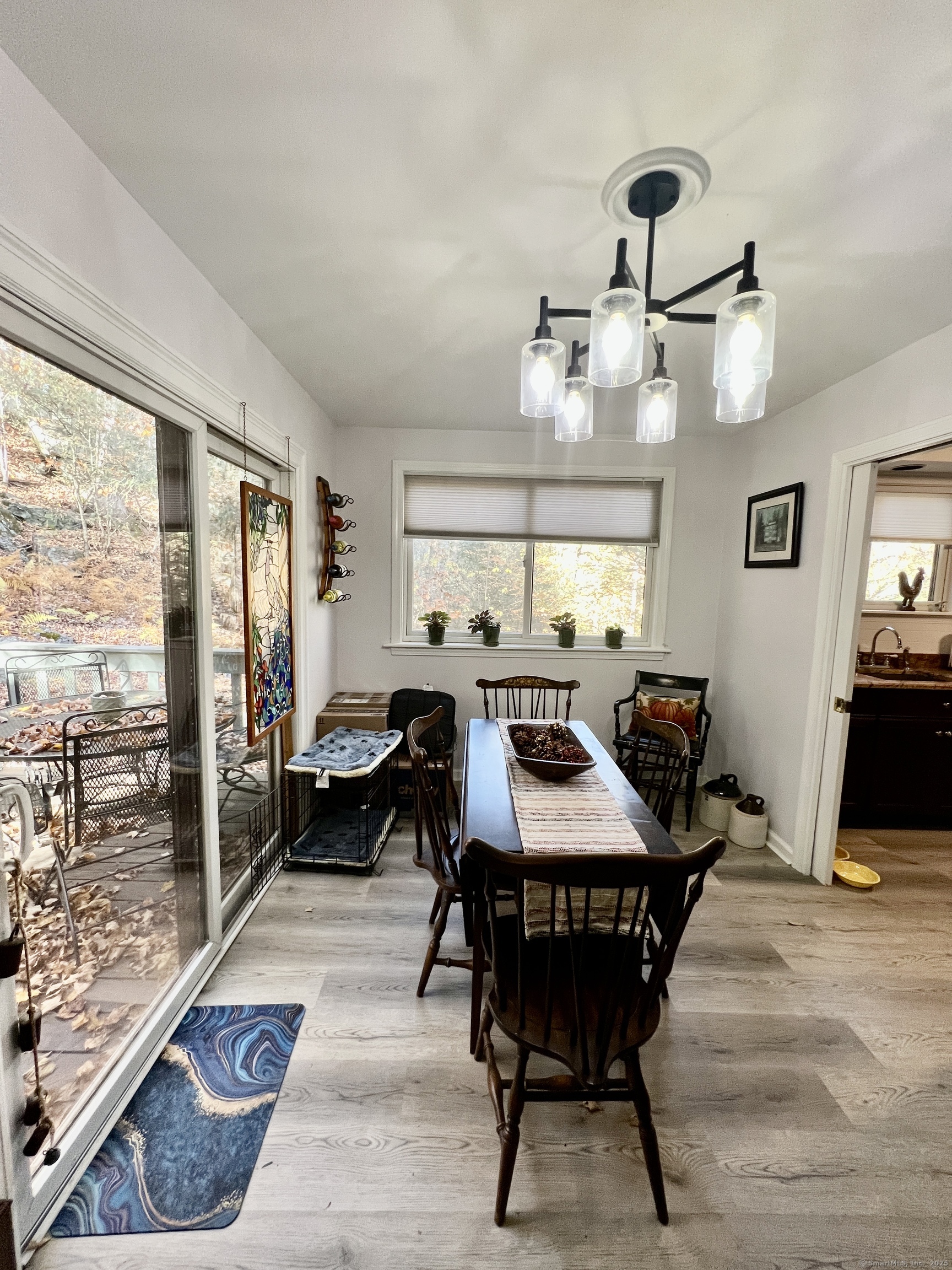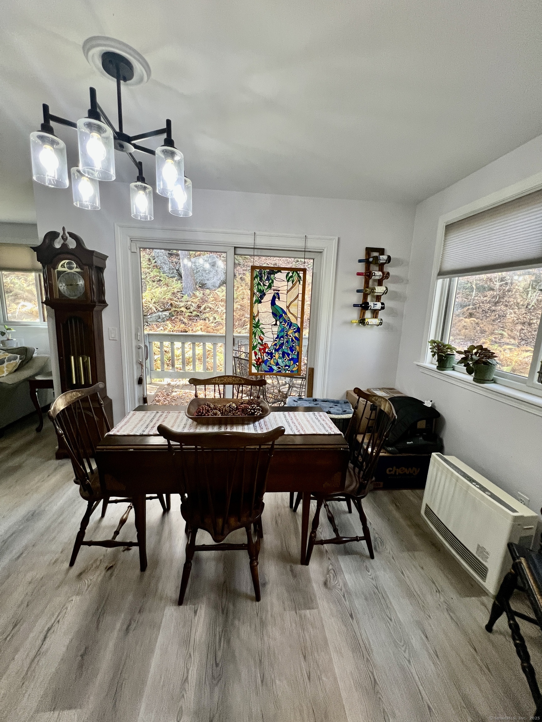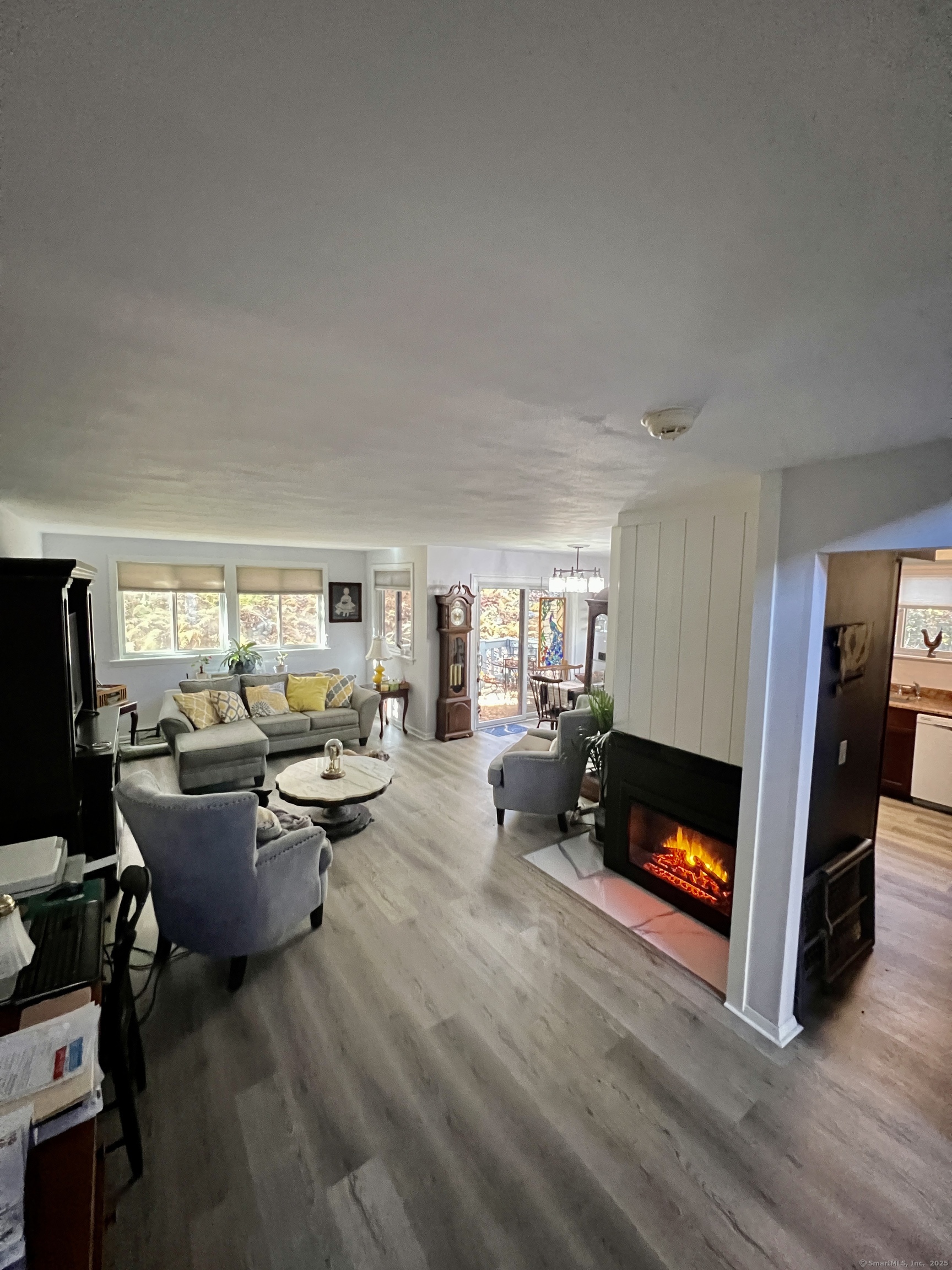 End unit Tanglewood model with lovely views of woods. Short easy access to an inclosed mudroom. Remodeled kitchen with ss appliances and granite counters. Most of the windows have been replaced with Andersen windows and have duette shades. Vinyl plank flooring throughout the main level. Fireplace has an electric insert giving a nice cosy atmosphere. Three Rinnai propane units supply heat to main level, first floor bedroom and primary bedroom. The loft room, in use as a third bedroom, has access to the primary bathroom.