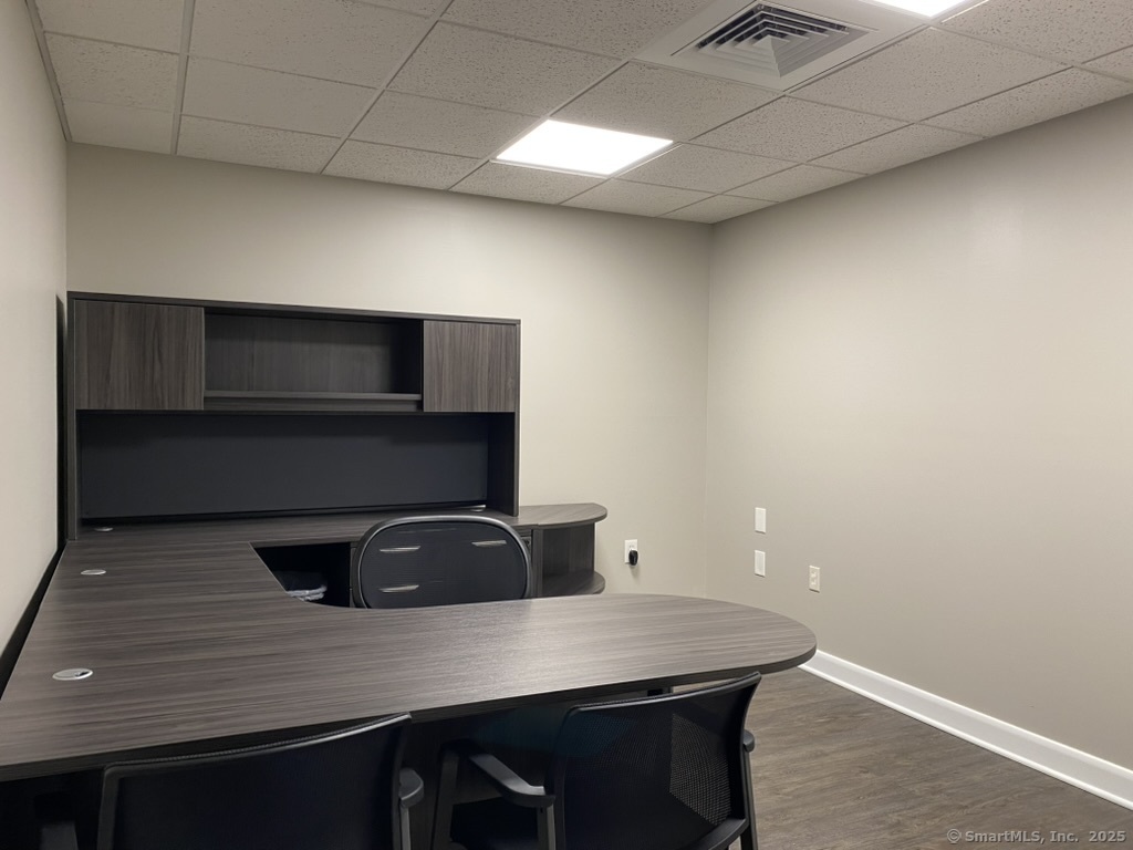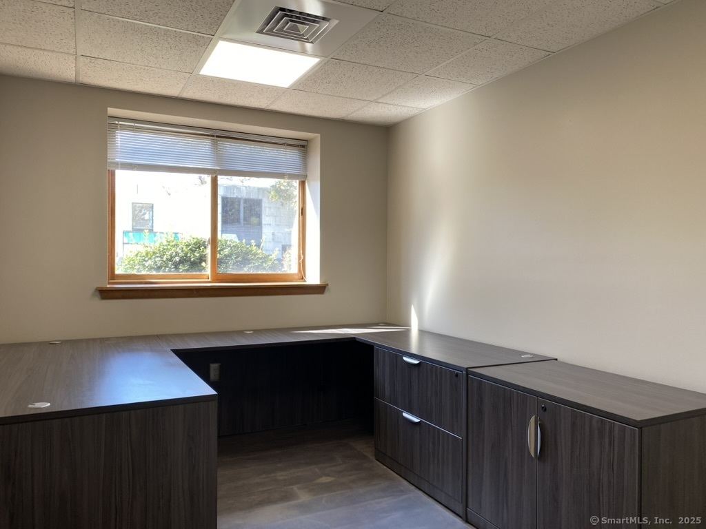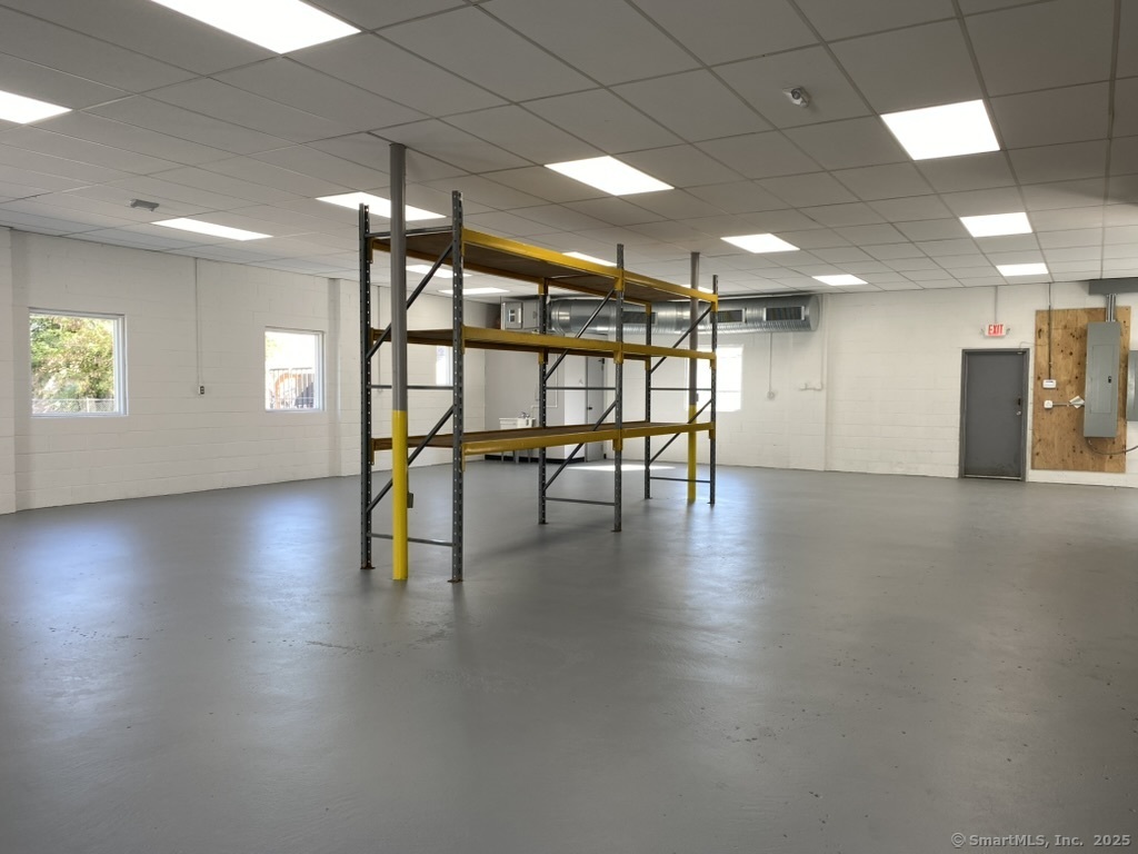 Hard to find 4,364 SF flexible industrial building in West Hartford. The cleanest, most well-maintained building you will see. Excellent for corporate showroom, distribution, logistics, high-tech, research, assembly & service industries. Fully built out with 5 private offices, conference room, fully equipped kitchenette & two bathrooms. Showroom/warehouse in rear has 8' wide x10' high drive-in door. 10' clear height. Fully paved, fenced and gated large parking lot in rear. Located in the IG Zone. Can include new office furniture and warehouse pallet racking in lease. Has new 460/3 phase 400 amp electrical service. Quick access to I-84, restaurants & shopping.