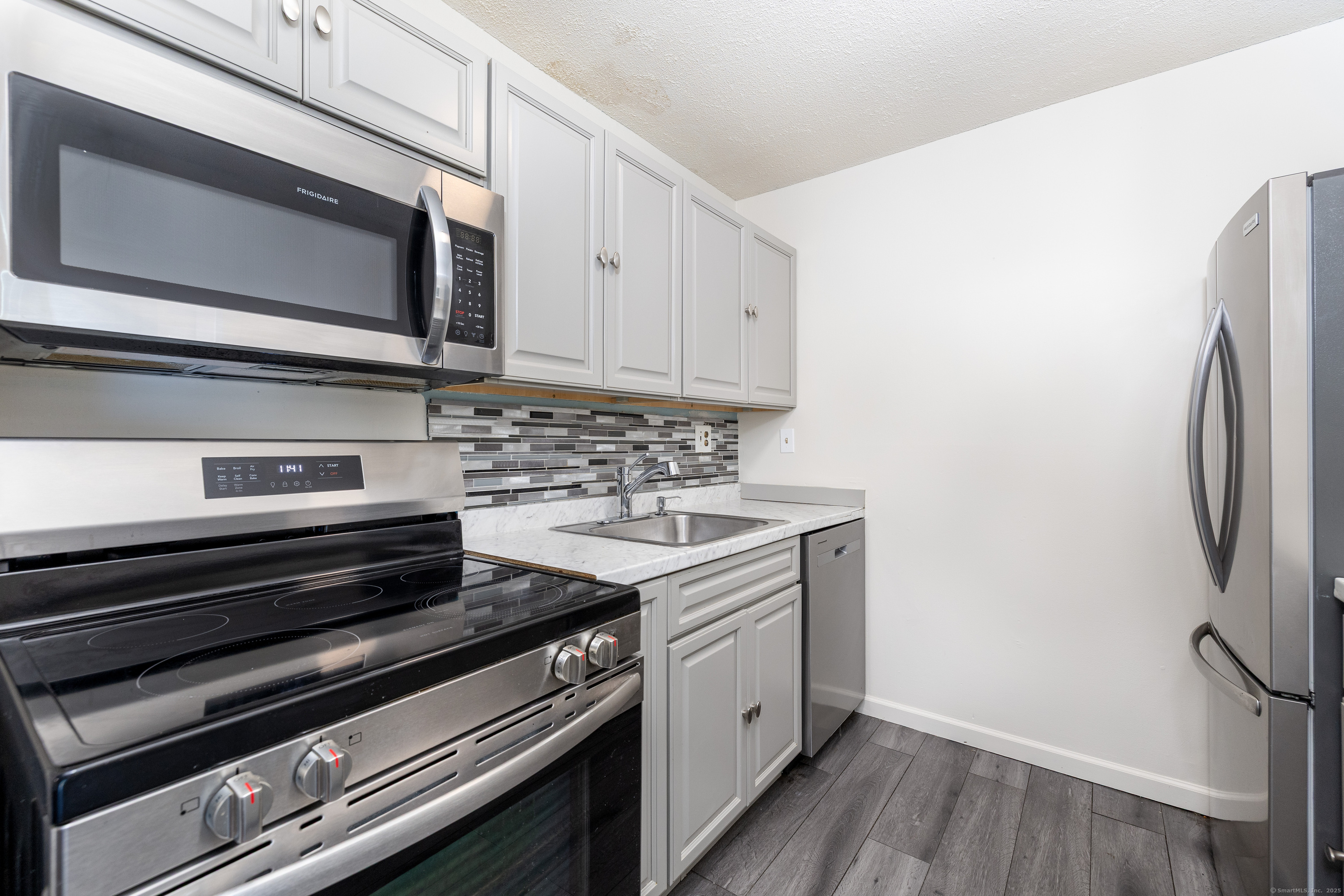 Rarely available one bedroom in the Westwood condo complex with a large living dining room combination. You will find durable, wide plank luxury vinyl flooring throughout the unit. Kitchen was remodeled a year ago and includes stainless steel sink, refrigerator, stove, dishwasher and disposal! The bathroom was updated one and a half years ago with a walk in stall shower system a pedestal sink, toilet and flooring. Best of all this unit has a brand new Bosch heat pump mini split system with a unit in the living room and one in the bedroom for energy efficient cooling and heating. The unit was just freshly painted with beautiful neutral walls throughout the whole unit including the kitchen. Conveniently located to shopping, bus lines and restaurants as well as the entrances to RT 84. Don't miss a great opportunity to own/invest in this West Hartford condo.