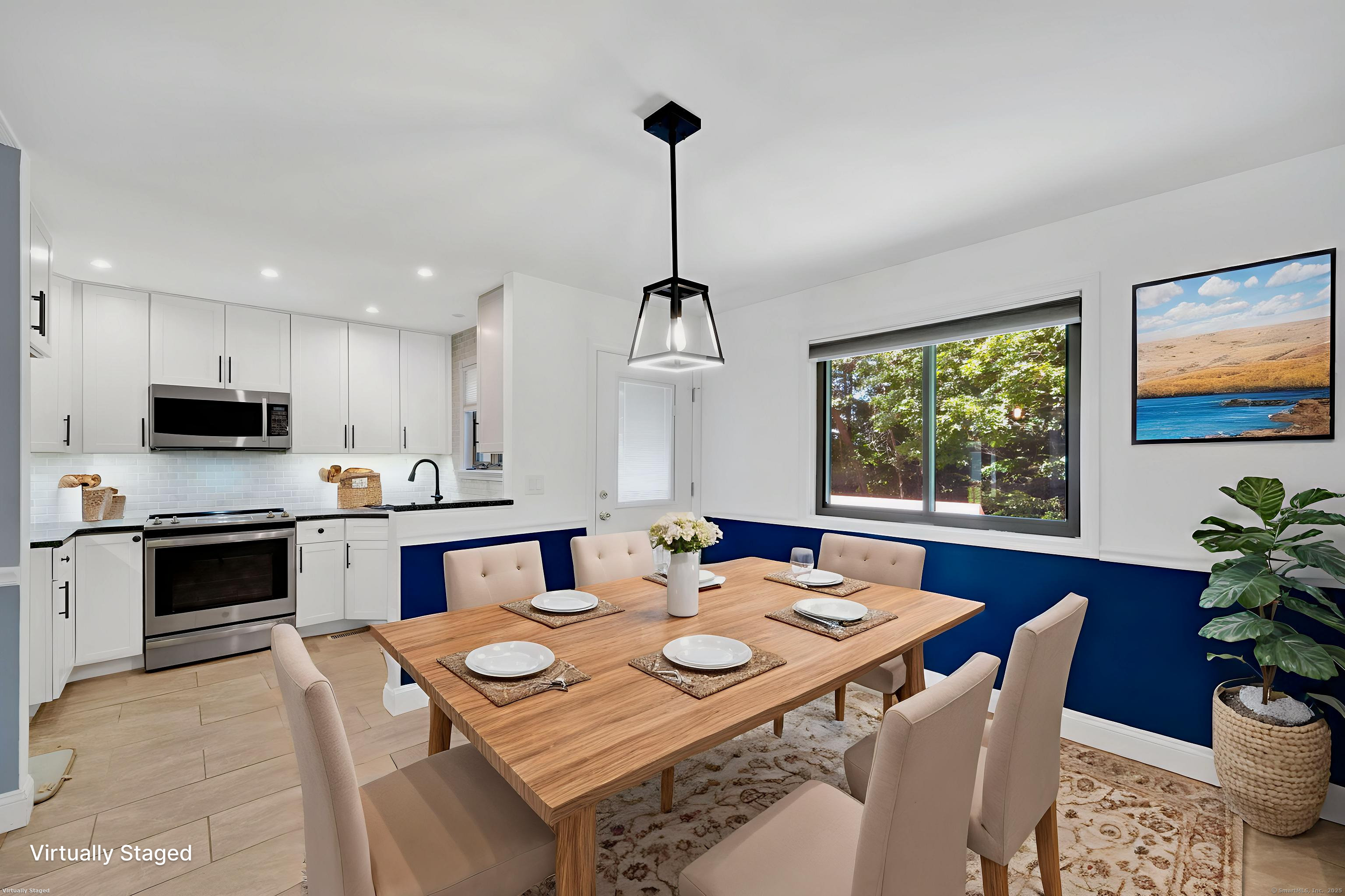 Fantastic townhouse features stylish upgrades, blending modern design with functional living. The open floor plan gives you plenty of options for furniture layout and everyday use. The remodeled kitchen is a standout feature designed with crisp white cabinets, granite countertops, a tile backsplash, and stainless steel appliances. Just off the kitchen, the dining area boasts a chair rail, tile flooring, recessed lighting, and direct access to the back deck overlooking a peaceful wooded view. The living/dining room combination provides even more versatility for entertaining or relaxing. Special touches include stone-look accents, recessed lighting, and multi-function fixtures throughout. Upstairs, the primary bedroom connects directly to the full bath with 2 sinks, while the second bedroom offers cozy carpeting and recessed lighting. The lower level includes a laundry room plus an extra space-perfect for storage, a home office, or hobby area. Updates include a new slider, several new windows, an updated furnace. Central Air and a 1 car garage add convenience while both front and back decks extending your living space outdoors. Set in a central location close to shopping, dining, and major routes, this condo offers the best of comfort, style, and accessibility. With so many thoughtful updates and flexible spaces, this home truly has it all!