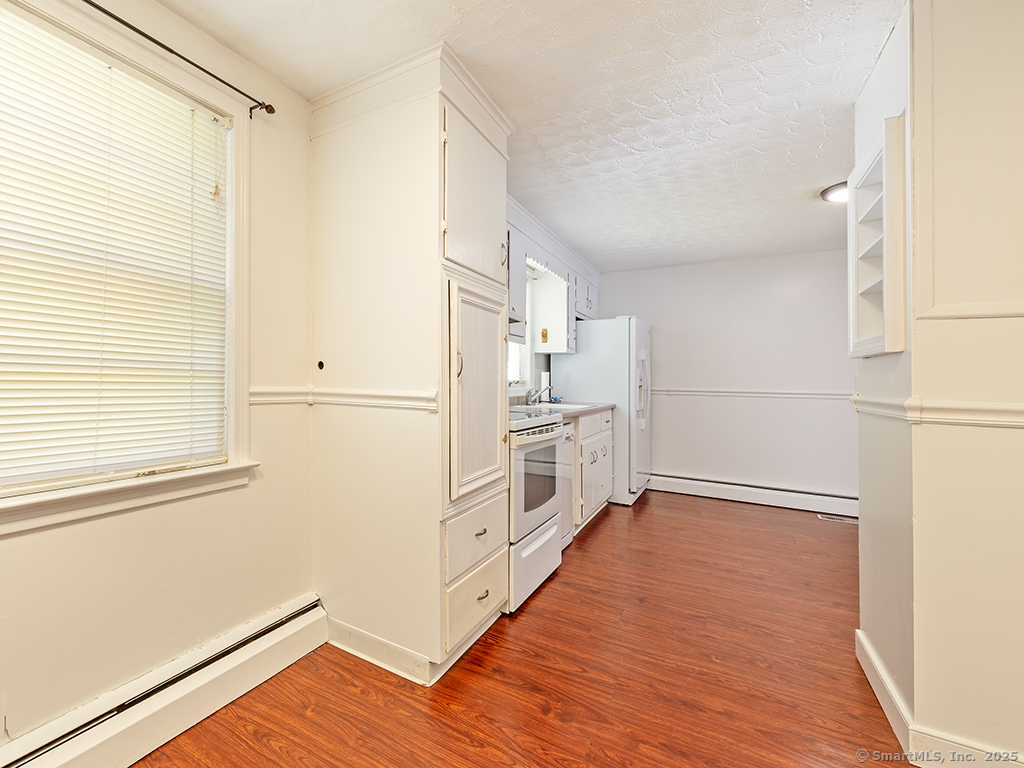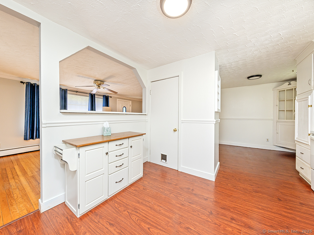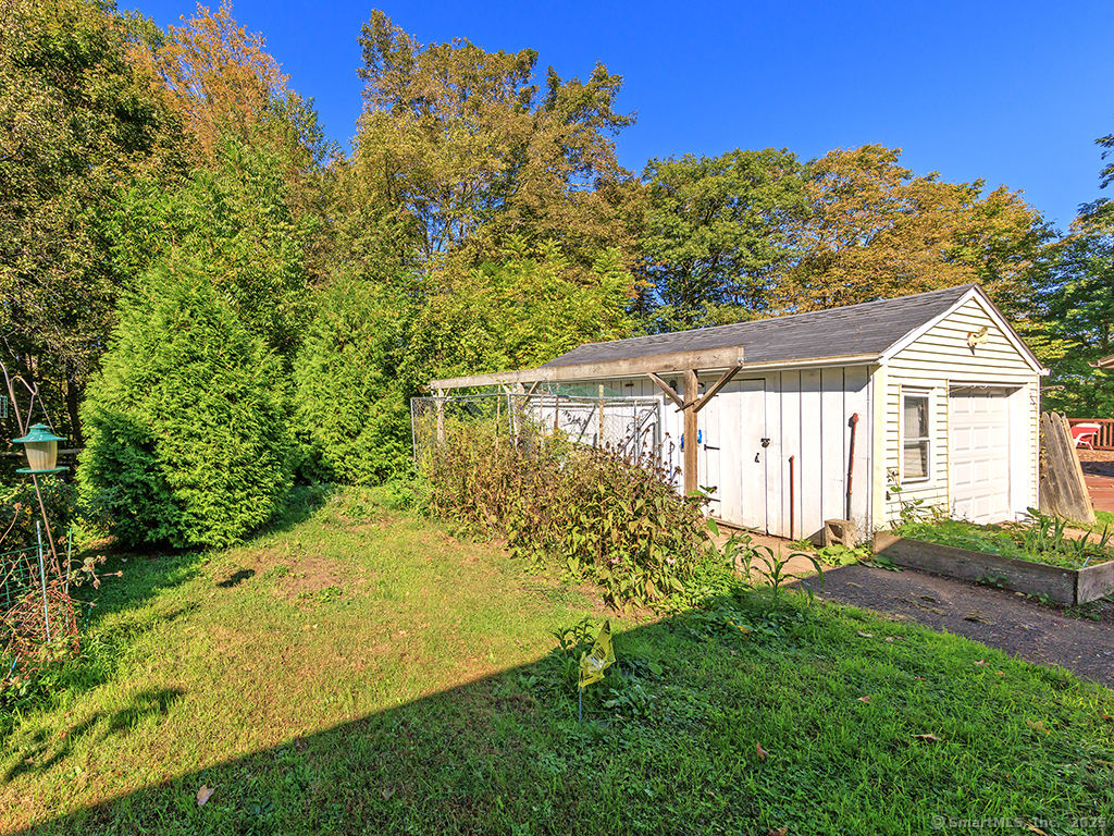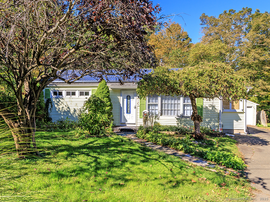 Cozy 2-bedroom ranch tucked away in a quiet neighborhood near beautiful Wadsworth Falls State Park and Wadsworth Mansion, on the Middlefield line. Step through the front door into a spacious living room featuring a large bay window that fills the space with natural light. The living room leads to the eat-in kitchen, complete with white cabinetry and a charming built-in hutch. At the back of the kitchen, a door opens to the large breezeway, which the seller enhanced with an electric baseboard heater-creating additional flexible living space. The two bedrooms are located on the opposite side of the home, and the primary bedroom features new windows. Hardwood floors run throughout the home, adding warmth and character. The seller has made many thoughtful updates, including a new hot water heater (2025), new boiler, solar energy panels, and leaf-proof gutters, among others. The backyard is a true retreat, filled with perennial gardens and lush vegetation-a peaceful slice of paradise to enjoy