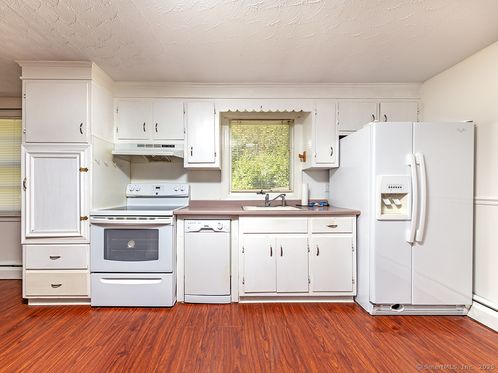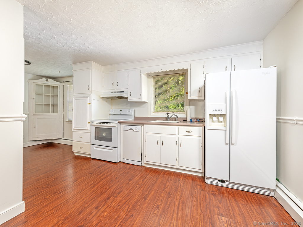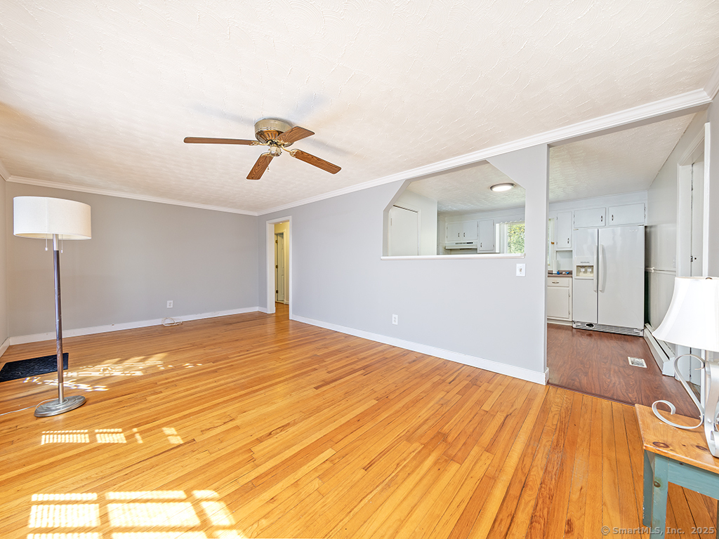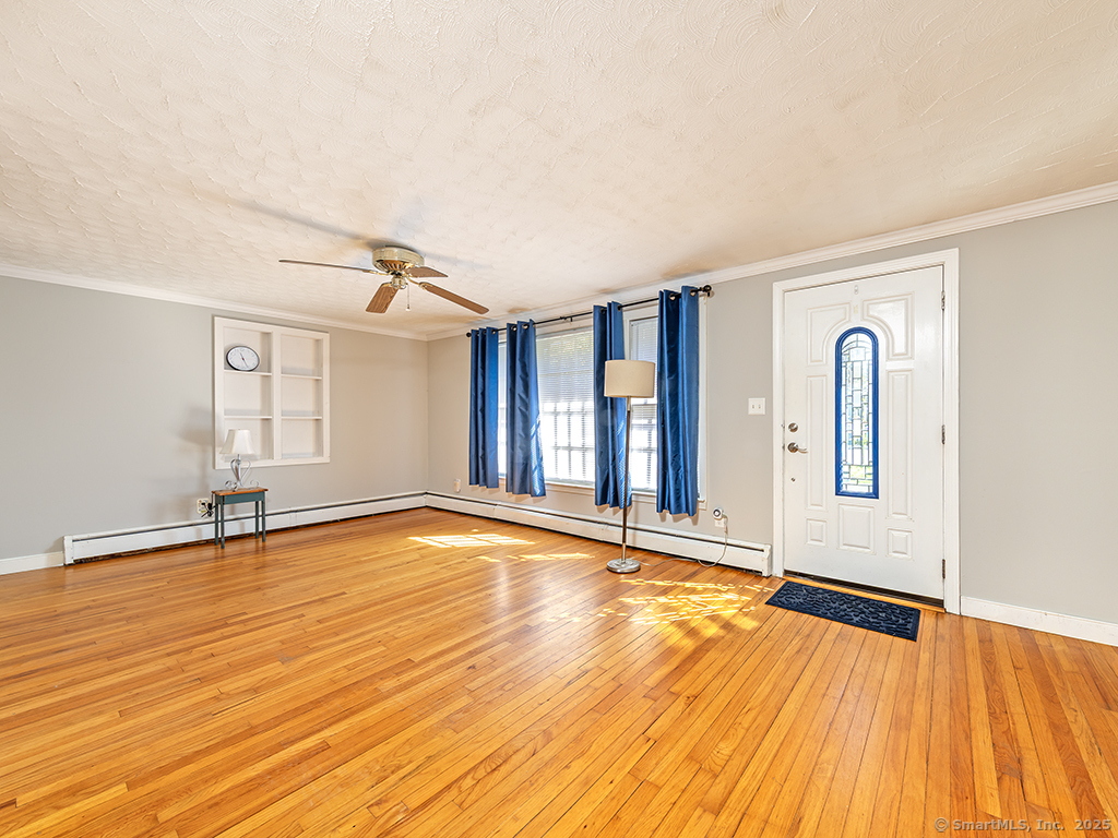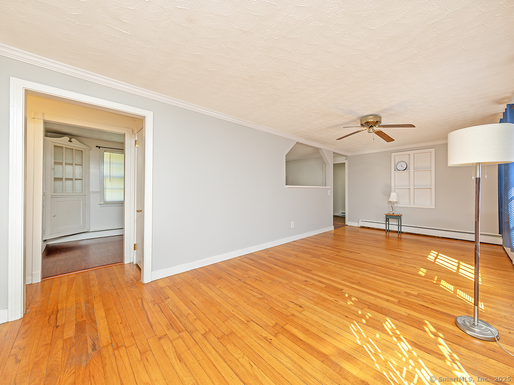 Cozy 2-bedroom ranch tucked away in a quiet neighborhood near beautiful Wadsworth Falls State Park and Wadsworth Mansion, on the Middlefield line. Step through the front door into a spacious living room featuring a large bay window that fills the space with natural light. The living room leads to the eat-in kitchen, complete with white cabinetry and a charming built-in hutch. At the back of the kitchen, a door opens to the large breezeway, which the seller enhanced with an electric baseboard heater-creating additional flexible living space. The two bedrooms are located on the opposite side of the home, and the primary bedroom features new windows. Hardwood floors run throughout the home, adding warmth and character. The seller has made many thoughtful updates, including a new hot water heater (2025), new boiler, solar energy panels, and leaf-proof gutters, among others. The backyard is a true retreat, filled with perennial gardens and lush vegetation-a peaceful slice of paradise to enjoy