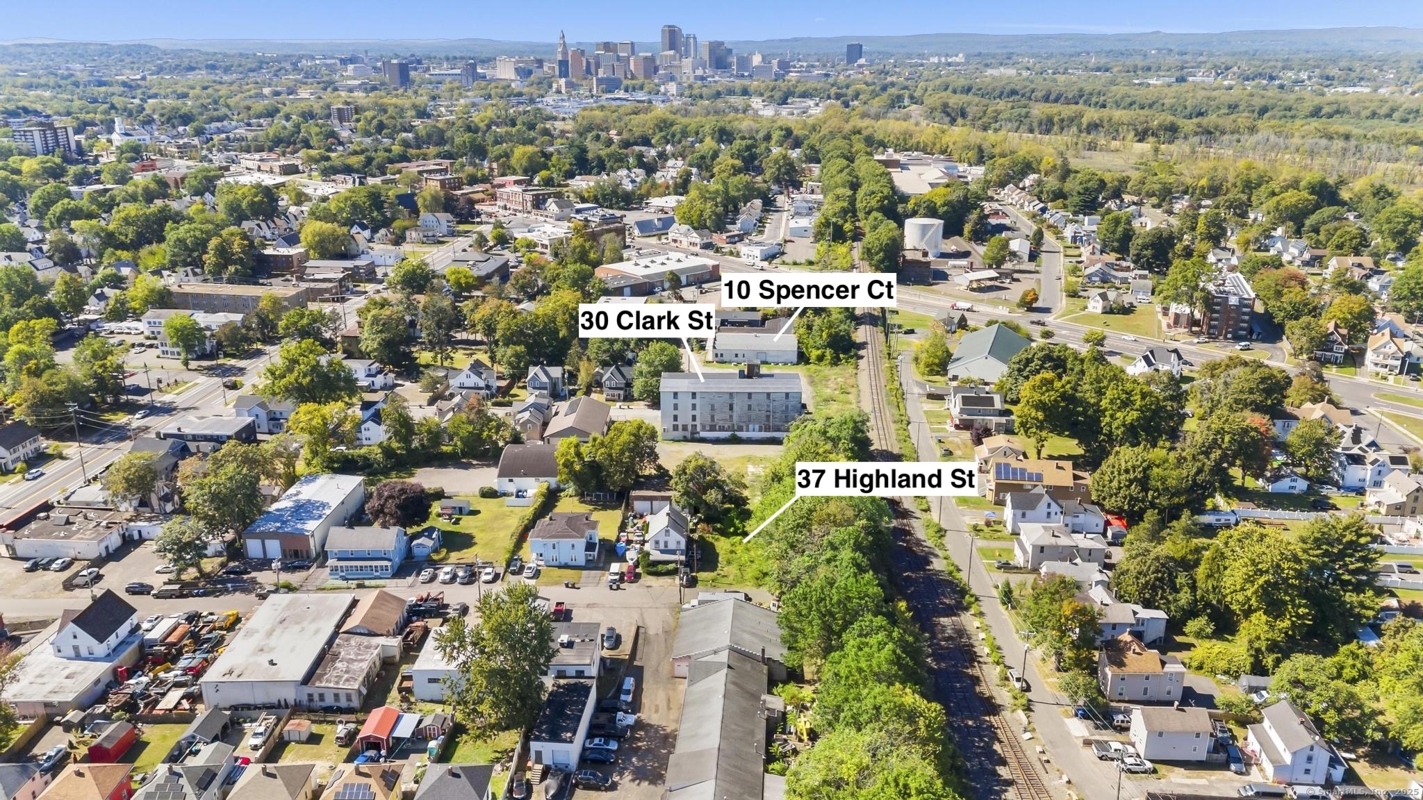 Unique opportunity to acquire three contiguous East Hartford properties at 30 Clark Street, 10 Spencer Court, and 37 Highland Street, totaling 1.65 acres with a mix of industrial buildings and vacant land. Previously operated as a moving, storage, and trucking facility, the 28,280 SF four-level building at 30 Clark Street features an operational freight elevator and loading docks and continues to serve as public storage. It is complemented by a 5,673 SF industrial structure at 10 Spencer Court, which also includes loading docks, and a vacant commercial lot at 37 Highland Street. The portfolio runs parallel to the Connecticut Southern Railroad, creating strong potential for rail-supported operations such as transloading. Public utilities are available, and flexible zoning allows for diverse current and future uses, including vehicle, equipment, and goods storage, warehousing, distribution, and other industrial or commercial applications. In addition, the combined acreage presents a compelling redevelopment or new development opportunity for forwardlooking industrial users and investors, with quick access to I-84, I-91, and Hartford.