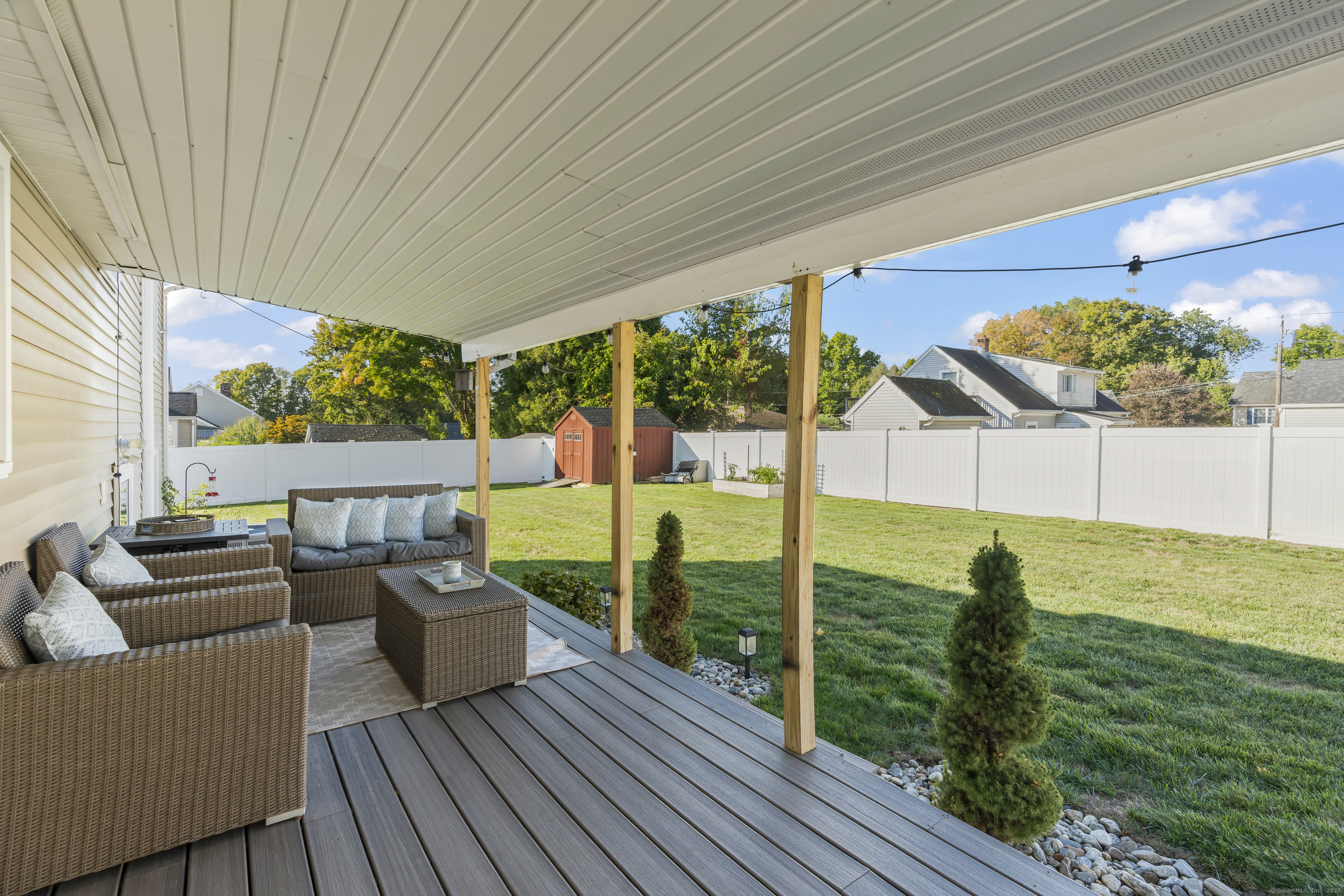 **Highest and Best by Thursday, 10/9 @ 10pm.** This 3 bedroom, 1.5 bath home is bright, clean, and move-in ready. The main level features gleaming hardwood floors, a spacious living area filled with natural light, and an updated kitchen and dining space perfect for everyday living or entertaining. The main bathroom has been renovated with a new vanity and tile shower walls. Hardwood flooring continues into the bedrooms, while the lower level offers additional living space with durable vinyl flooring. Outside, enjoy the fully fenced backyard and brand new deck (2023)-ideal for relaxing or gatherings. Major updates include a new roof (2025), new oil tank (2024), new fence (2023), renovated bedroom (2023), and new AC (2020). This home has been meticulously maintained and fully updated-ready for its next owner to move right in and enjoy! **Highest and Best by Thursday, 10/9 @ 10pm.**