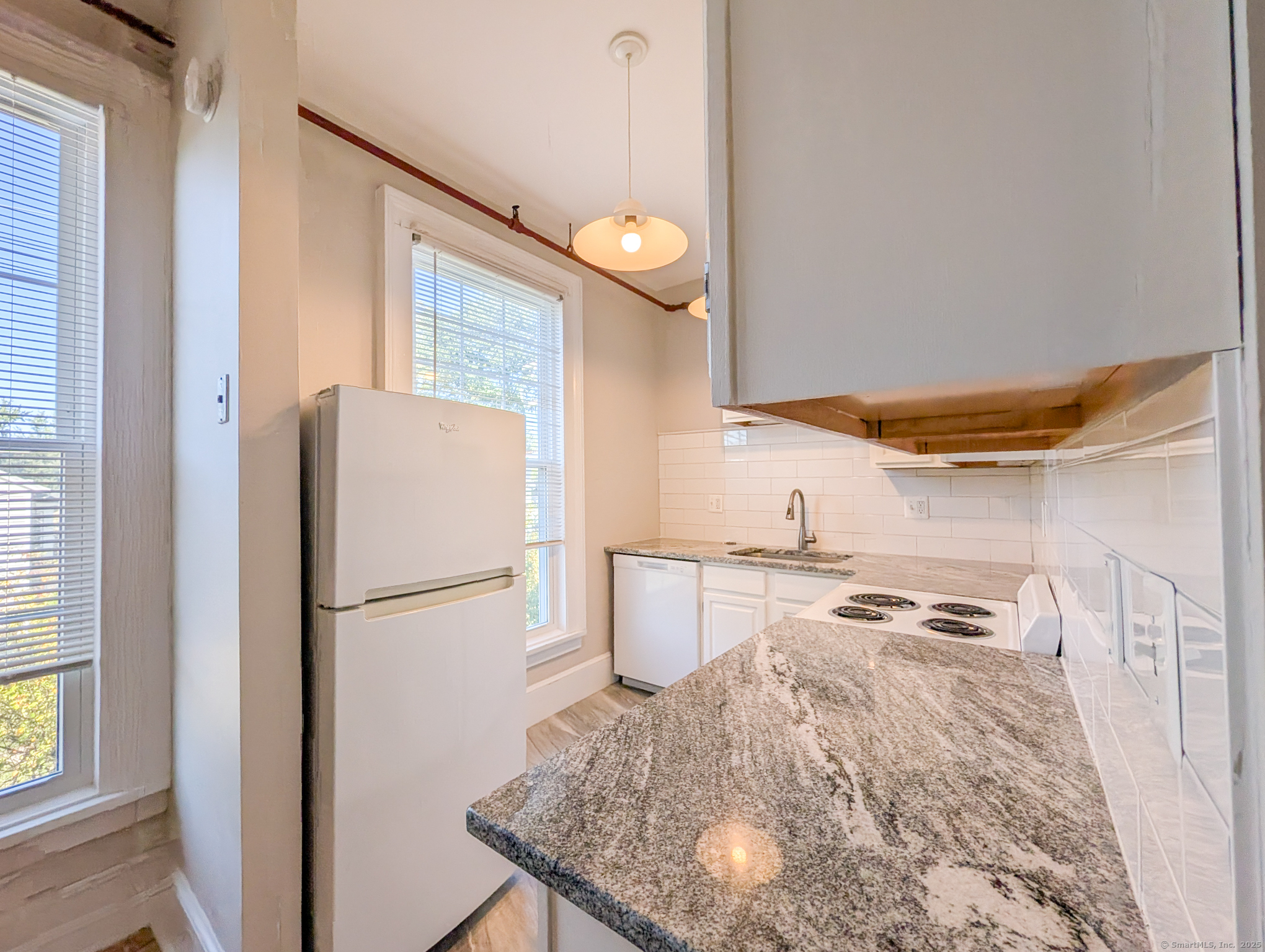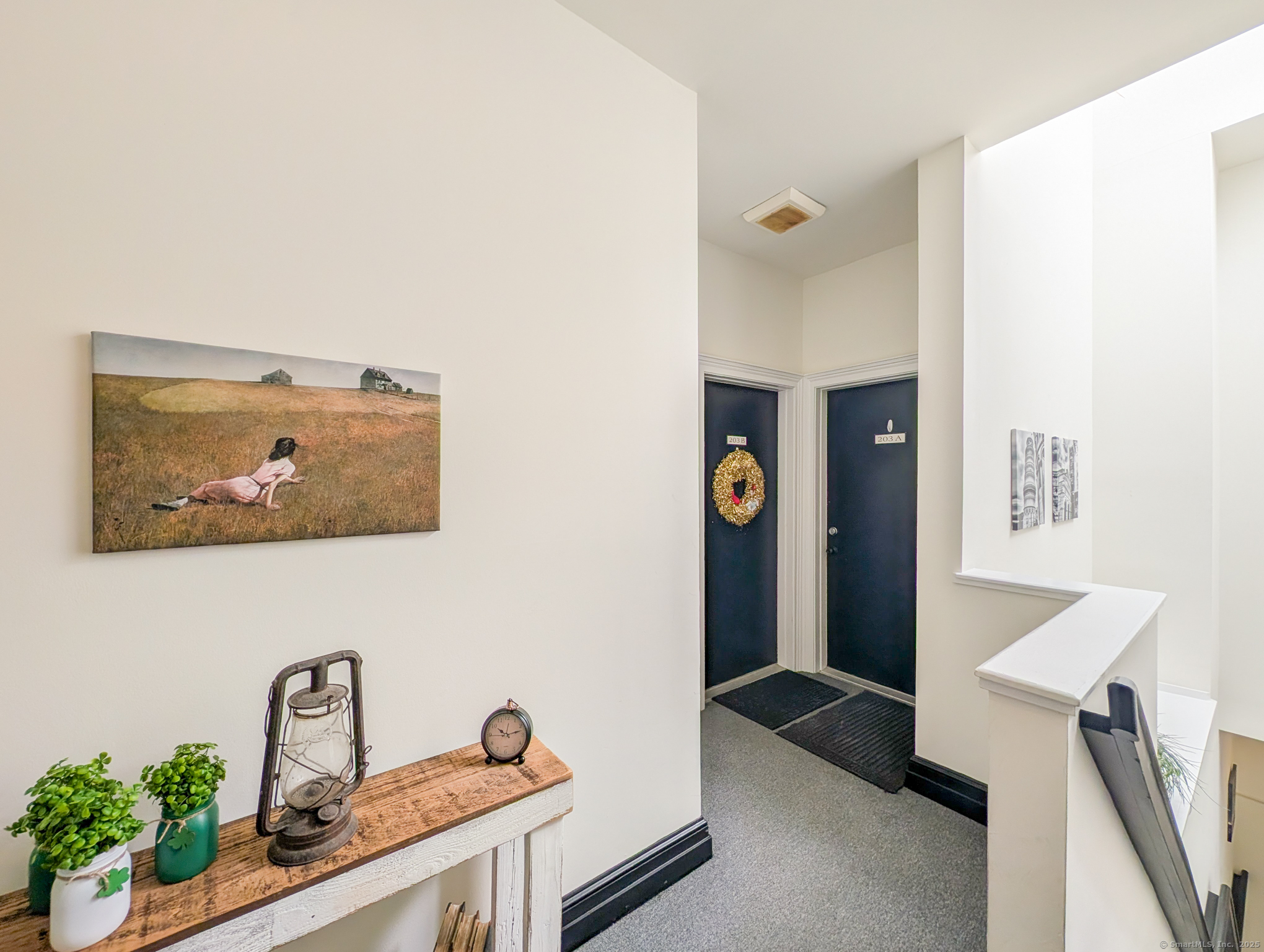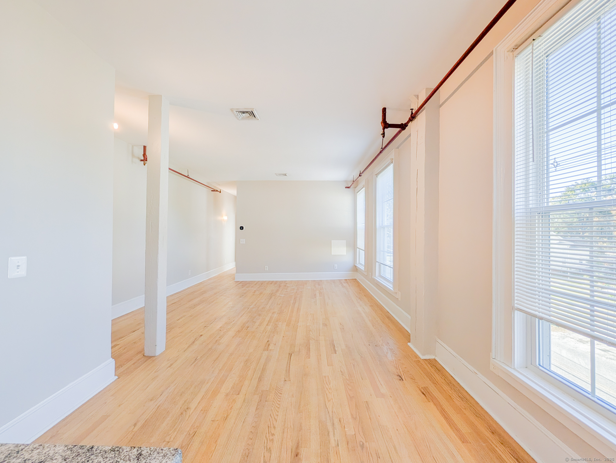 Very clean and well-kept second-floor one-bedroom condo with oversized windows and exposed beams, offering a loft-style feel with abundant natural light throughout the freshly painted living areas. The open floor plan features hardwood floors and an updated kitchen with granite countertops, tile backsplash, dishwasher, under-cabinet lighting, and updated flooring. The bathroom includes a Bluetooth LED speaker/vent and a newly installed shower. The spacious bedroom features carpet installed just over a year ago, which has been professionally maintained. Enjoy seasonal views of the river and sunsets from this peaceful, tree-lined setting. Located in a well-maintained complex, this unit offers on-site laundry facilities and off-street parking. The property is just one block from The Green, with nearby access to the post office, library, movie theatre, shops, and restaurants. Summer events on The Green include concerts, fairs, and farmers markets. Recent updates include a new energy-efficient HVAC system, Ecobee programmable thermostat, water heater, granite countertops, and energy-efficient windows. This turn-key condo combines modern updates with historic charm and a highly walkable downtown location-ideal for owner-occupants or investors alike.