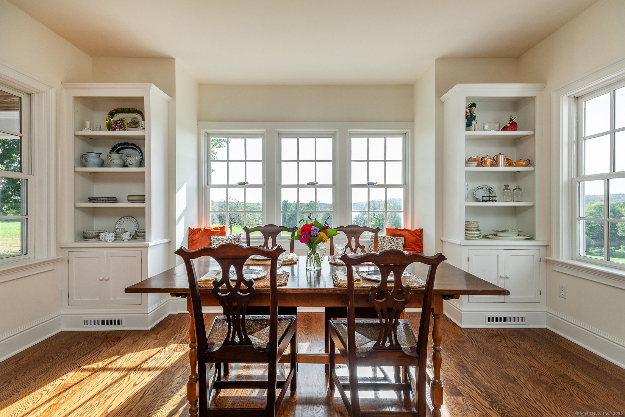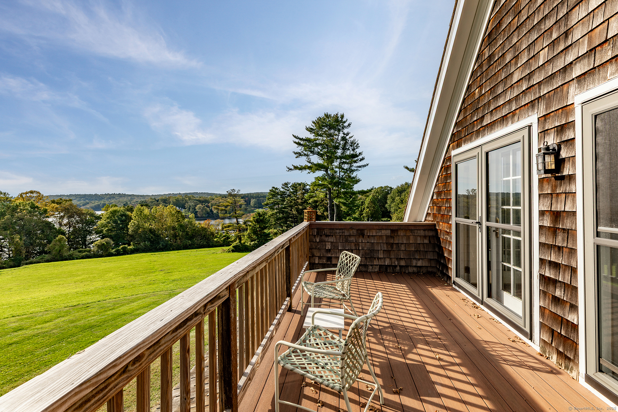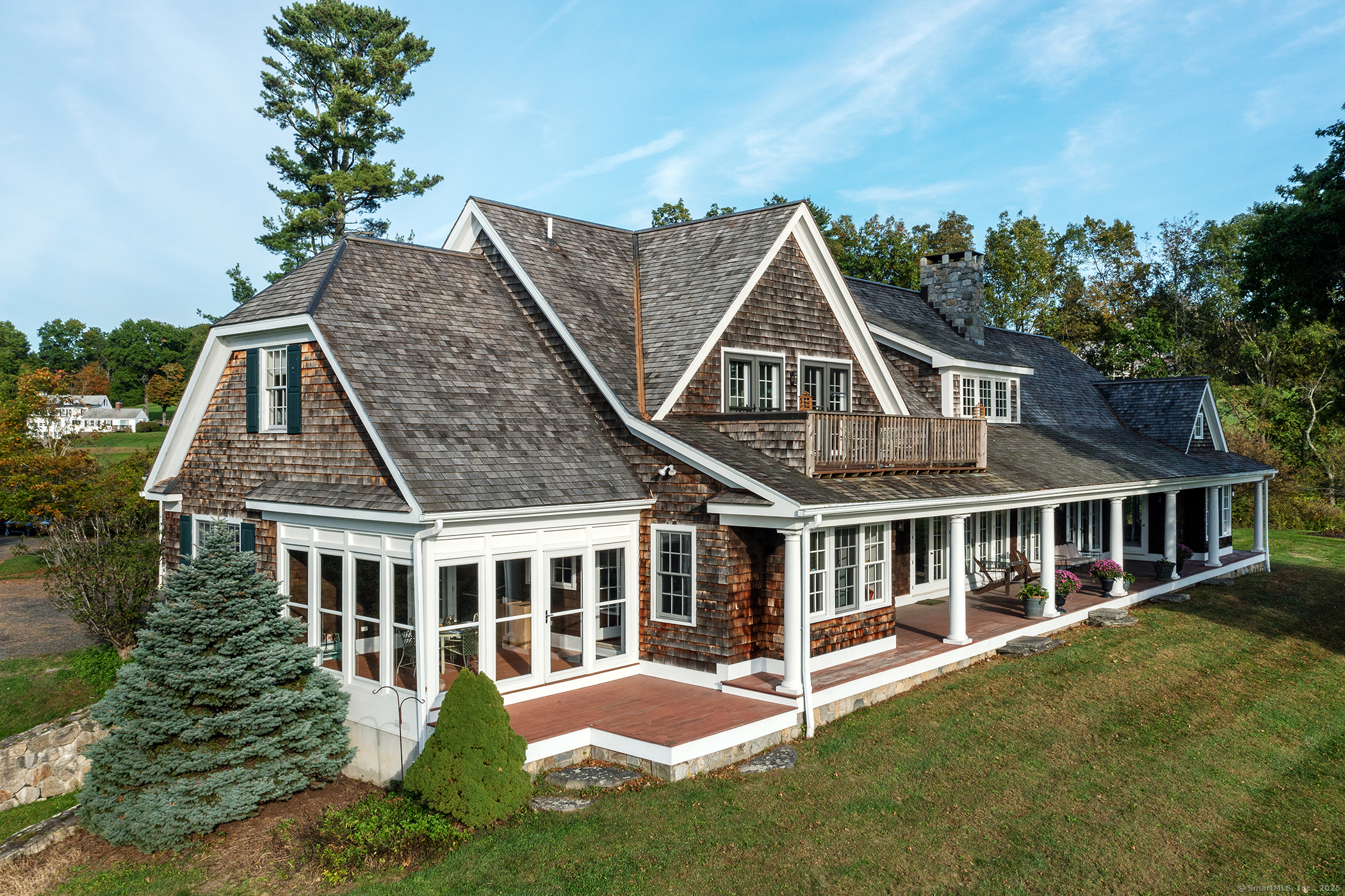 SUPERB LAKE PROPERTY. First time on the market, this 4,811 sf shingle-style home on 6.99 acres in Lake Quassapaug's estate area offers 195 feet of direct waterfront with a private dock and small beach. Designed by renowned architect Rick Moisan and built in 2000, the residence blends timeless design with modern comfort, enjoying complete privacy and pastoral views of permanently protected neighboring hayfields and vineyards. This rare offering combines architectural pedigree, serene natural beauty, and versatile living spaces-a true sanctuary for lakefront living. TWO PARCELS. Includes the main residence and a charming two-bedroom cottage sold together. MAIN RESIDENCE. Classic shingle-style architecture with a bright, open layout for today's lifestyle. The living room, dining area, and kitchen flow together beautifully; the kitchen features high-end appliances and opens to an inviting sunroom capturing passive solar warmth. Every room enjoys a full or partial landscape view. A deep covered porch spans the lake side for gracious entertaining, sunsets, and al fresco dining. Large Doric columns frame the space, and a majestic oak anchors the open lawn. COTTAGE. Originally the caretaker's residence for historic Tranquillity Farm, this two-bedroom, 1,005 sf cottage on a separate parcel offers wonderful flexibility as a guesthouse, writer's retreat, or rental.