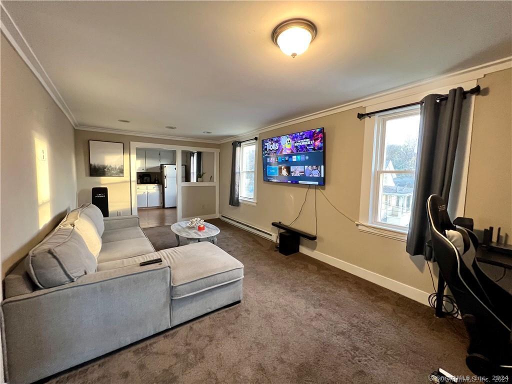 Don't miss out on this beautifully maintained second floor unit close to highways and your every need! The bedroom, living room and kitchen are all of fantastic size, which makes for far better than a typical one-bedroom unit! Welcome inside to a spacious living room with tons of natural light. To the left, a large bedroom with incredible closet space - or continue through the living room to the eat in kitchen that offers a laundry room and full bath and walk out to the back deck and staircase. This unit offers one off street parking spot, and plenty of on street parking. A walk-up attic for storage is an added bonus! The location is truly convenient, with the new gas station and Club24 fitness within walking distance, and route 8 and access to other major routes under a minute away as well! Online application ready for credit, background and eviction check. References, proof of employment/paystubs, and minimum credit score of 650 required for consideration.