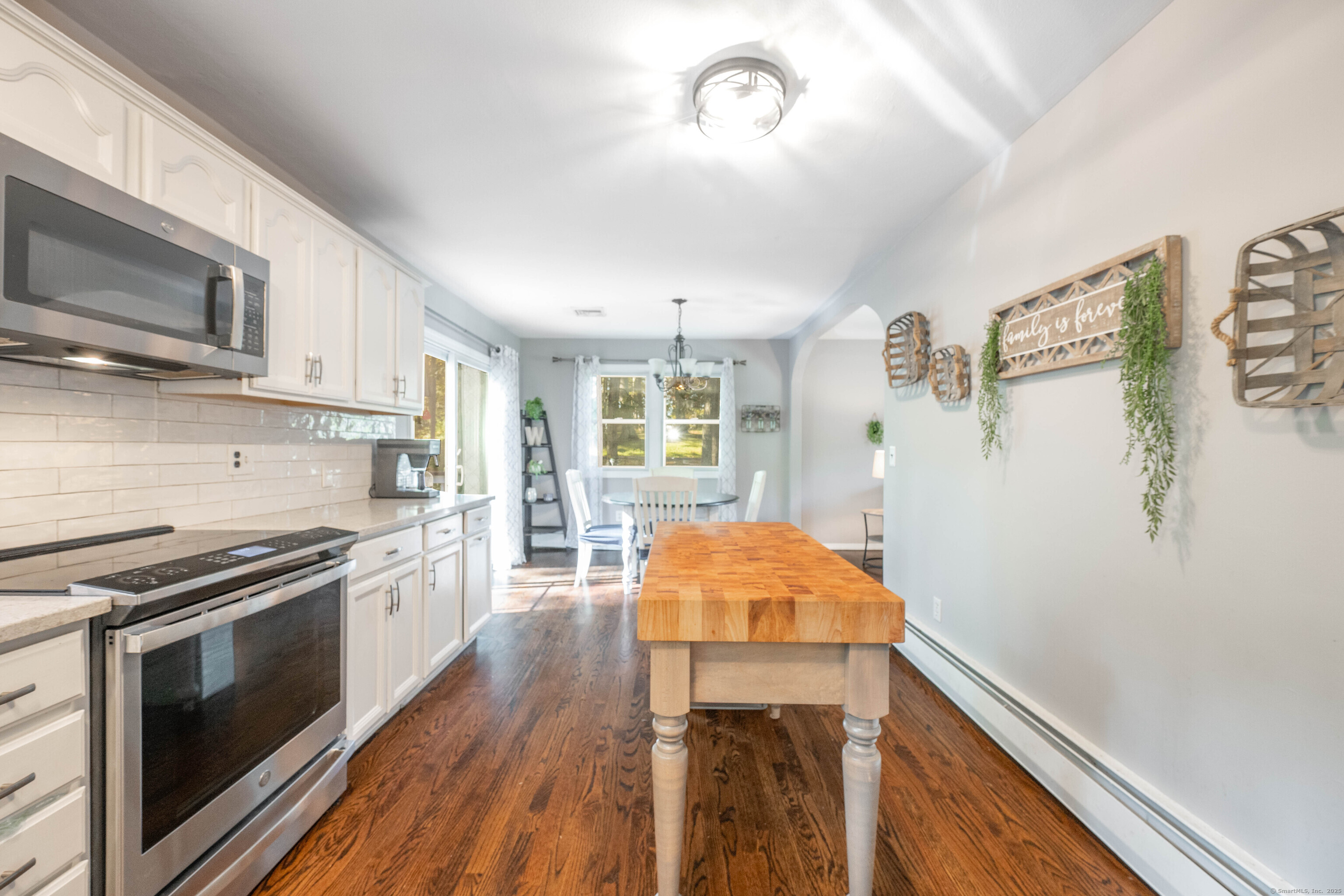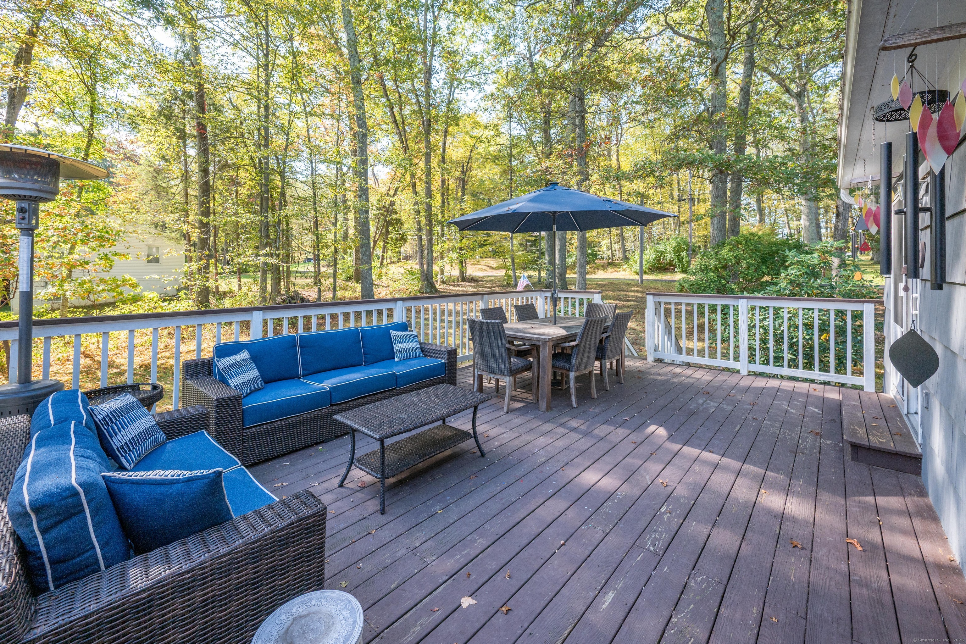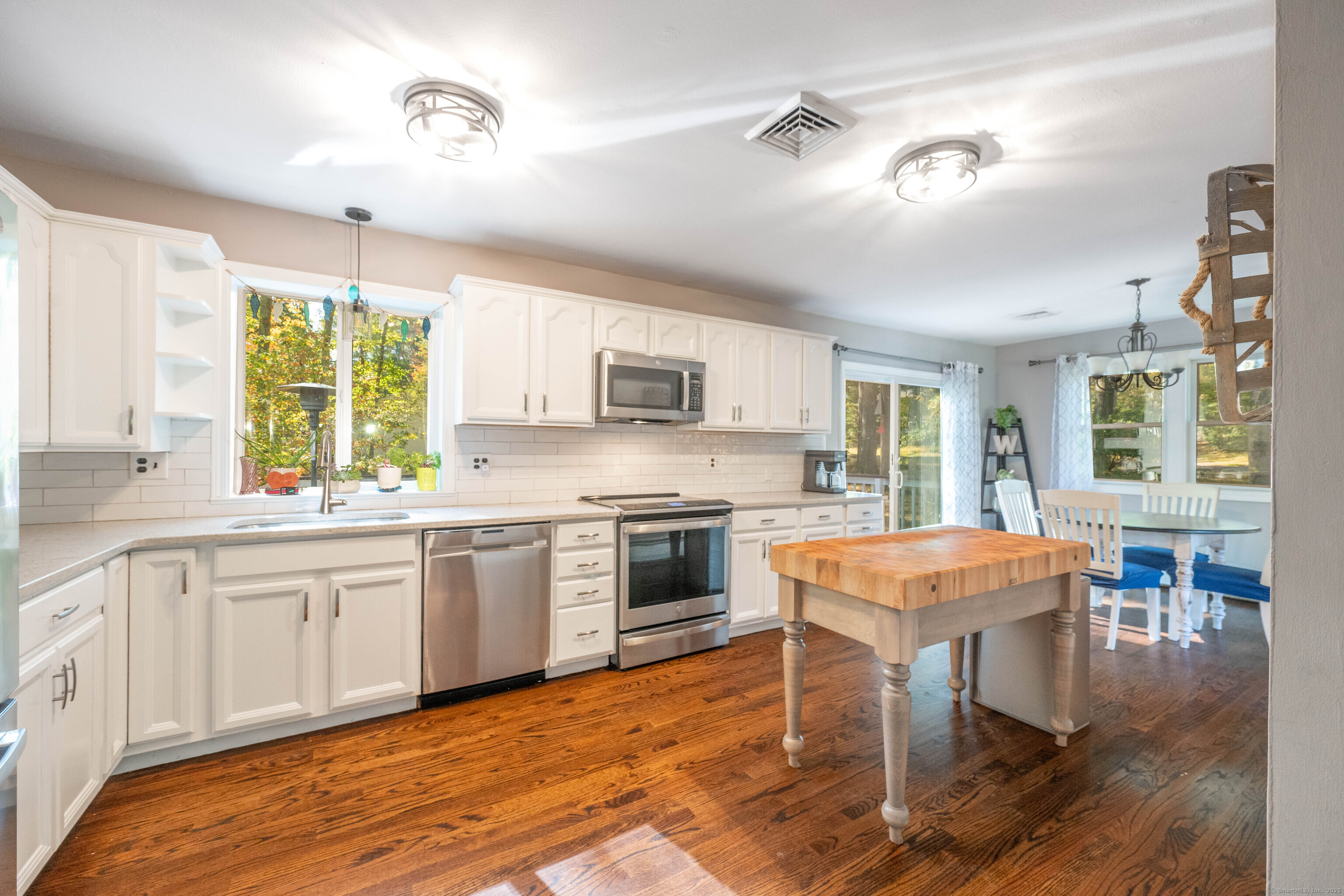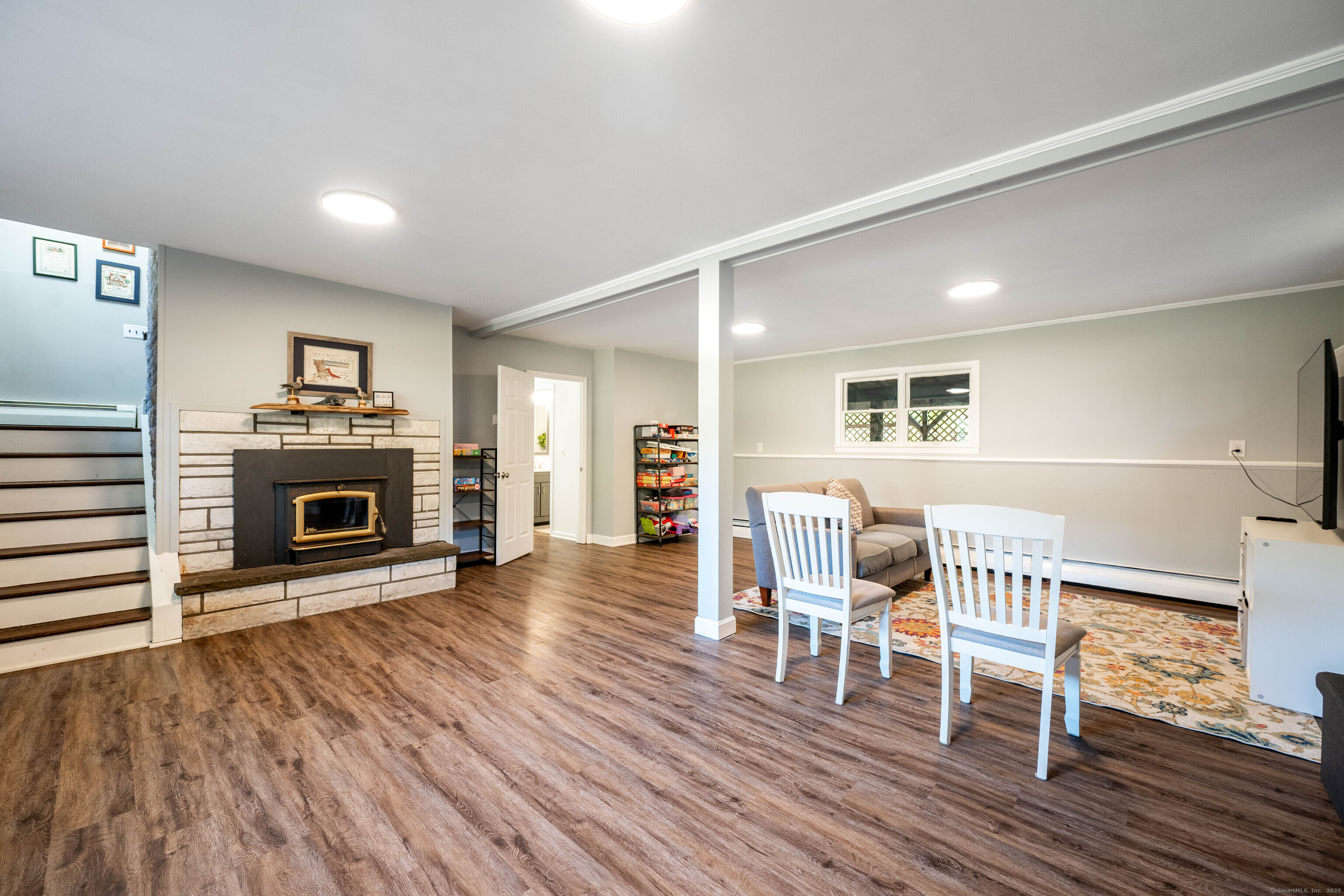 This spacious oversized 4 bedroom, 3 full bath Raised Ranch is the perfect home you have been searching for! Conveniently located in one of Brookfield's vibrant neighborhoods, on a flat 1 acre corner lot with mature plantings that offer both privacy and standout curb appeal. The home features an abundance of natural light and hardwood floors throughout the main level. The open floor plan is great for everyday living or hosting gatherings. The sunlit living room with large bay window offers a tasteful stone fireplace that adds warmth and charm. The updated kitchen boasts stainless appliances, and quartz countertops. Just off the dining area, sliding glass doors open to the expansive deck ideal for outside relaxation and entertaining. The primary bedroom includes an updated private en-suite bath, the 3 additional bedrooms are generously sized and offer plenty of closet space. Another updated full bath completes the main level. Downstairs you will find a fully finished lower level with stylish vinyl tile flooring that offers wonderful additional living space. The large Family Room with wood stove, updated full bath, pantry, storage, laundry area, and additional flexible room great for an office. Newer roof and boiler. Central air ensures comfort year round. Outside, the expansive yard offers plenty of space for outside activities. Very convenient location to the Regional Y, shopping, dining, schools, Lakes, The Greenway, and easy highway access. Highest and Best Mon Oct 20 1:00