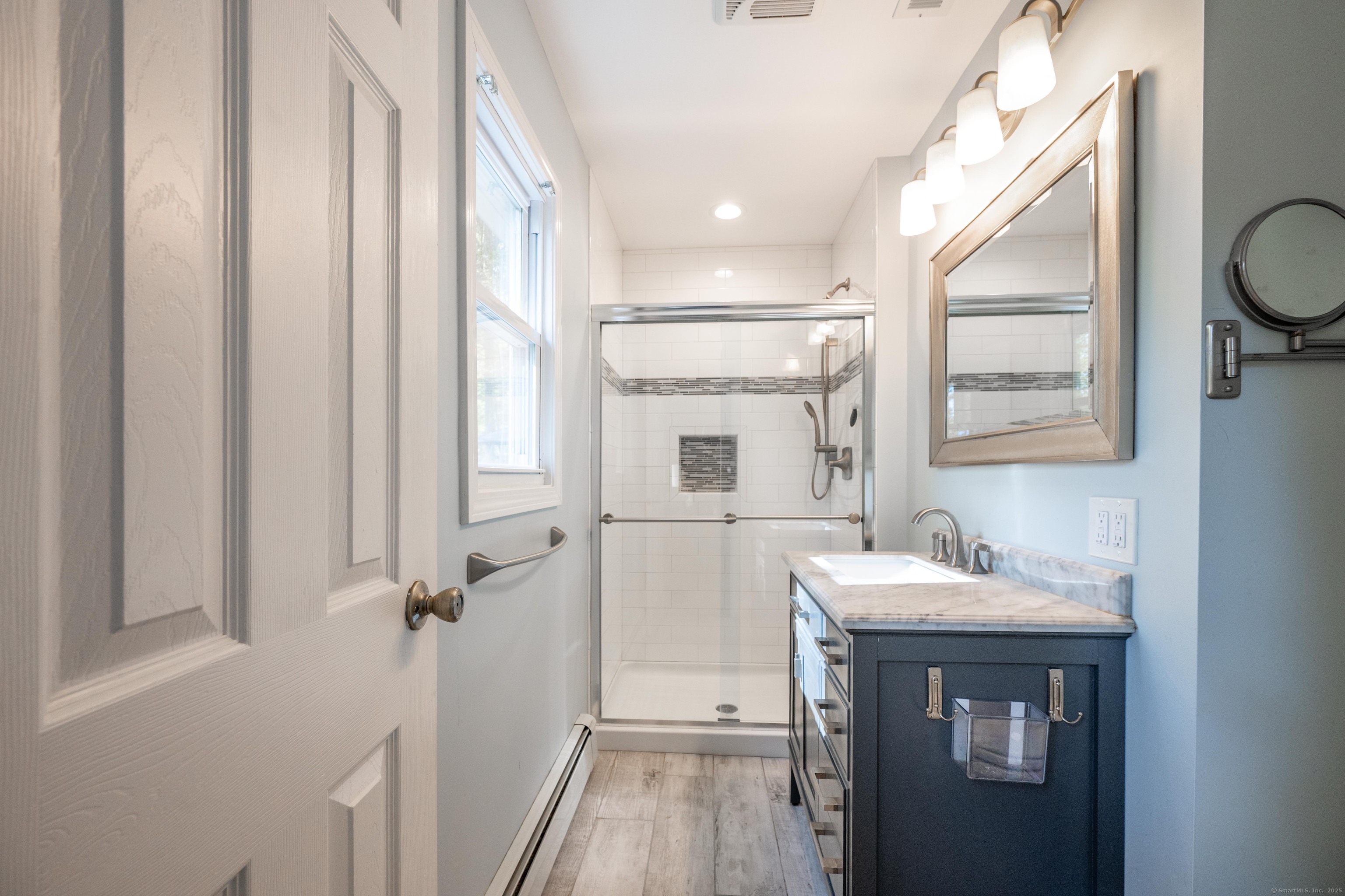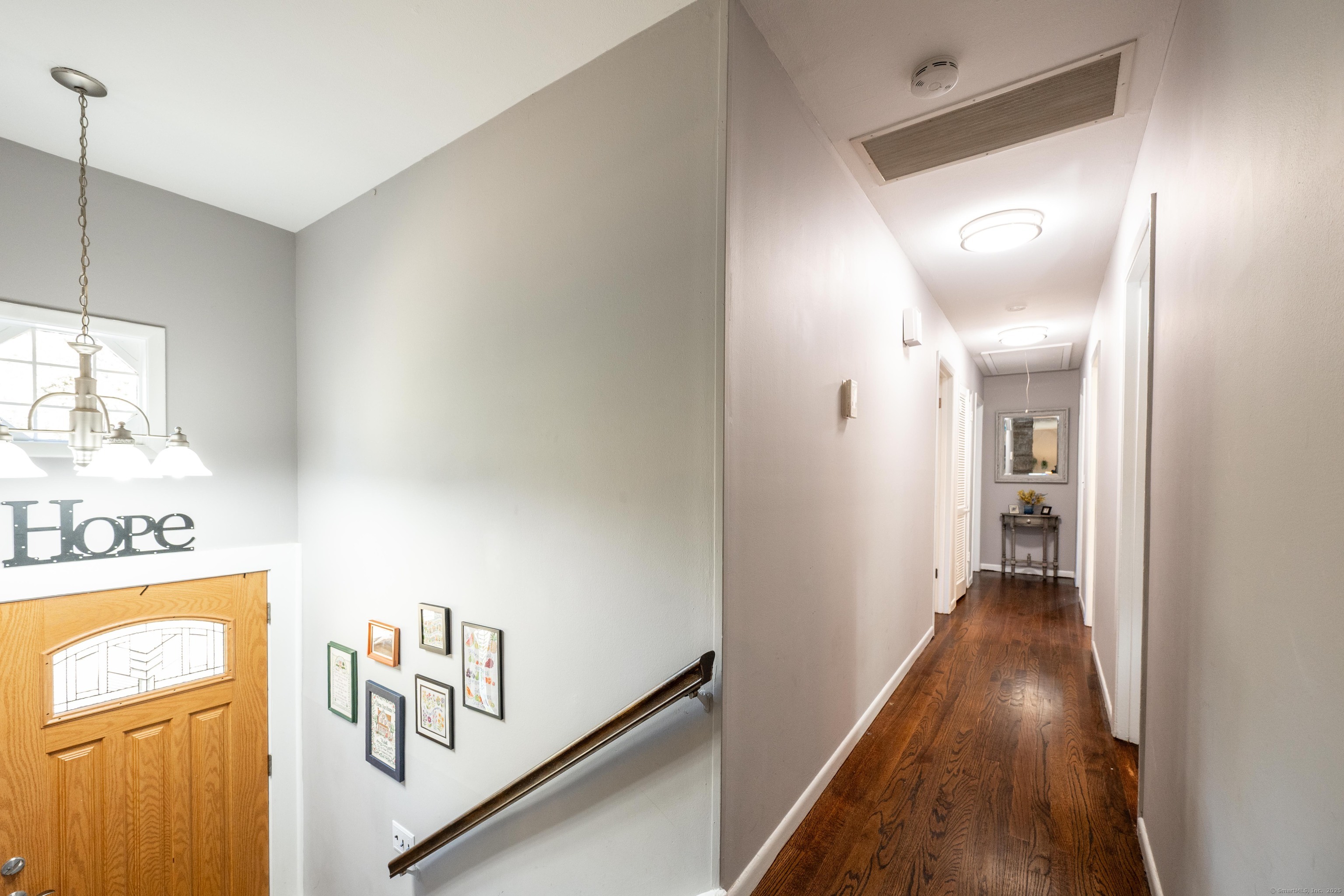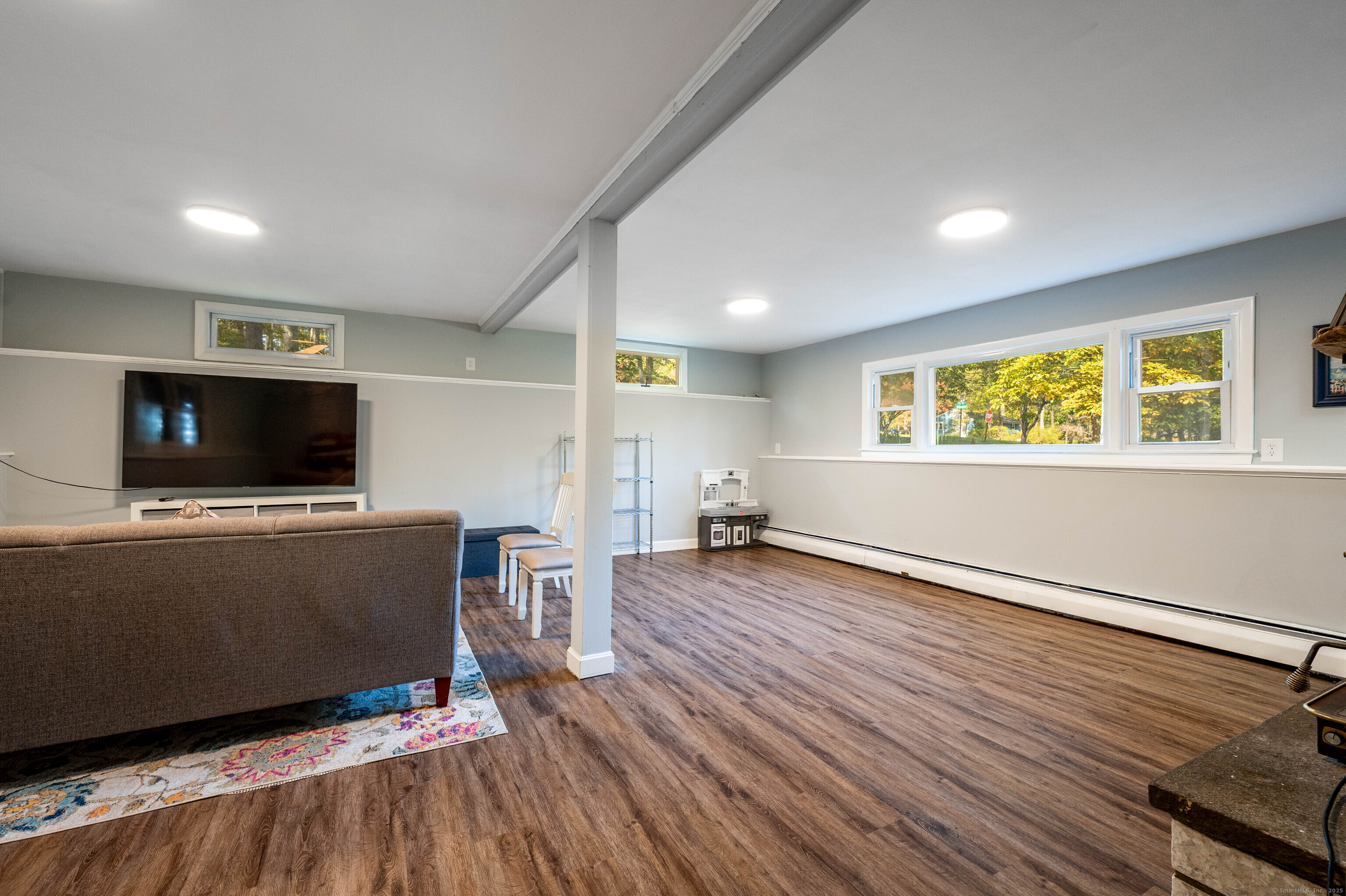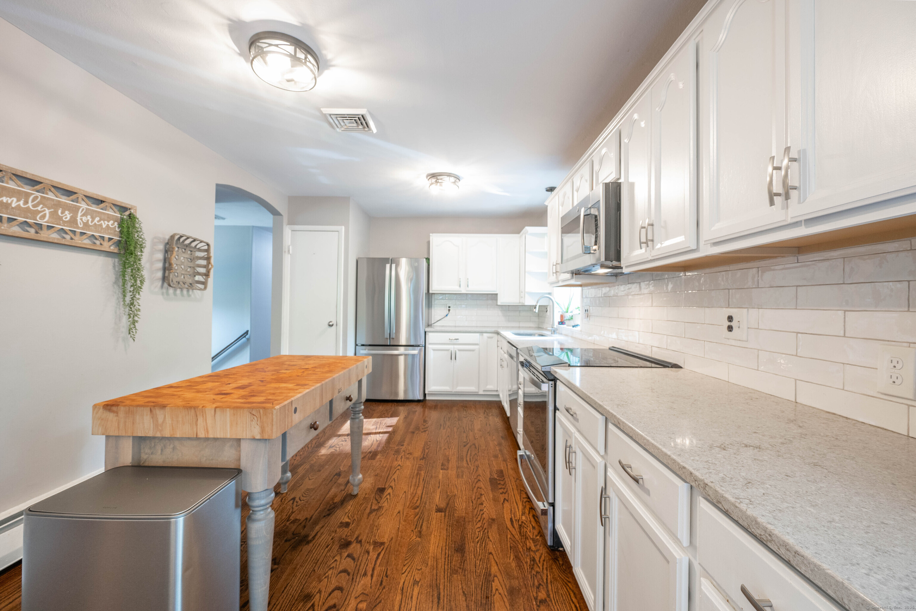 This spacious oversized 4 bedroom, 3 full bath Raised Ranch is the perfect home you have been searching for! Conveniently located in one of Brookfield's vibrant neighborhoods, on a flat 1 acre corner lot with mature plantings that offer both privacy and standout curb appeal. The home features an abundance of natural light and hardwood floors throughout the main level. The open floor plan is great for everyday living or hosting gatherings. The sunlit living room with large bay window offers a tasteful stone fireplace that adds warmth and charm. The updated kitchen boasts stainless appliances, and quartz countertops. Just off the dining area, sliding glass doors open to the expansive deck ideal for outside relaxation and entertaining. The primary bedroom includes an updated private en-suite bath, the 3 additional bedrooms are generously sized and offer plenty of closet space. Another updated full bath completes the main level. Downstairs you will find a fully finished lower level with stylish vinyl tile flooring that offers wonderful additional living space. The large Family Room with wood stove, updated full bath, pantry, storage, laundry area, and additional flexible room great for an office. Newer roof and boiler. Central air ensures comfort year round. Outside, the expansive yard offers plenty of space for outside activities. Very convenient location to the Regional Y, shopping, dining, schools, Lakes, The Greenway, and easy highway access. Highest and Best Mon Oct 20 1:00