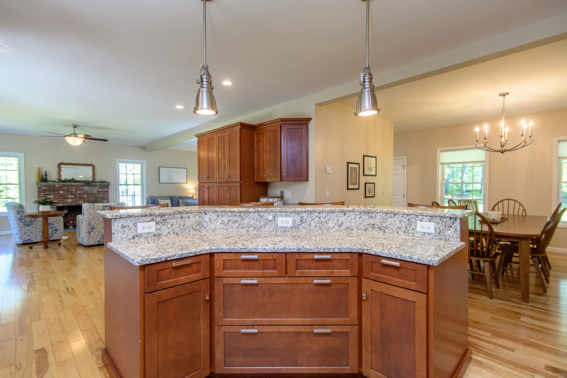A beautifully maintained colonial nestled in one of Woodstock's most picturesque settings with many recent updates. Offering the perfect blend of traditional New England charm and modern comfort, featuring 4 bedrooms, 2.5-baths and spanning nearly 3,000 square feet. (Additional 664 sq ft in basement) Upon arrival you are greeted with a front farmers porch, step inside to discover 9' ceilings throughout a sun filled open floor plan. The heart of the home, a chef's kitchen with high-end appliances, granite countertops, and a spacious island-perfect for entertaining or casual family meals. The kitchen flows seamlessly into a large dining area and a warm, welcoming living room anchored by a cozy fireplace. Upstairs, you'll find four generously sized bedrooms, including a luxurious primary suite with a walk-in closet and a private bath. Need space to work from home or pursue hobbies? This property includes two dedicated offices offering flexibility and function. Outside, enjoy the peace and privacy of your scenic backyard oasis, ideal for gatherings, gardening, or simply relaxing on the patio as you take in the countryside views. Additional highlights include hardwood floors throughout, a spacious two-car garage, and energy-efficient upgrades that make this home as practical as it is beautiful. Located just minutes from Woodstock Academy, local farm stands, and scenic lakes, this property offers the best of small-town living. **Ask for the list of recent updates**