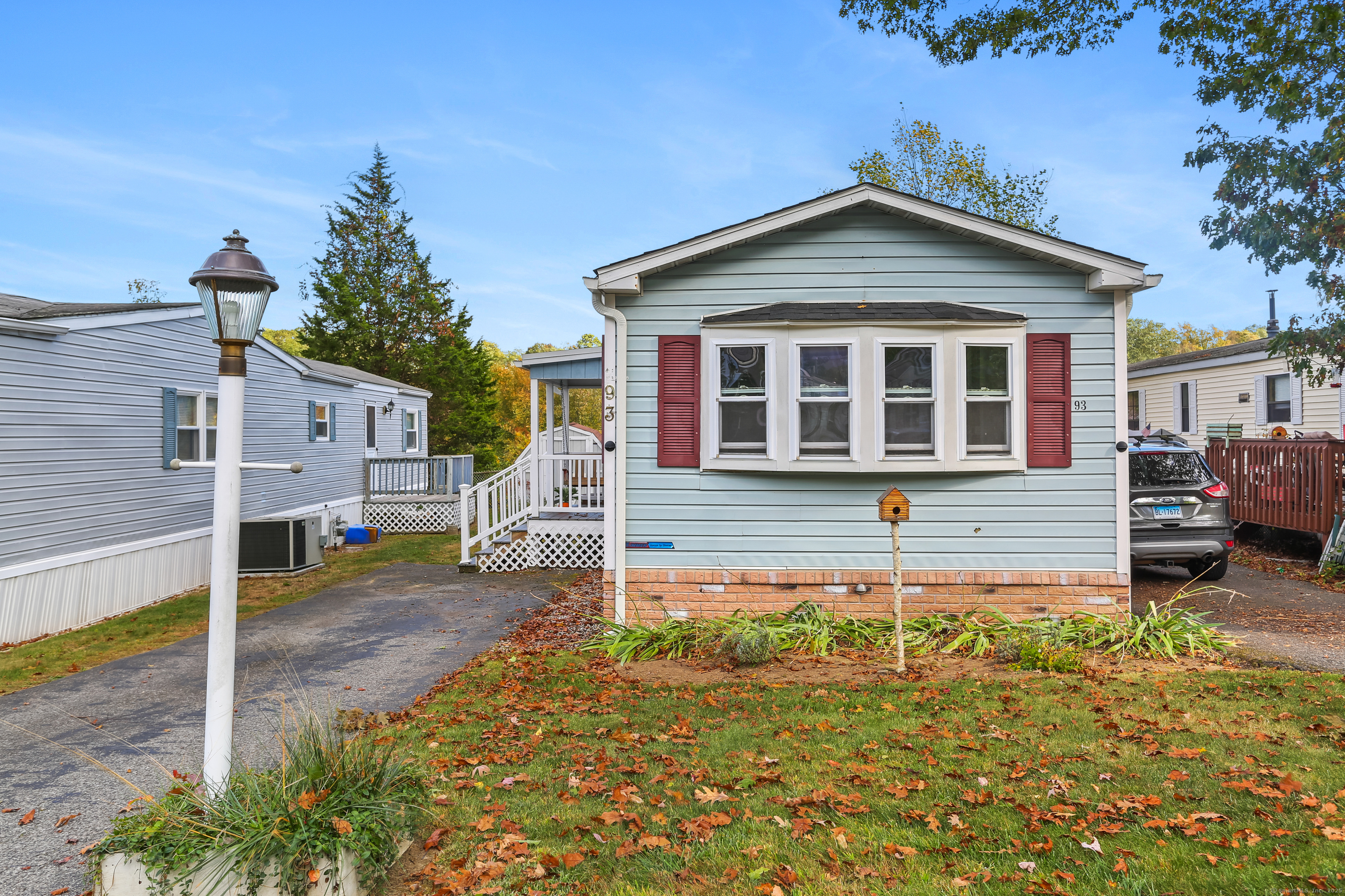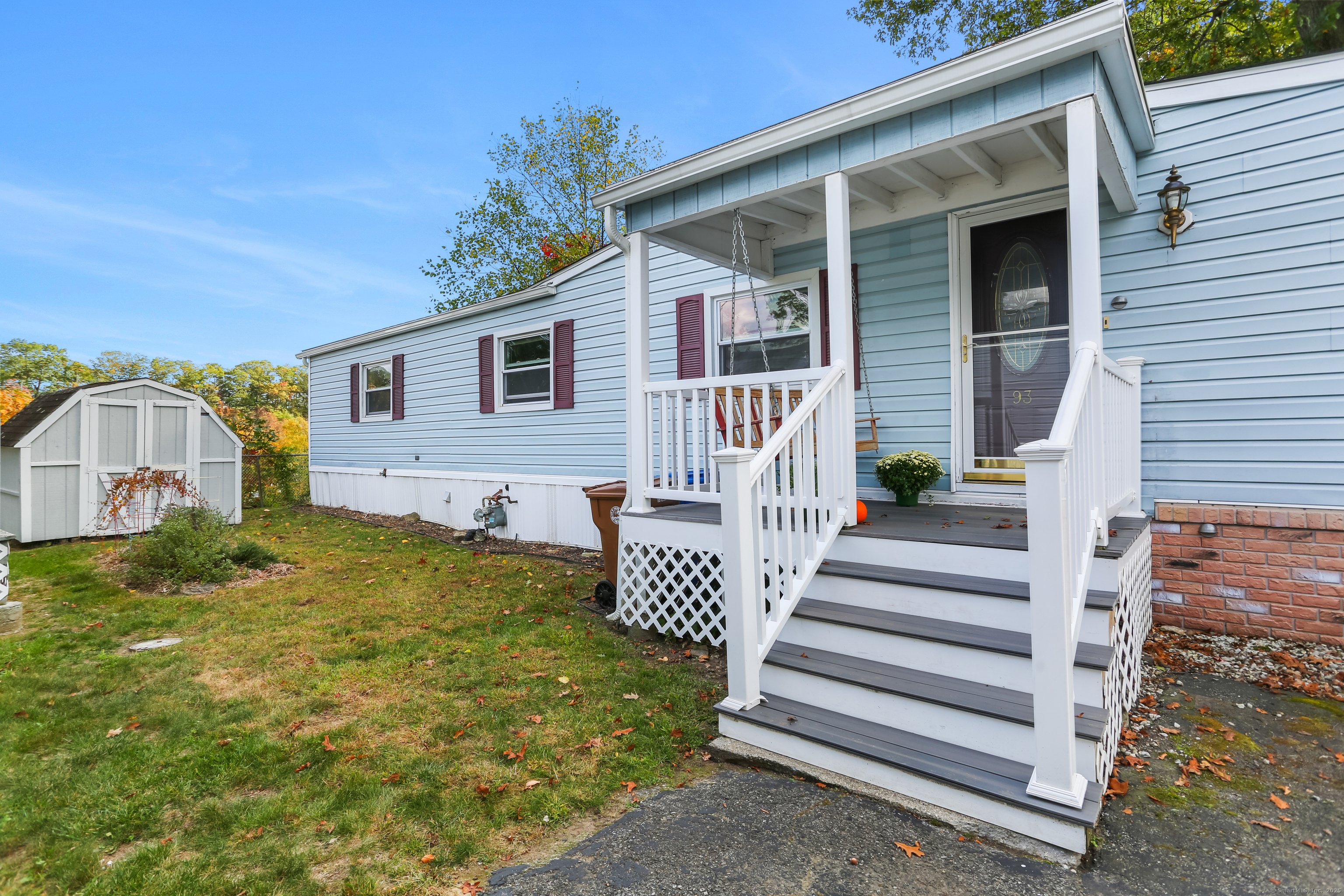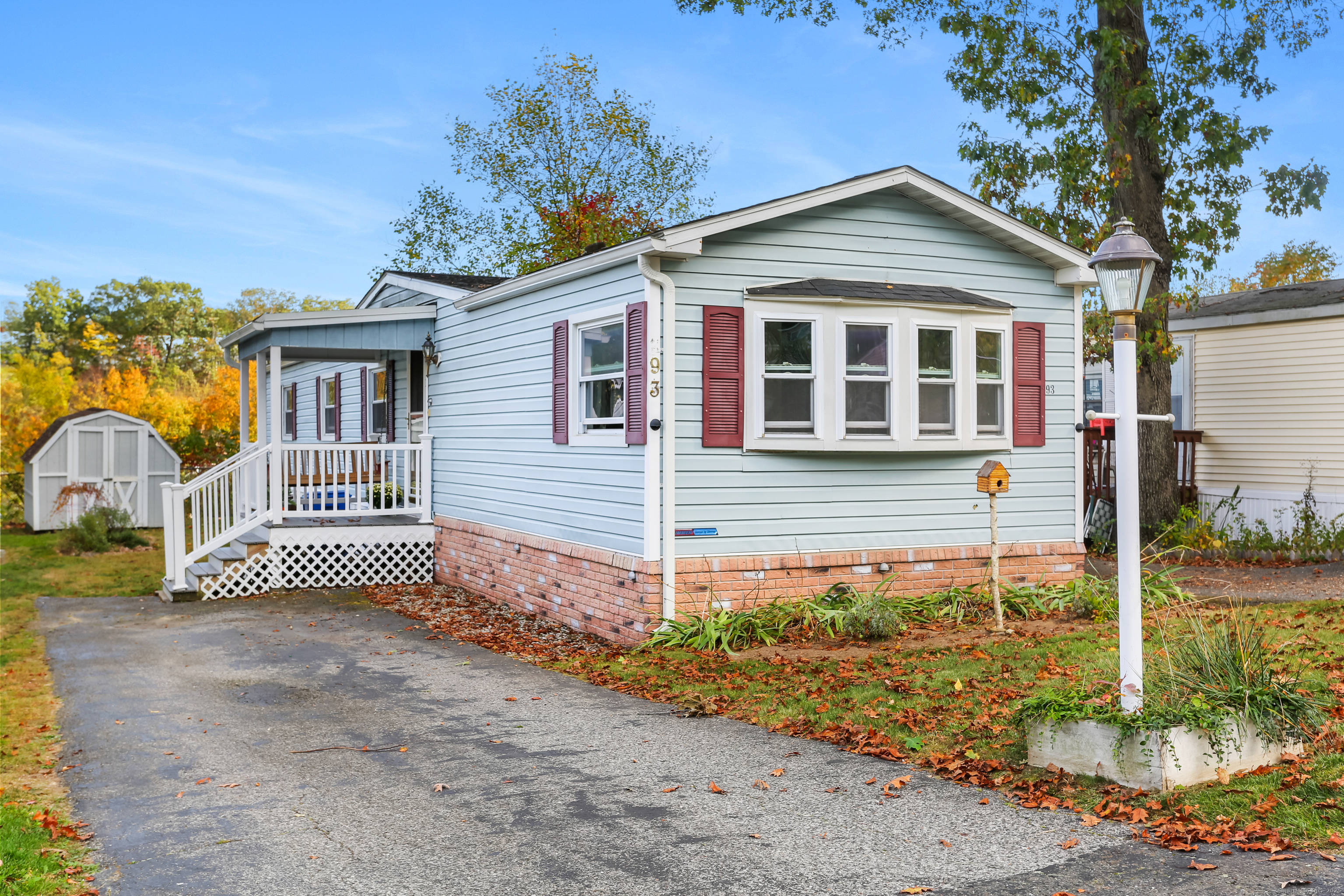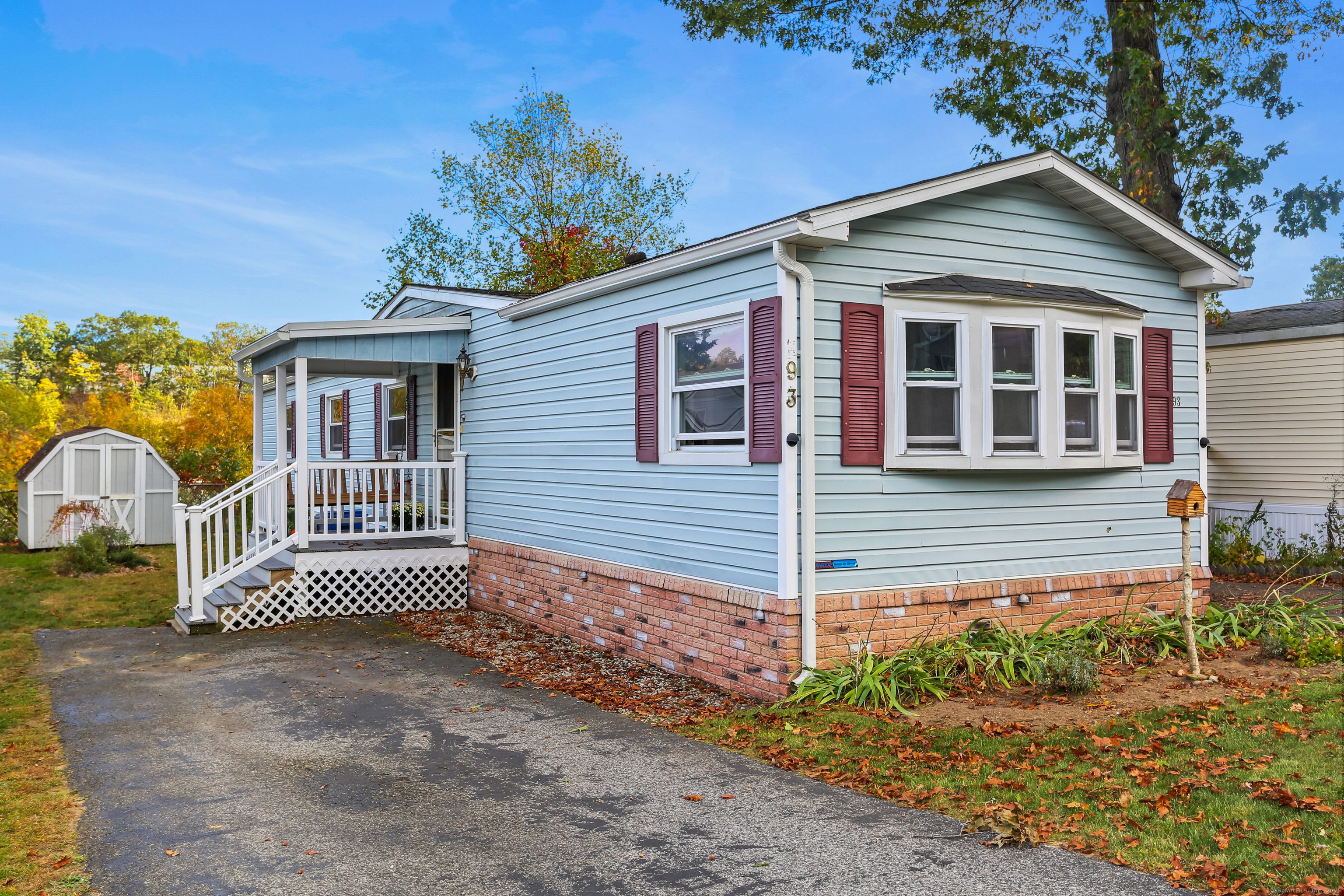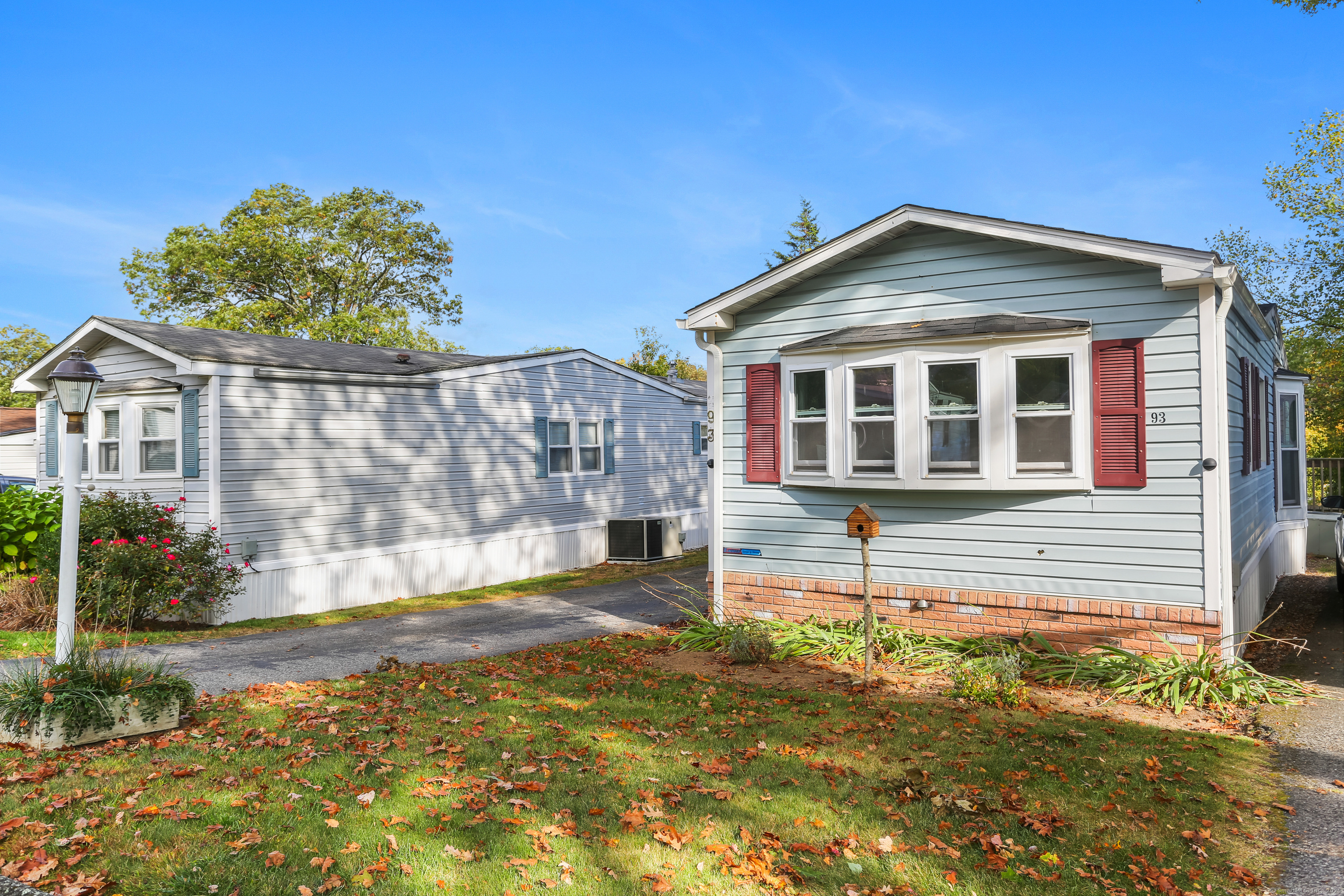 Welcome Home! Discover comfort and convenience in this well-maintained 924 sq ft mobile home, offering easy one-level living and a spacious open floor plan. The large eat-in kitchen features newer appliances, a breakfast bar, and ample cabinet space, with easy access to the laundry area. The bright living room boasts vaulted ceilings, while the well-appointed bathroom includes a soaking tub, separate shower, and plenty of space. Recent updates include a brand new roof with gutter guards, a refurbished furnace, refurbished Central Air and a heating coil added to the main waterline. Enjoy off-street parking in your private driveway, a cozy front porch with swing, and extra storage in the included shed. Conveniently located close to restaurants, shopping, and the main commuter bus line with easy access to major highways, this home offers a perfect blend of relaxation and accessibility. Pets are welcome (with restrictions).