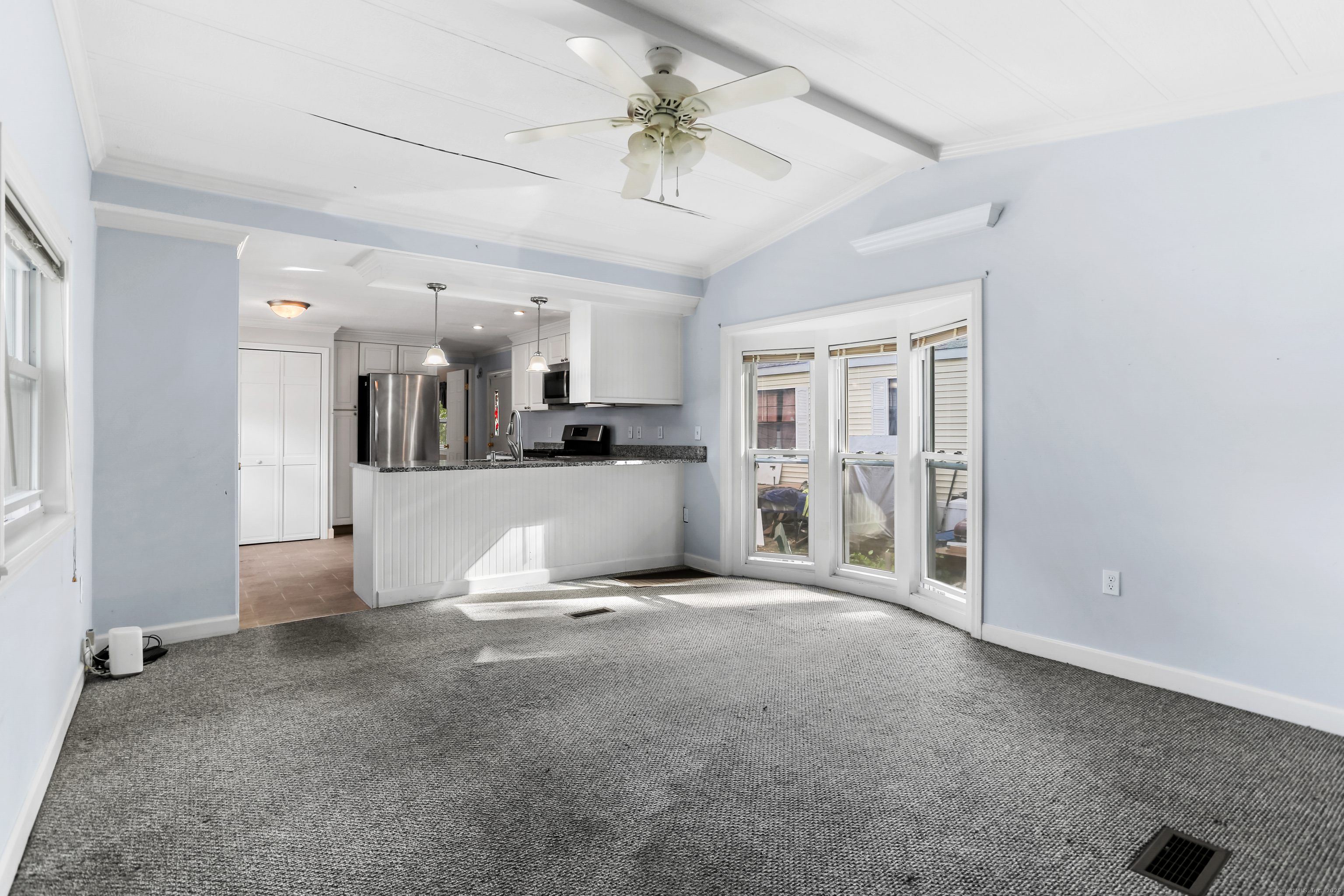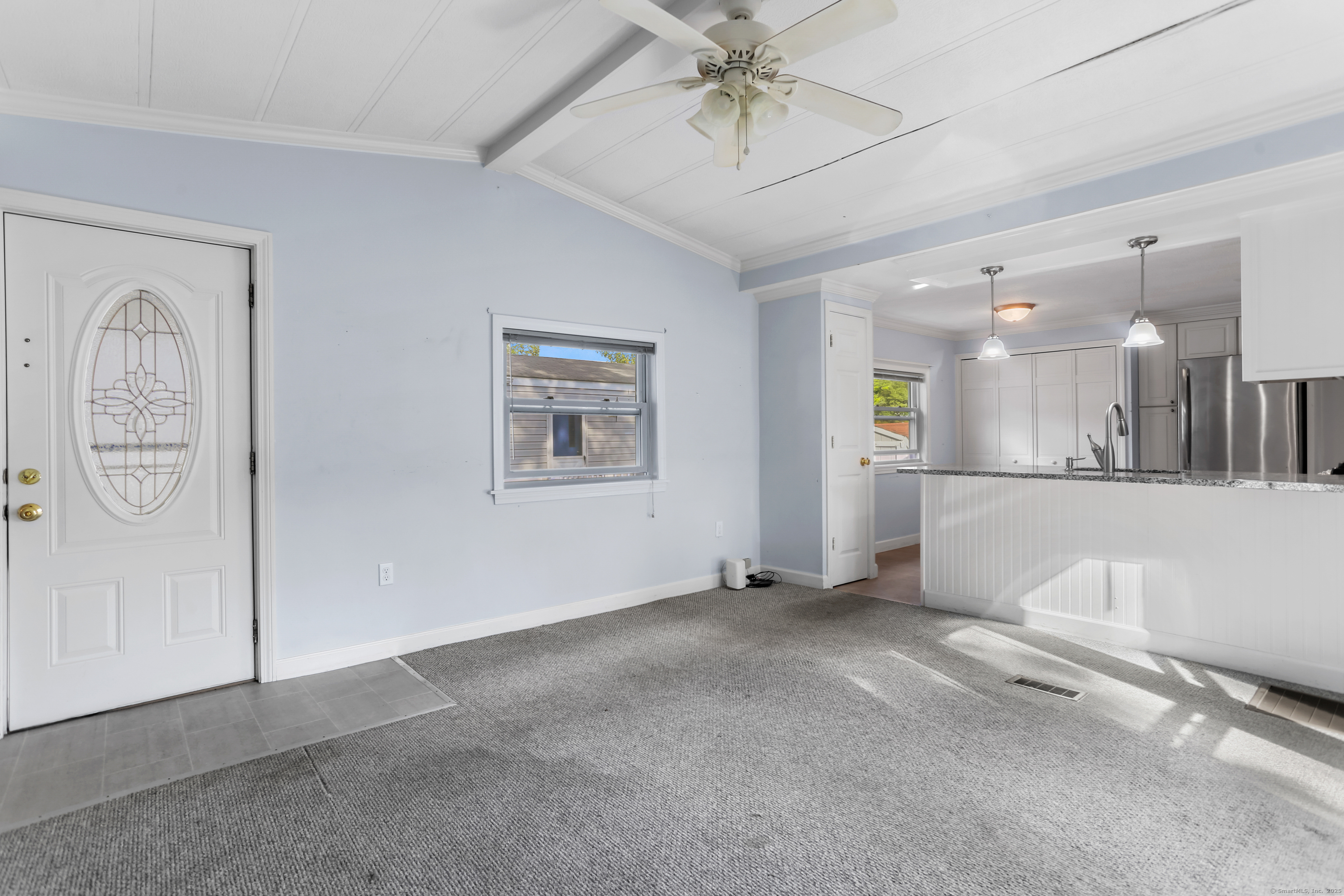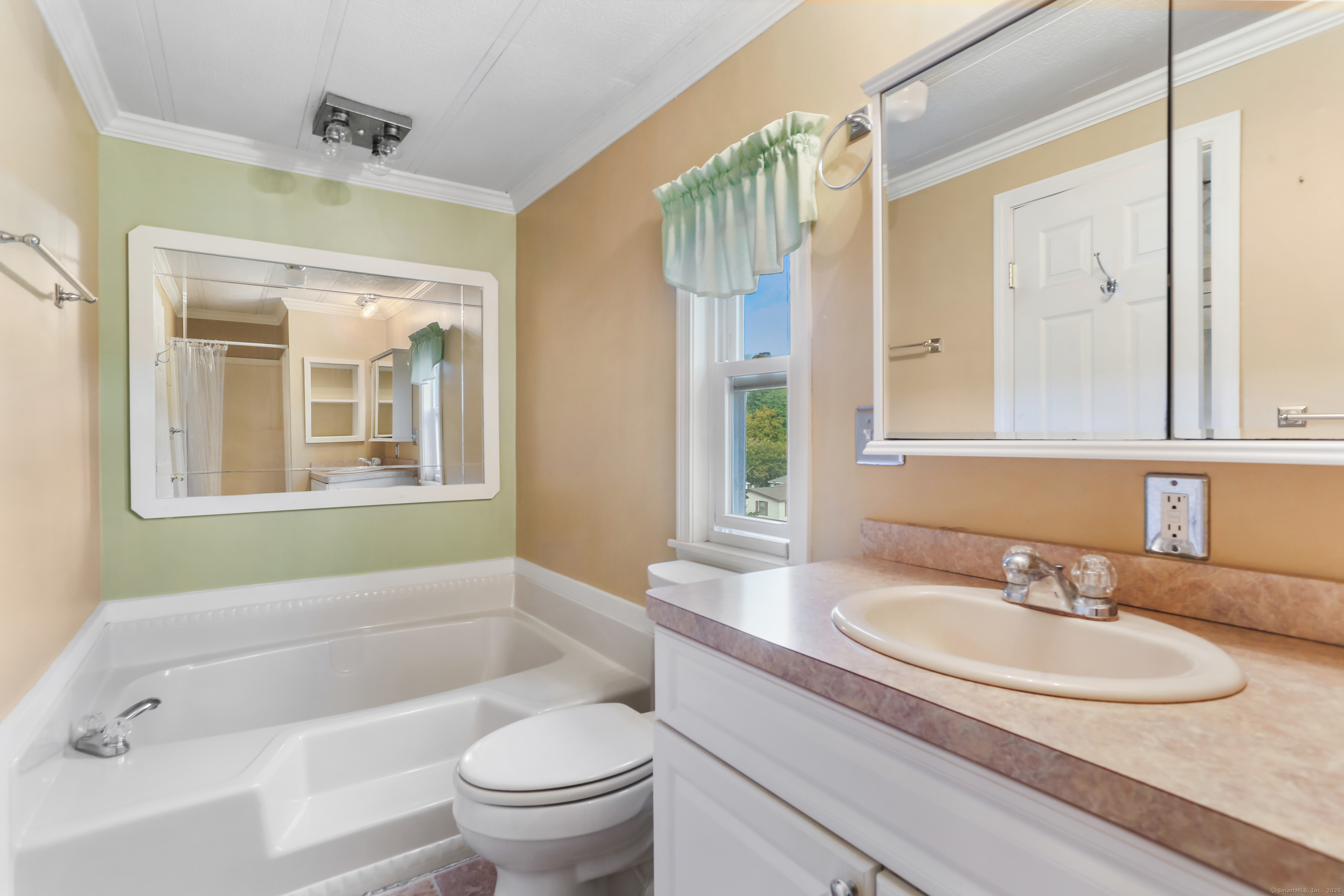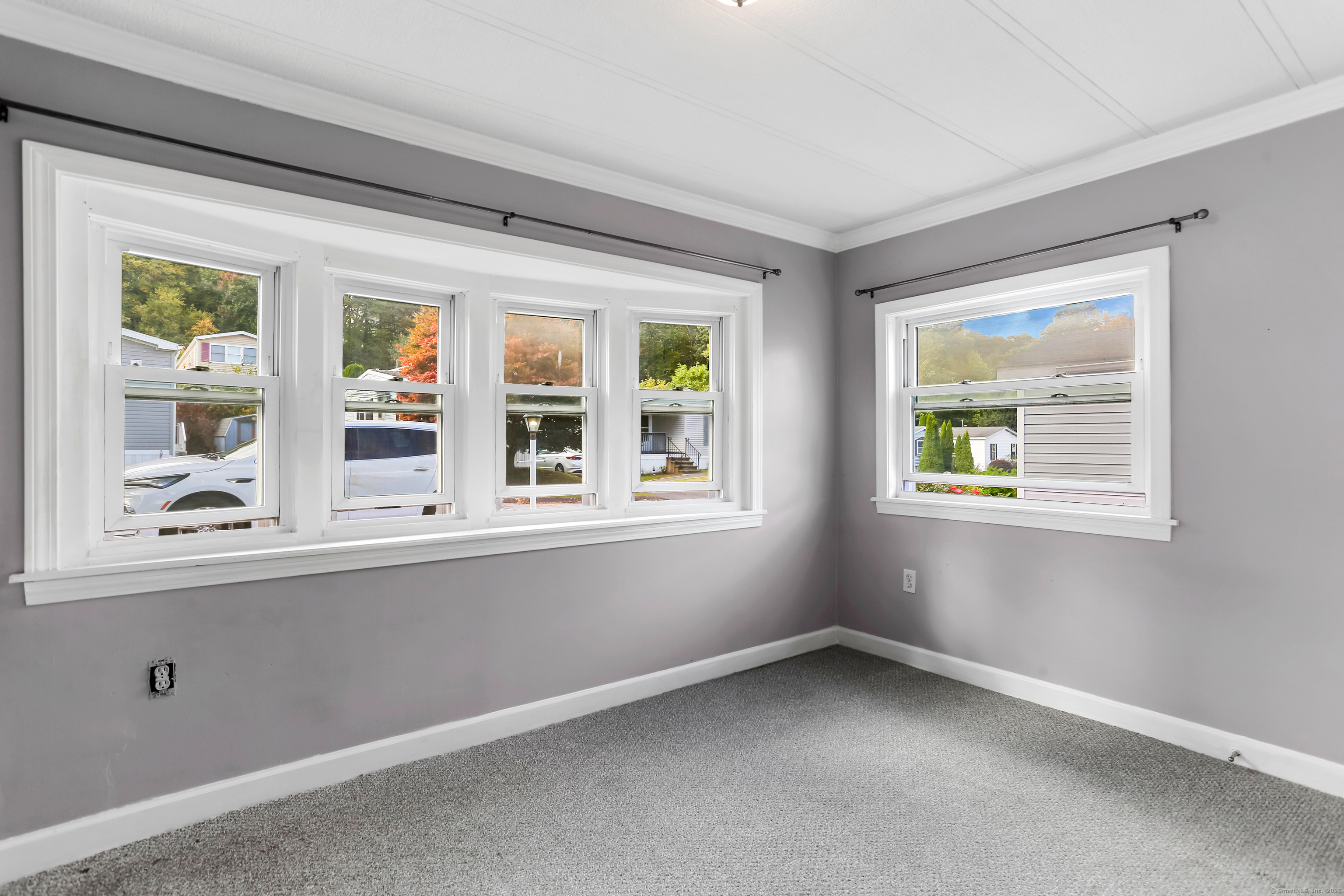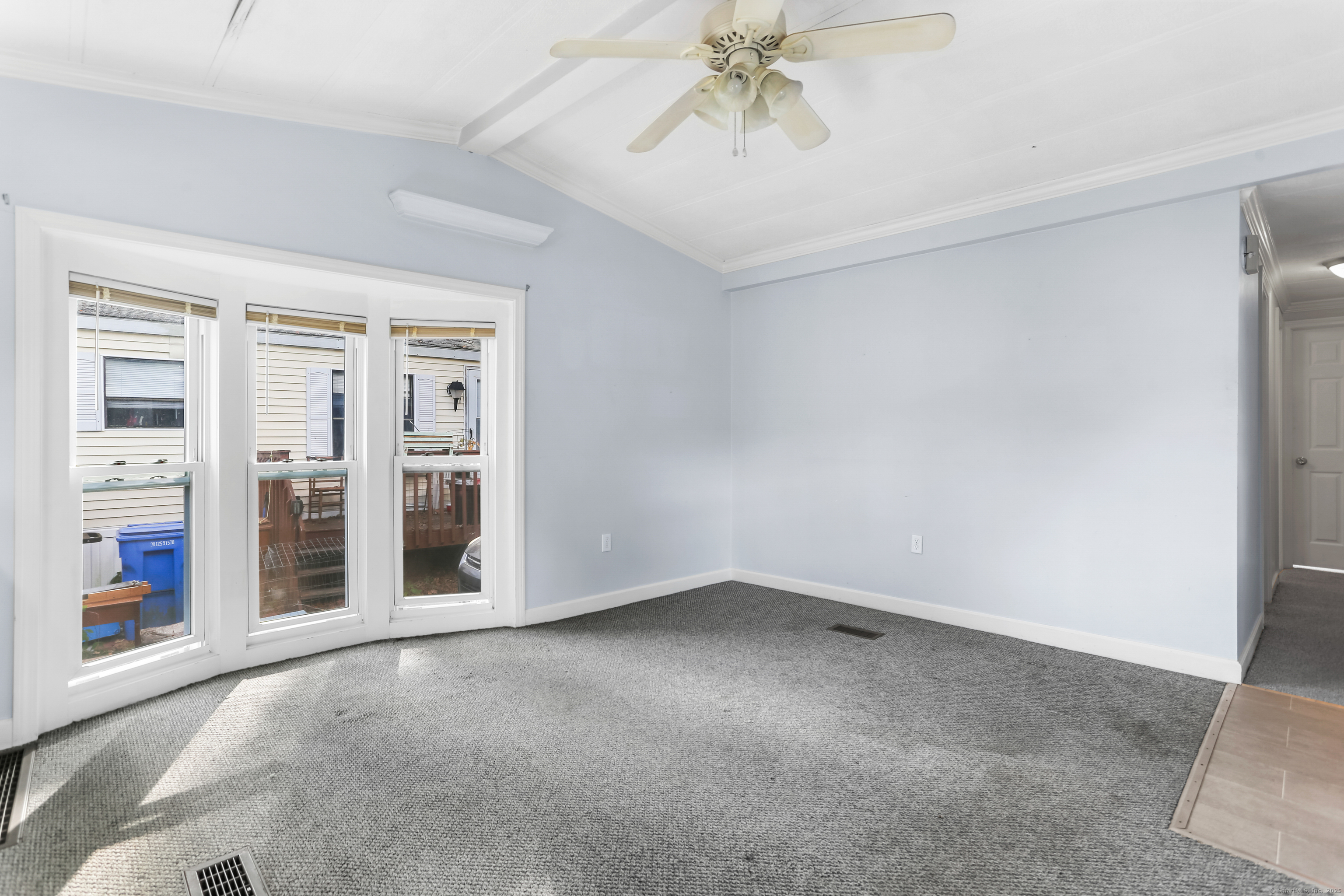 Welcome Home! Discover comfort and convenience in this well-maintained 924 sq ft mobile home, offering easy one-level living and a spacious open floor plan. The large eat-in kitchen features newer appliances, a breakfast bar, and ample cabinet space, with easy access to the laundry area. The bright living room boasts vaulted ceilings, while the well-appointed bathroom includes a soaking tub, separate shower, and plenty of space. Recent updates include a brand new roof with gutter guards, a refurbished furnace, refurbished Central Air and a heating coil added to the main waterline. Enjoy off-street parking in your private driveway, a cozy front porch with swing, and extra storage in the included shed. Conveniently located close to restaurants, shopping, and the main commuter bus line with easy access to major highways, this home offers a perfect blend of relaxation and accessibility. Pets are welcome (with restrictions).