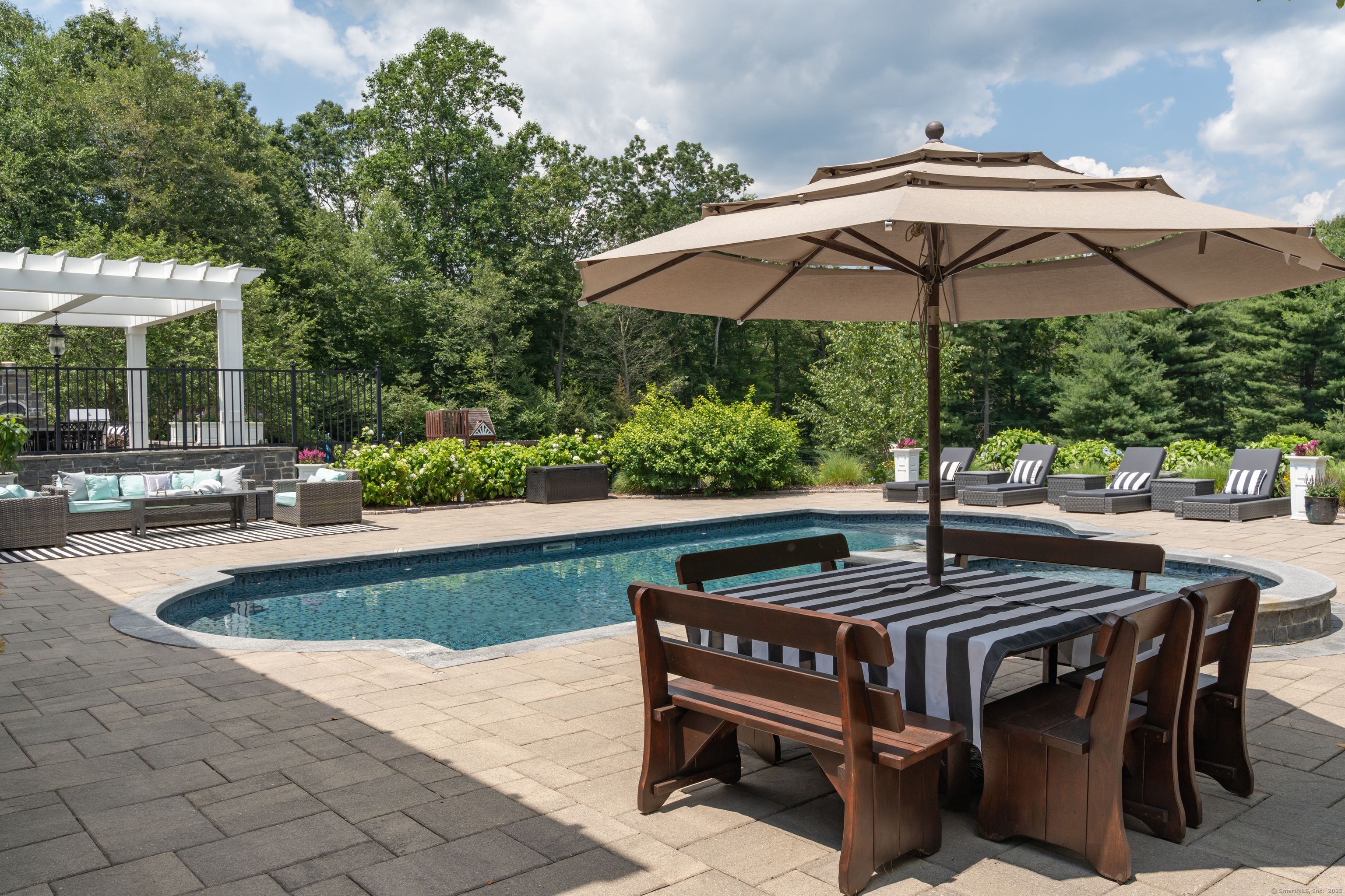 Prepare to be WOWed by this far-from-typical Colonial! This gorgeous home has been completely reimagined and remodeled with the highest-end finishes throughout, blending timeless design with modern sophistication. The heart of this 4,000+ sqft home is the chef's kitchen, featuring a Sub-Zero refrigerator, Wolf range, and a stunning Carrara marble island-perfect for culinary enthusiasts and entertainers alike. Multiple spacious living areas offer flexibility for today's lifestyle, along with 5 bedrooms and 3 FULL baths, including options for a possible in-law suite and 6th bedroom. There is a media room with a custom bar, gym, or home office. Elegant crown molding, high ceilings, arched doorways, and dark oak flooring are found throughout. But it doesn't stop there! Step outside to your own private resort-style oasis, where every day feels like a vacation. Enjoy the sparkling inground saltwater pool and spa, dine al fresco under the custom pergola in your fully equipped outdoor kitchen-complete with a pizza oven-and unwind by the outdoor fireplace. All of this is perfectly nestled on 2 peaceful acres, offering privacy and tranquility. A truly rare opportunity to embrace luxury outdoor living in your own backyard. Tucked away in a peaceful country setting, yet minutes from beautiful Shoreline beaches, acclaimed local restaurants, and scenic hiking at Chatfield Hollow State Park. Enjoy the perfect balance of tranquility and convenience!