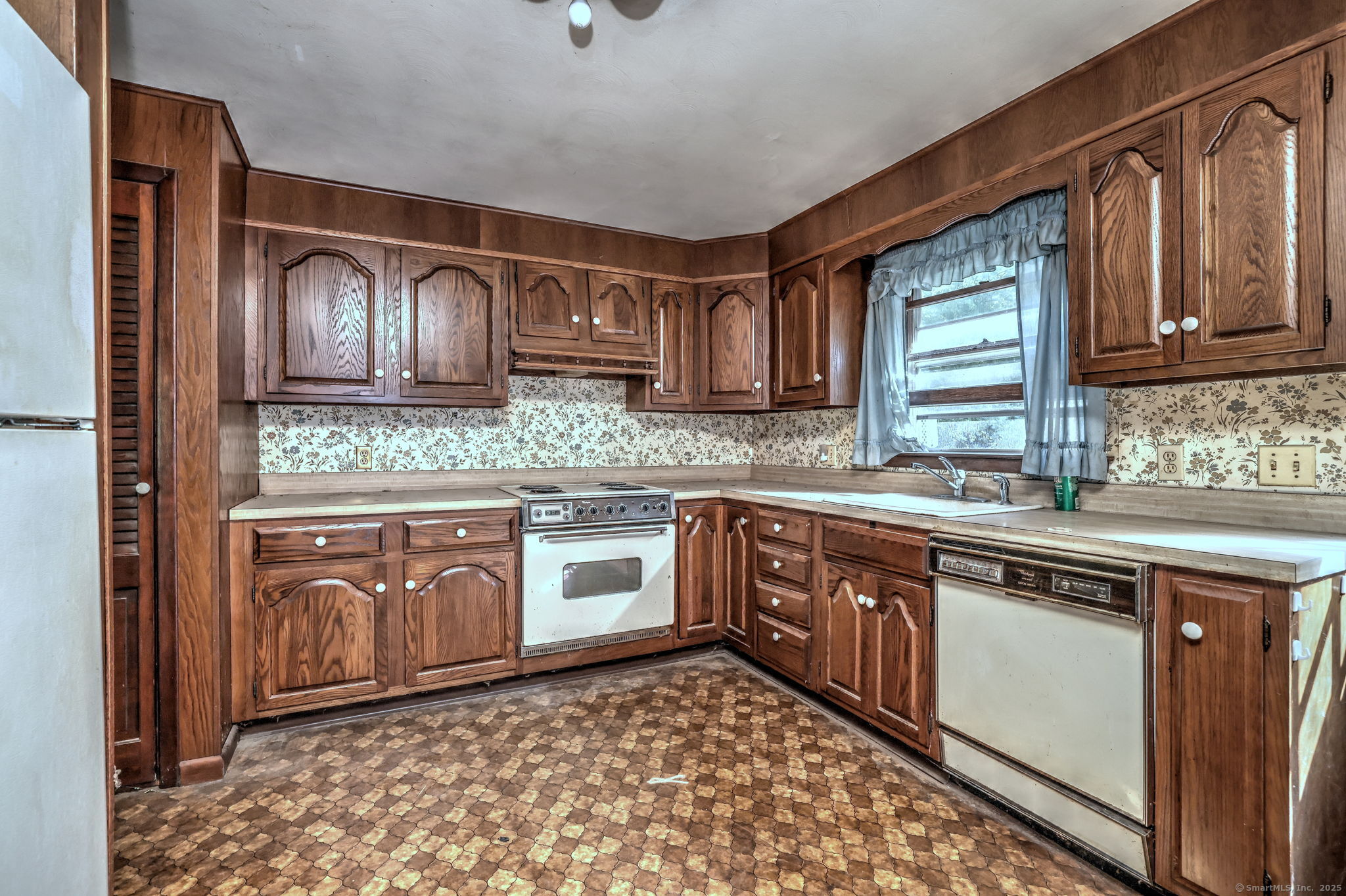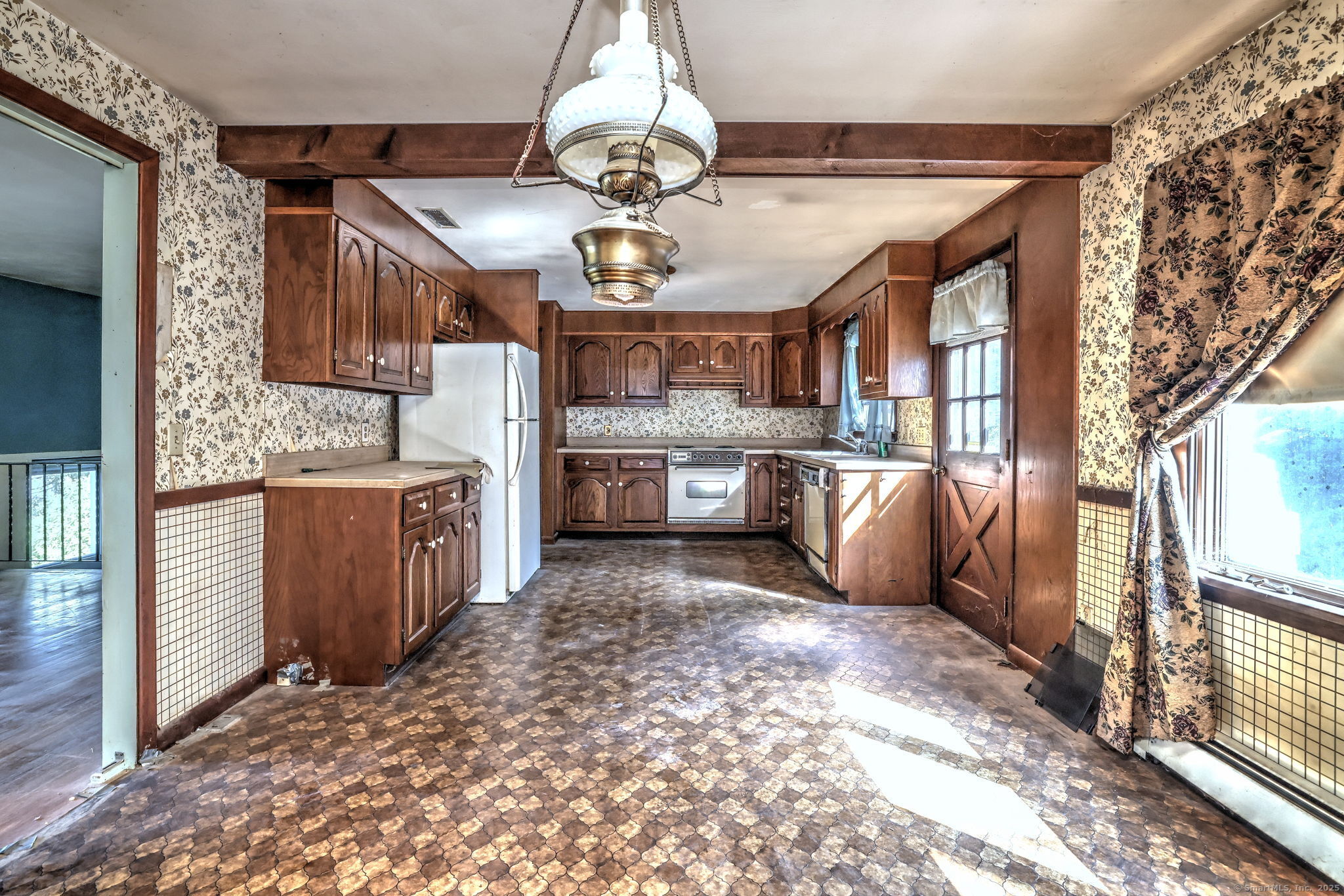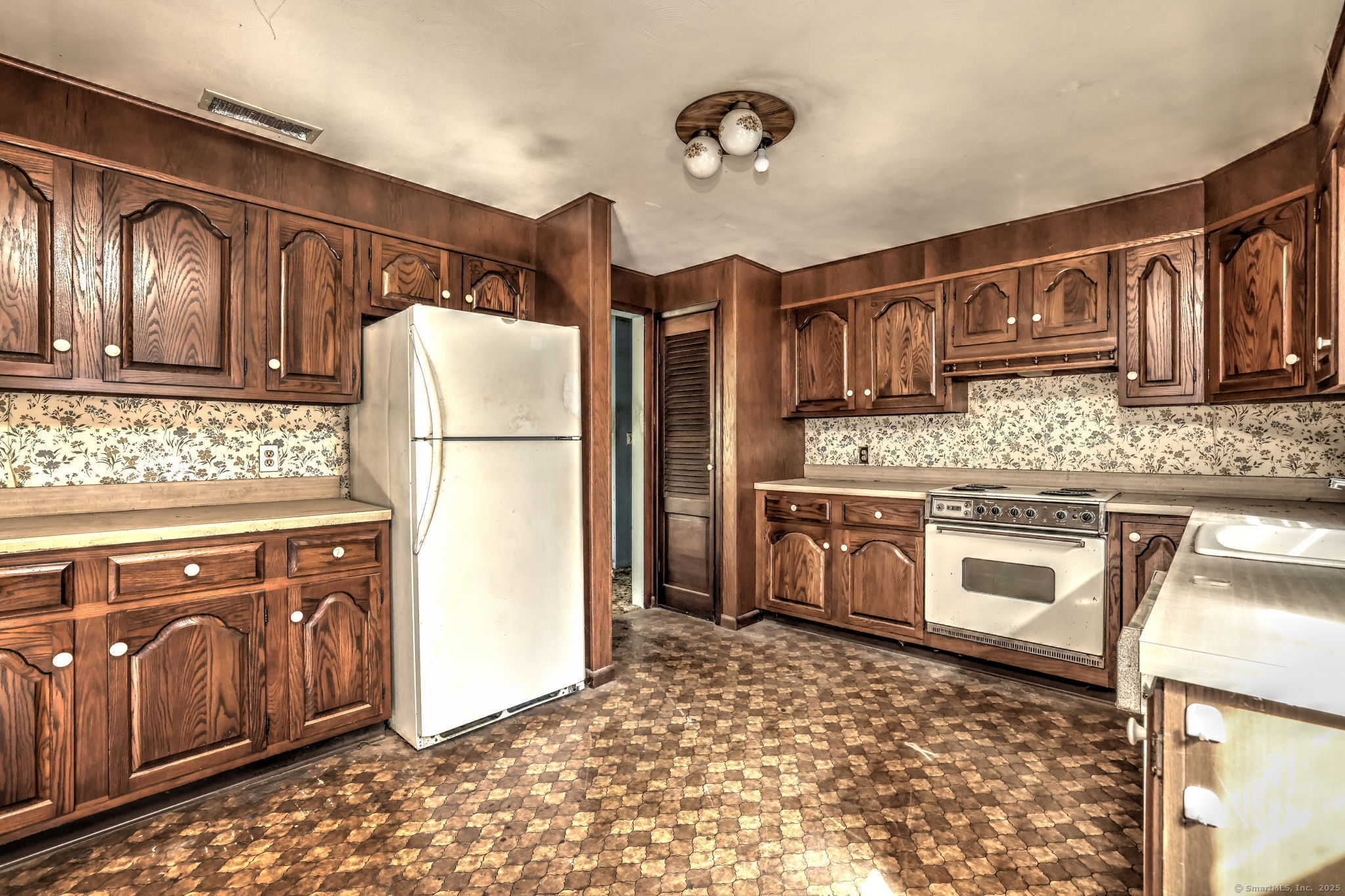 Opportunity knocks! Come grab this diamond in the rough Raised Ranch on a lovely level lot. Perfect for the savvy investor or handyman. Keep as a 2 or easily convert to a 3 Bedroom home. Large Living room with oversized bow window. Hardwood floors even under carpet. Spacious kitchen and dining area. Lower level family room with a wet bar and fireplace. There is an additional large bonus area- previously used as a second kitchen and family room. Sold AS-IS.
