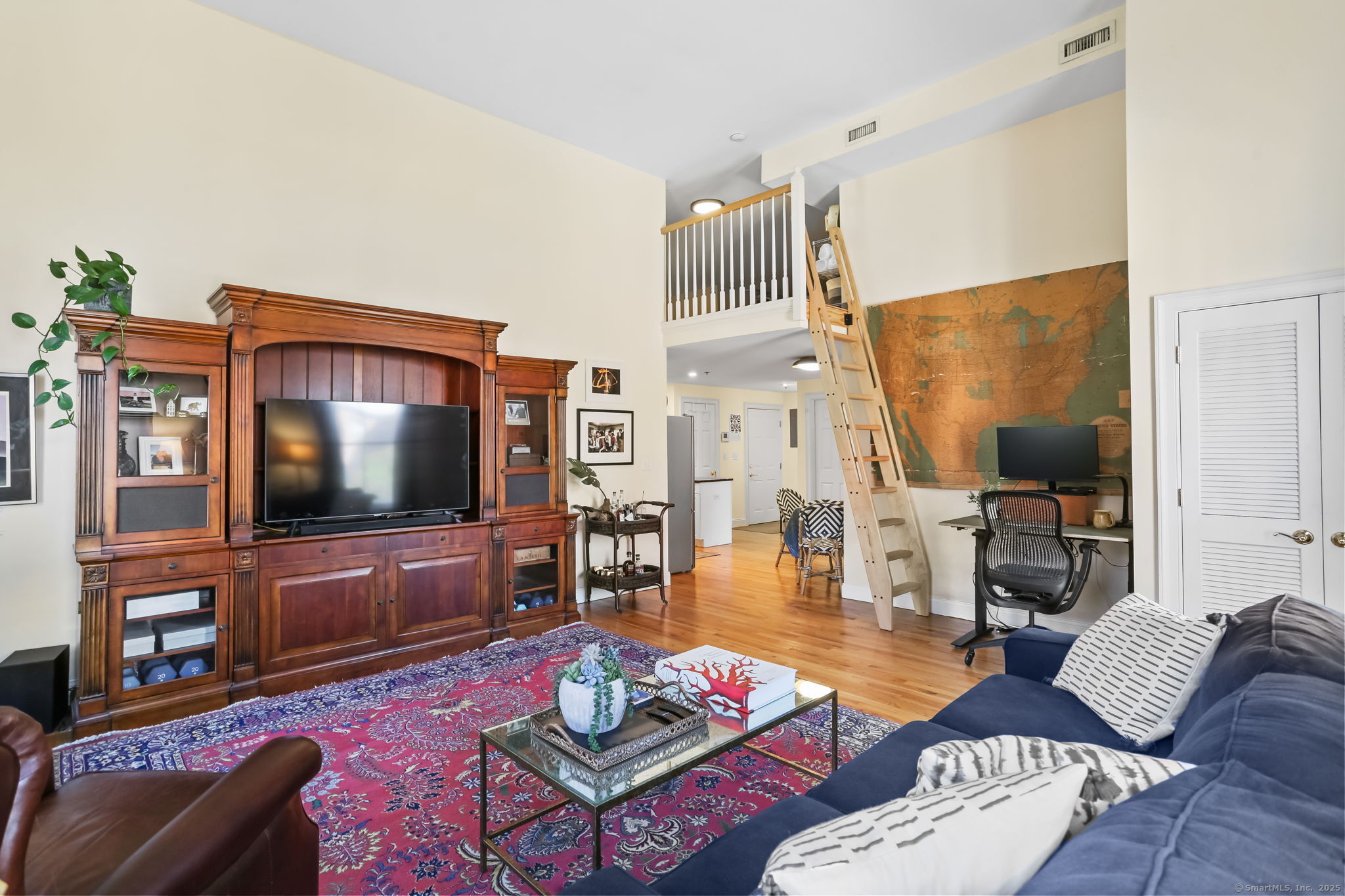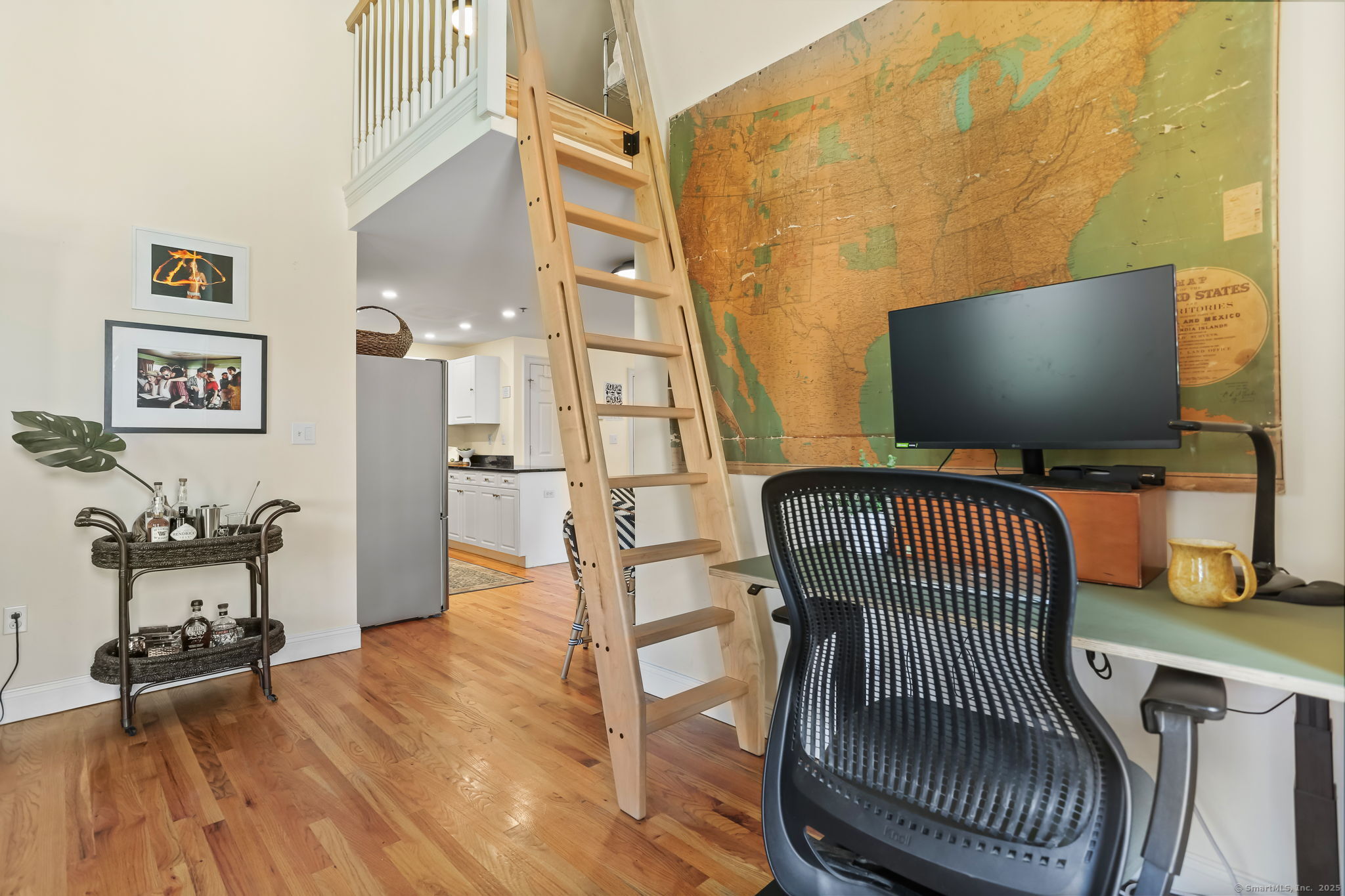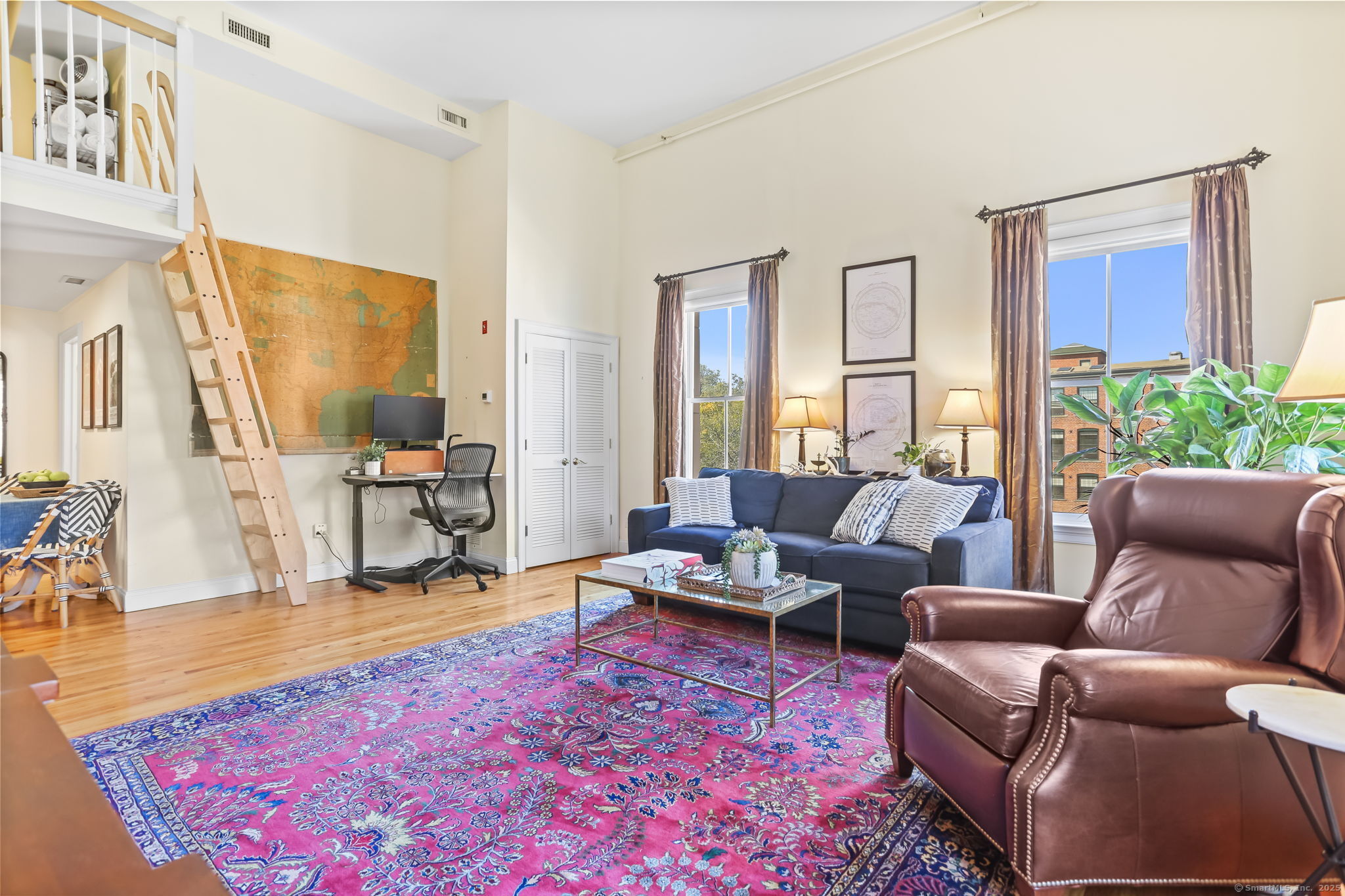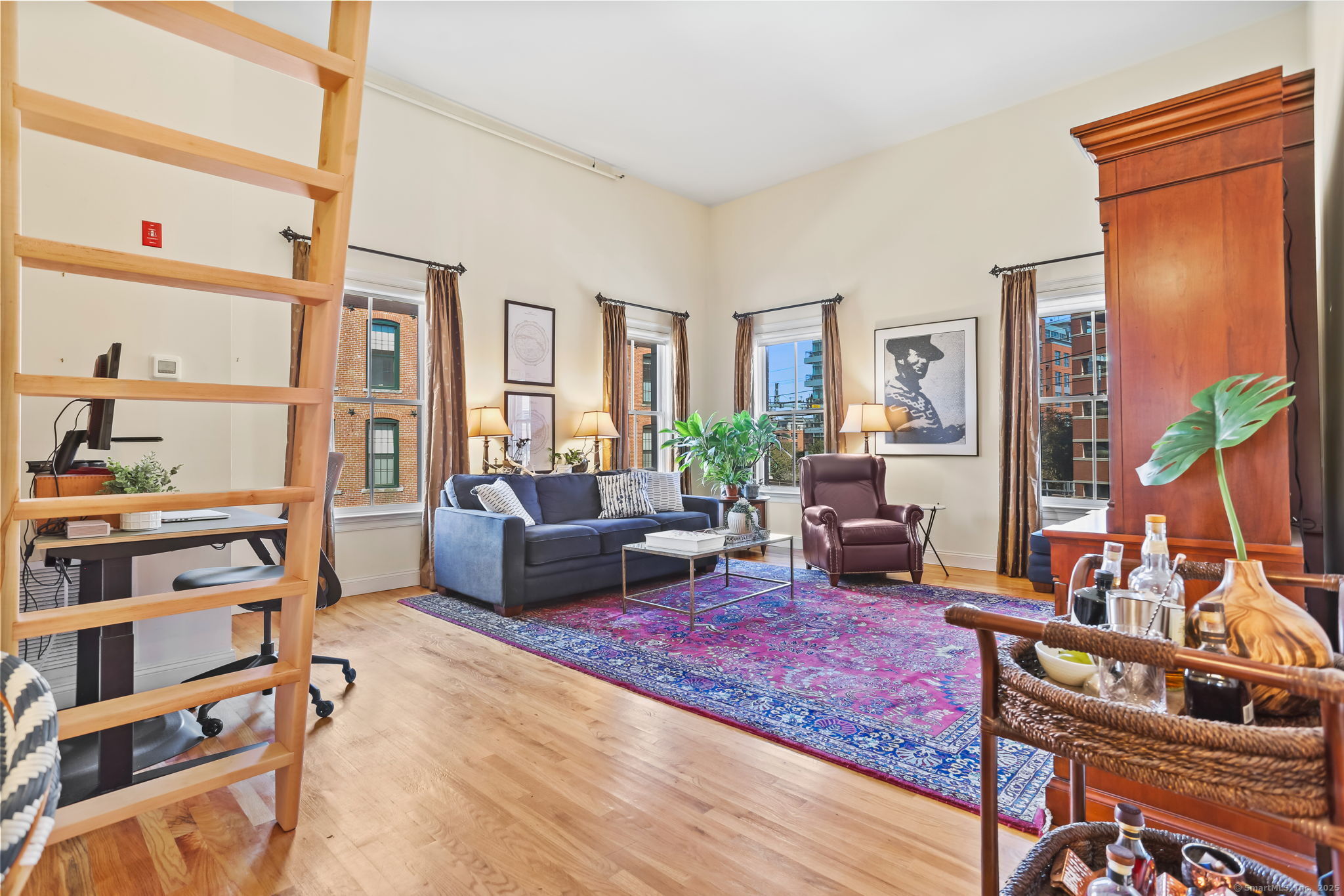 Chic, sunny, spacious corner unit is the perfect combo of vibrant urban lifestyle and a comfortable home boasting soaring 13-foot ceilings, hardwood floors, and an abundance of natural light pouring in through oversized windows. Located on the top floor in a secure, 12-unit elevator building on a charming, quiet street in the heart of bustling SoNo. The open-concept living and dining room floor plan is ideal for both entertaining and everyday living, complete with a home office alcove. A cook's kitchen features gas range, granite countertops, ample cabinetry, stainless steel appliances. Gorgeous bedroom with dramatic 13 ft. high ceilings, large windows, closets galore. A large 289 sq.ft. Loft area levels up this home's functionality for hosting guests or storing belongings. Practical design touches include a bright, updated bathroom with lighted mirror, entry area with bench/shoe storage, in-unit washer/dryer, central A/C and energy-efficient gas heating. Well-maintained, safe, pet-friendly building with garden, picnic tables, assigned indoor garage parking, guest parking, lower level laundry room. Just steps to world-class dining, S. Norwalk Metro North train station, the SoNo Collection Mall, Maritime Aquarium, Oyster Shell Park, art galleries and the harbor, this location offers the perfect balance of urban energy and relaxed coastal living. It's more than a place to live - it's a lifestyle!