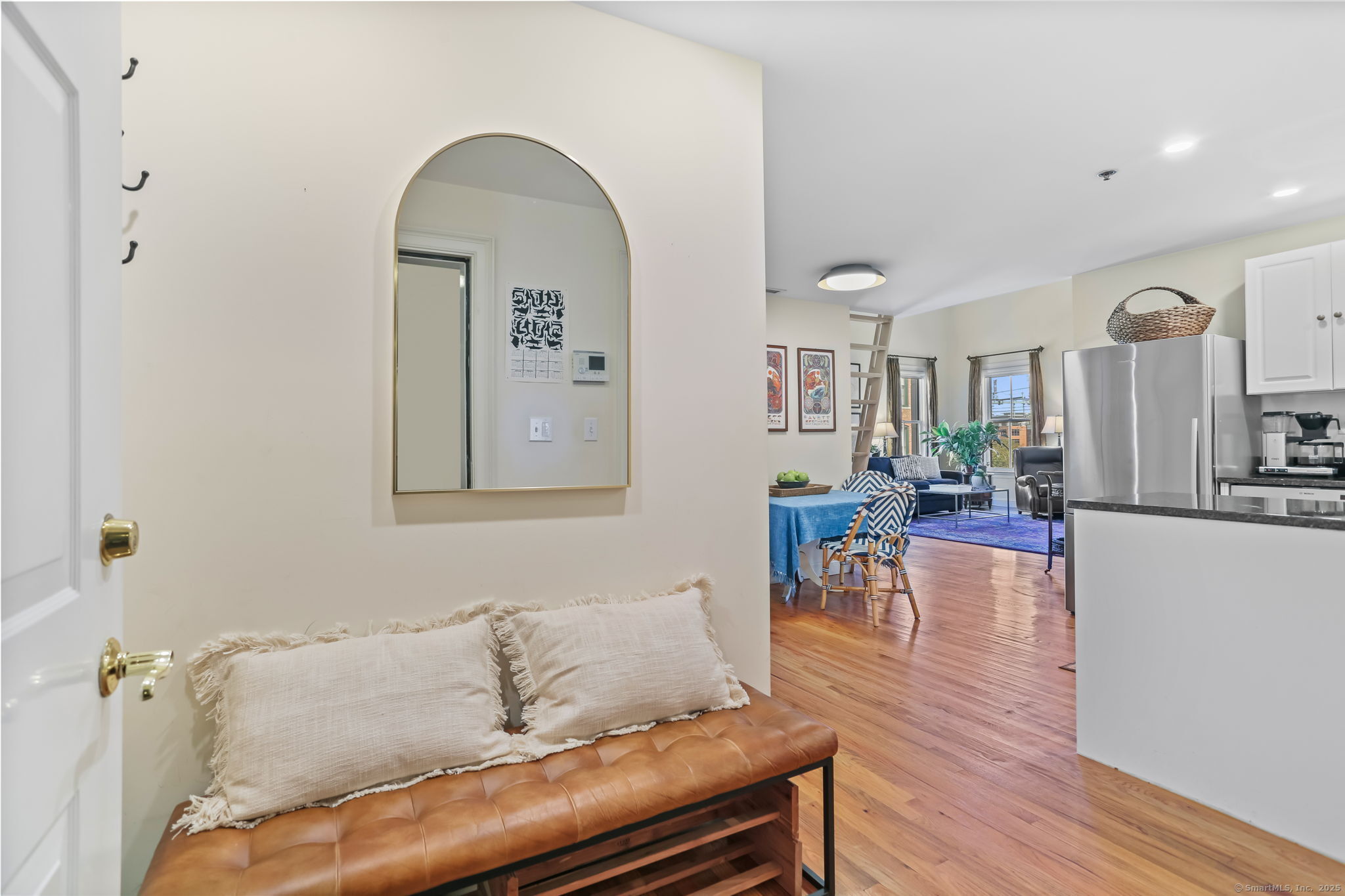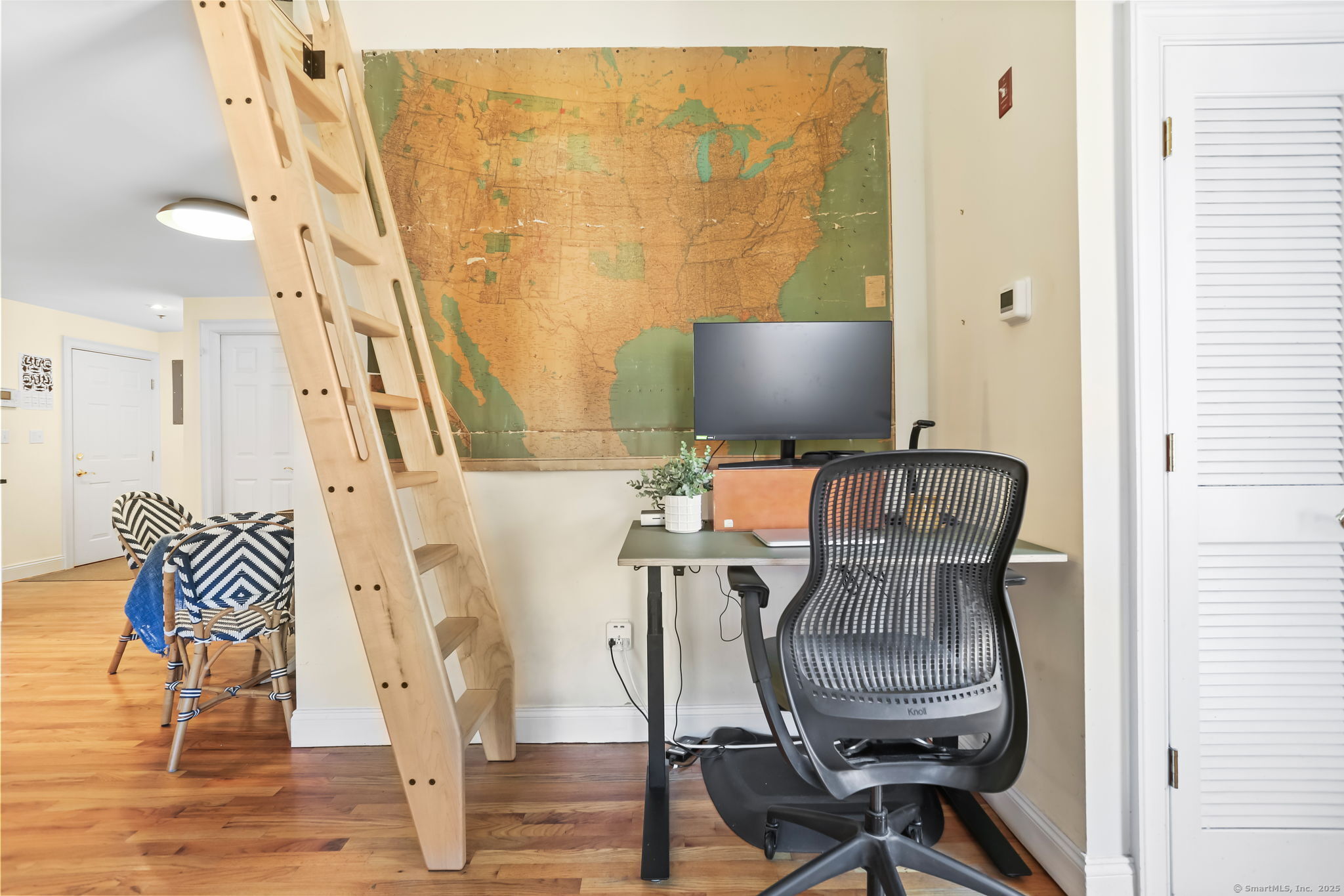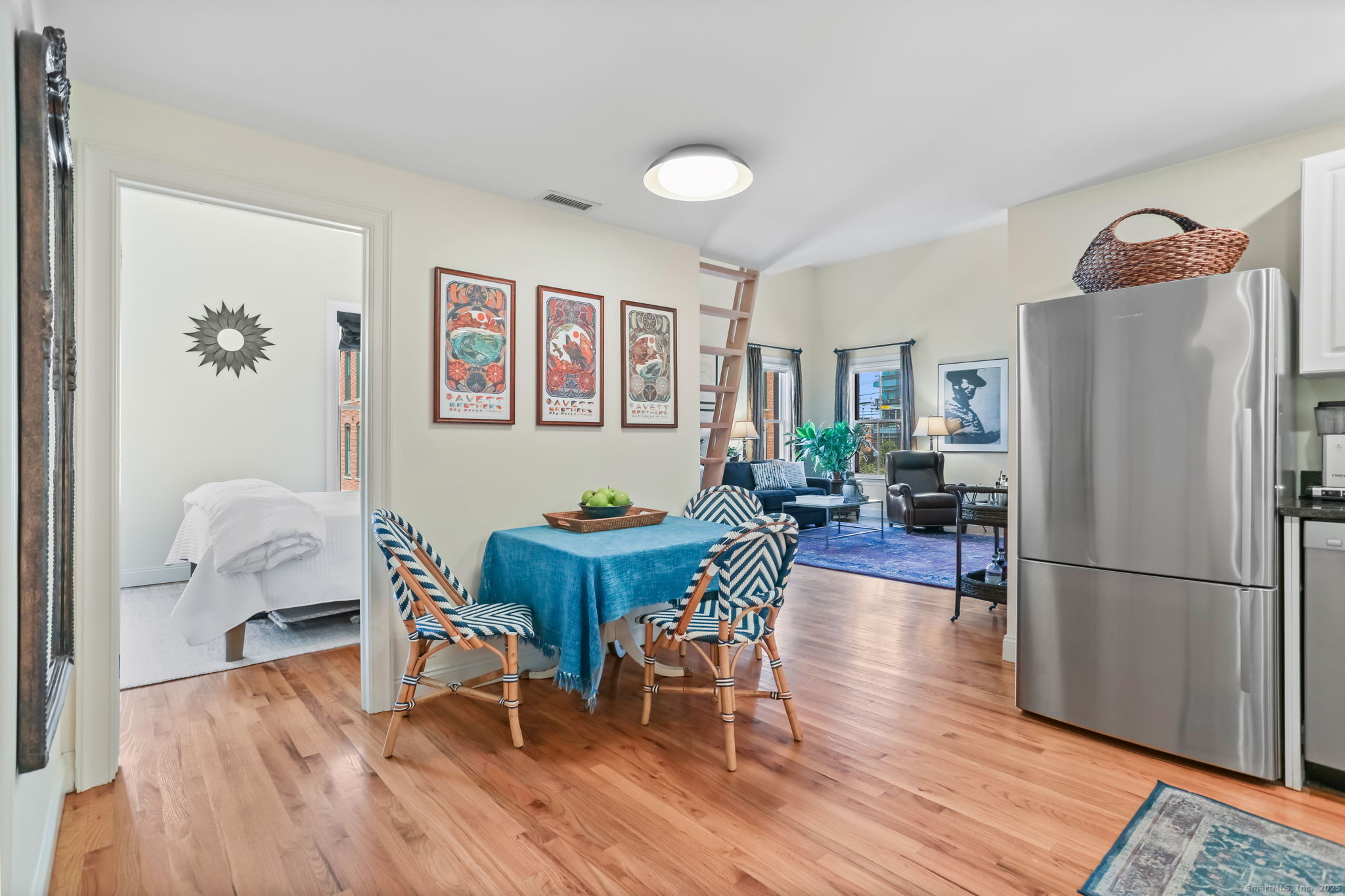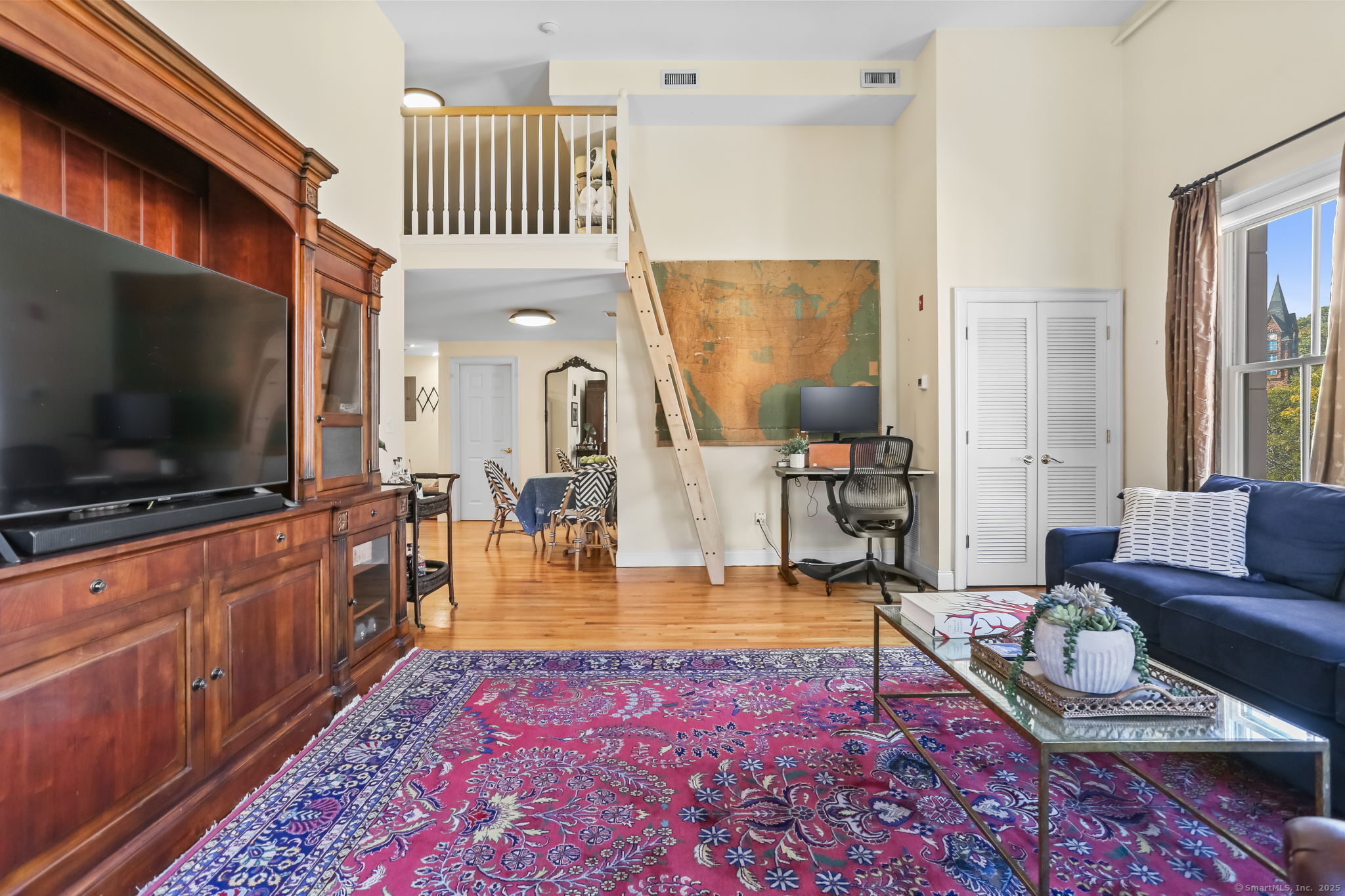 Chic, sunny, spacious corner unit is the perfect combo of vibrant urban lifestyle and a comfortable home boasting soaring 13-foot ceilings, hardwood floors, and an abundance of natural light pouring in through oversized windows. Located on the top floor in a secure, 12-unit elevator building on a charming, quiet street in the heart of bustling SoNo. The open-concept living and dining room floor plan is ideal for both entertaining and everyday living, complete with a home office alcove. A cook's kitchen features gas range, granite countertops, ample cabinetry, stainless steel appliances. Gorgeous bedroom with dramatic 13 ft. high ceilings, large windows, closets galore. A large 289 sq.ft. Loft area levels up this home's functionality for hosting guests or storing belongings. Practical design touches include a bright, updated bathroom with lighted mirror, entry area with bench/shoe storage, in-unit washer/dryer, central A/C and energy-efficient gas heating. Well-maintained, safe, pet-friendly building with garden, picnic tables, assigned indoor garage parking, guest parking, lower level laundry room. Just steps to world-class dining, S. Norwalk Metro North train station, the SoNo Collection Mall, Maritime Aquarium, Oyster Shell Park, art galleries and the harbor, this location offers the perfect balance of urban energy and relaxed coastal living. It's more than a place to live - it's a lifestyle!