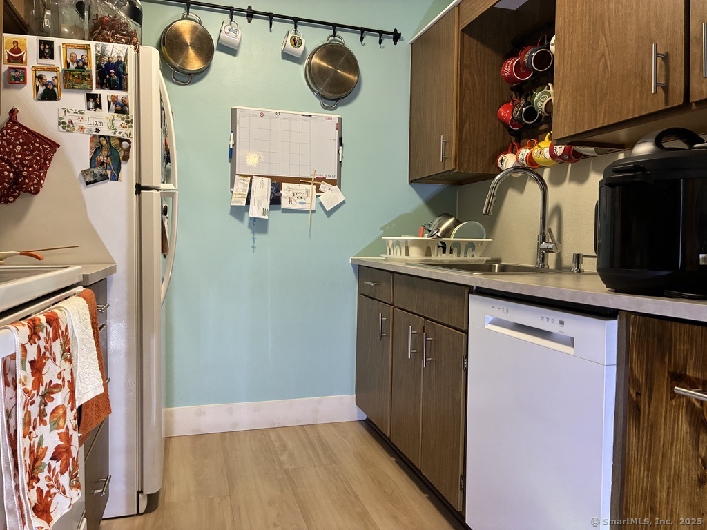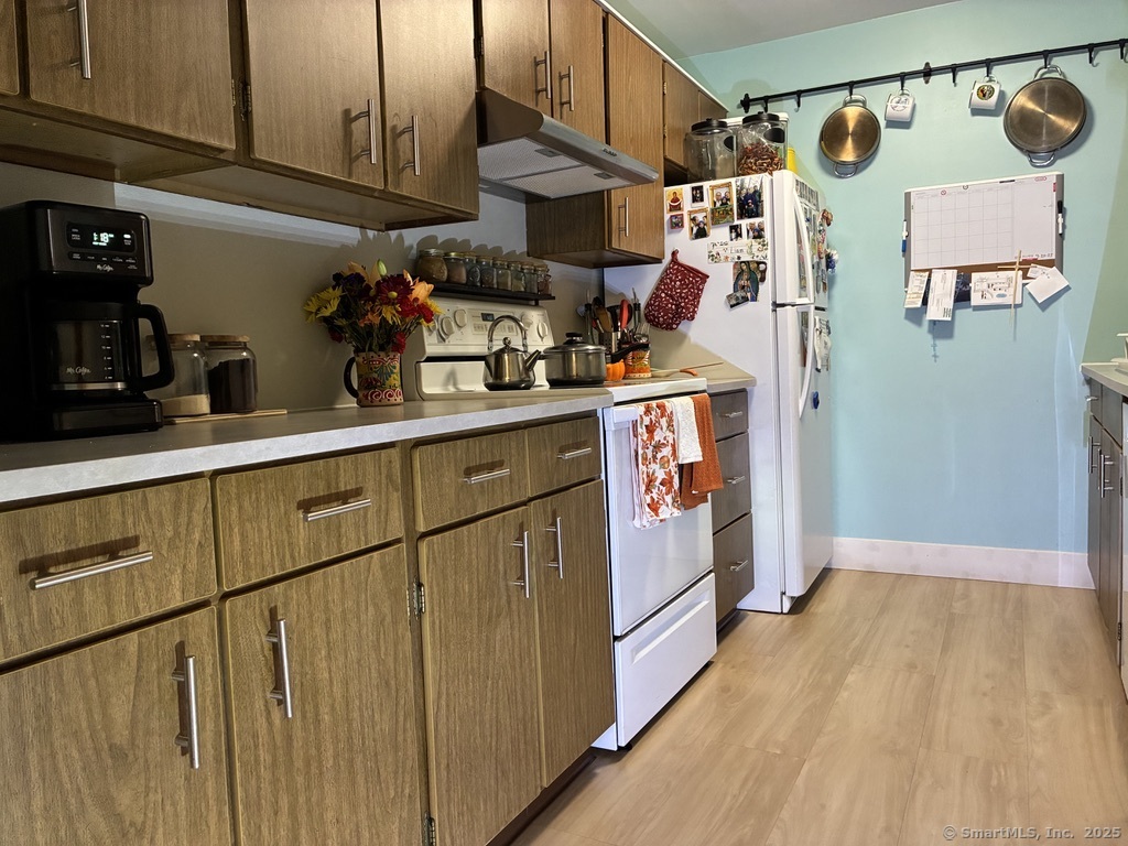 Opportunities like this don't come around often-don't wait, you'll be glad you didn't! California Condominium is a welcoming community that truly suits all needs. This updated 1st floor unit offers one of the best views in the complex, overlooking the peaceful side lawn, which you can enjoy right from your private balcony through the sliding glass doors off the spacious living/dining room. Inside, you'll love the tastefully updated kitchen featuring new flooring, modern finishes, and ample counter space, cabinets, and a large pantry. The updated bathroom is just steps from the generous-sized bedroom, complete with a large closet. Heat and hot water are included in the monthly common charges for easy, worry-free living. The lower level of the building provides secure storage, coin-operated laundry facilities, and a large recreation room for gatherings and meetings, offering great extended space for your enjoyment. Additional highlights include ample resident and guest parking and a wall-unit air conditioner. This is an owner-occupied community, and pet restrictions do apply. Location is key-just a short distance to Metro North and minutes to I-95. A quick trip brings you to Paradise Green with its restaurants, shops, and seasonal events. Outdoor enthusiasts will love Roosevelt Forest, just a few miles away in the north end of Stratford, while beach lovers can enjoy several options only a short drive to the south in Lordship.