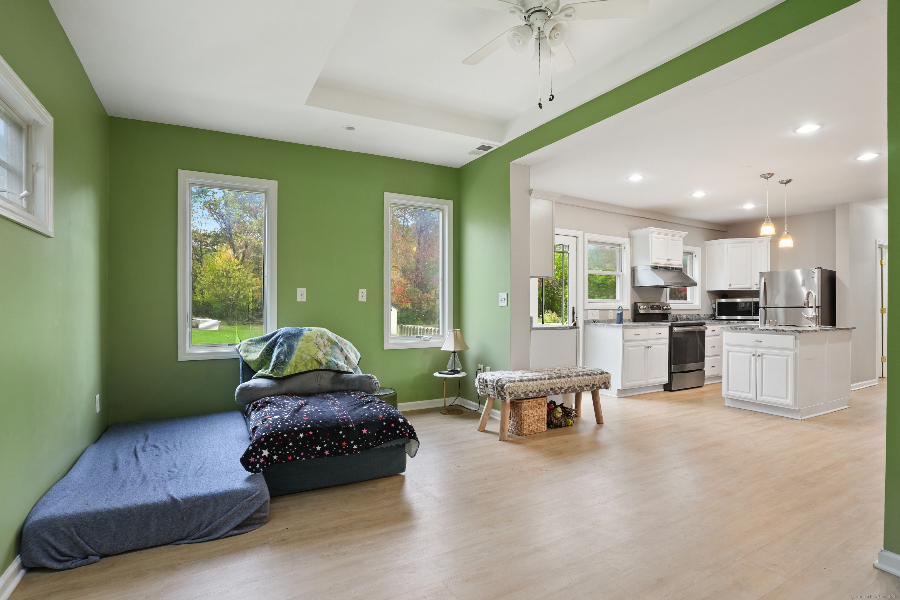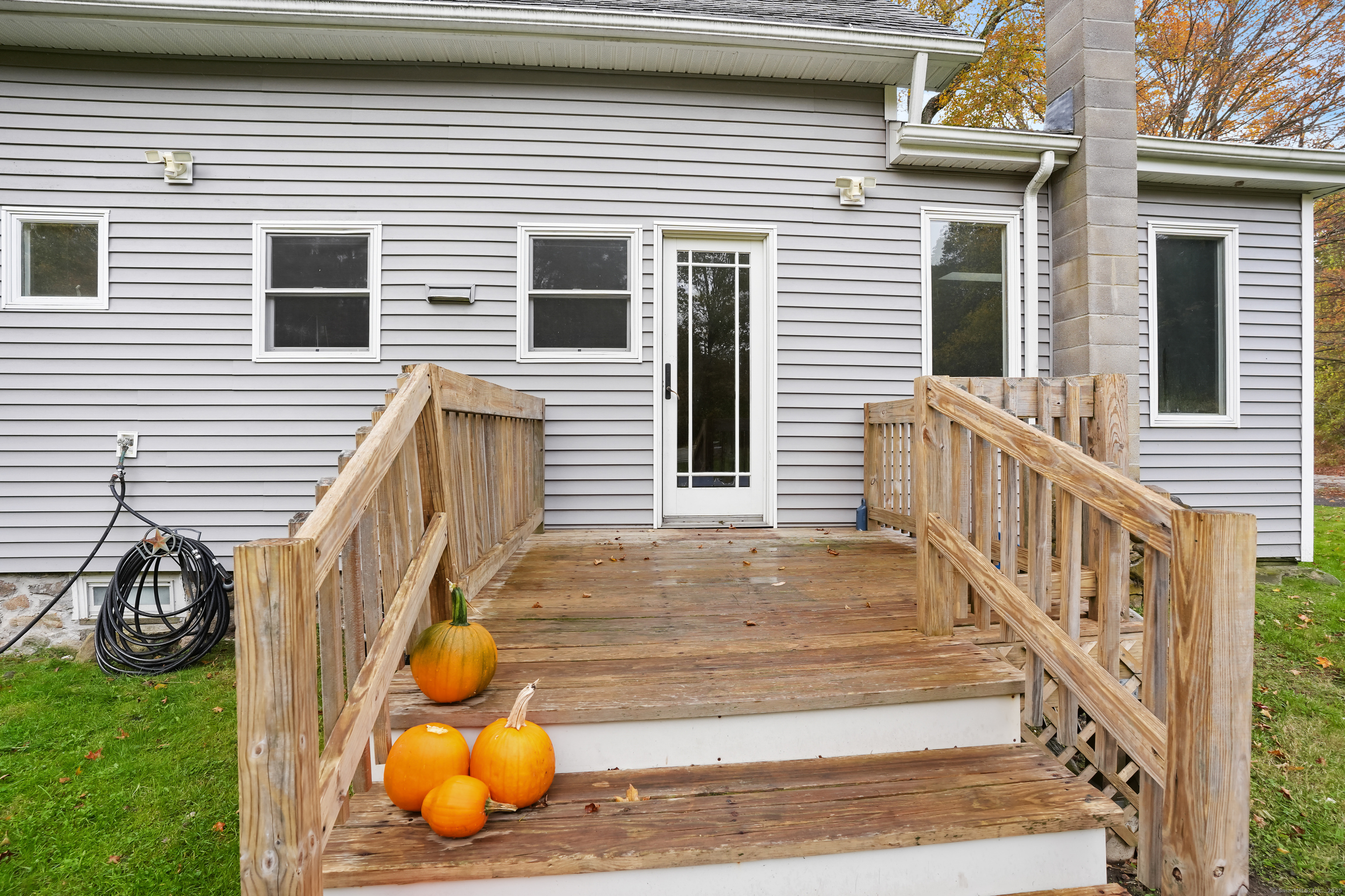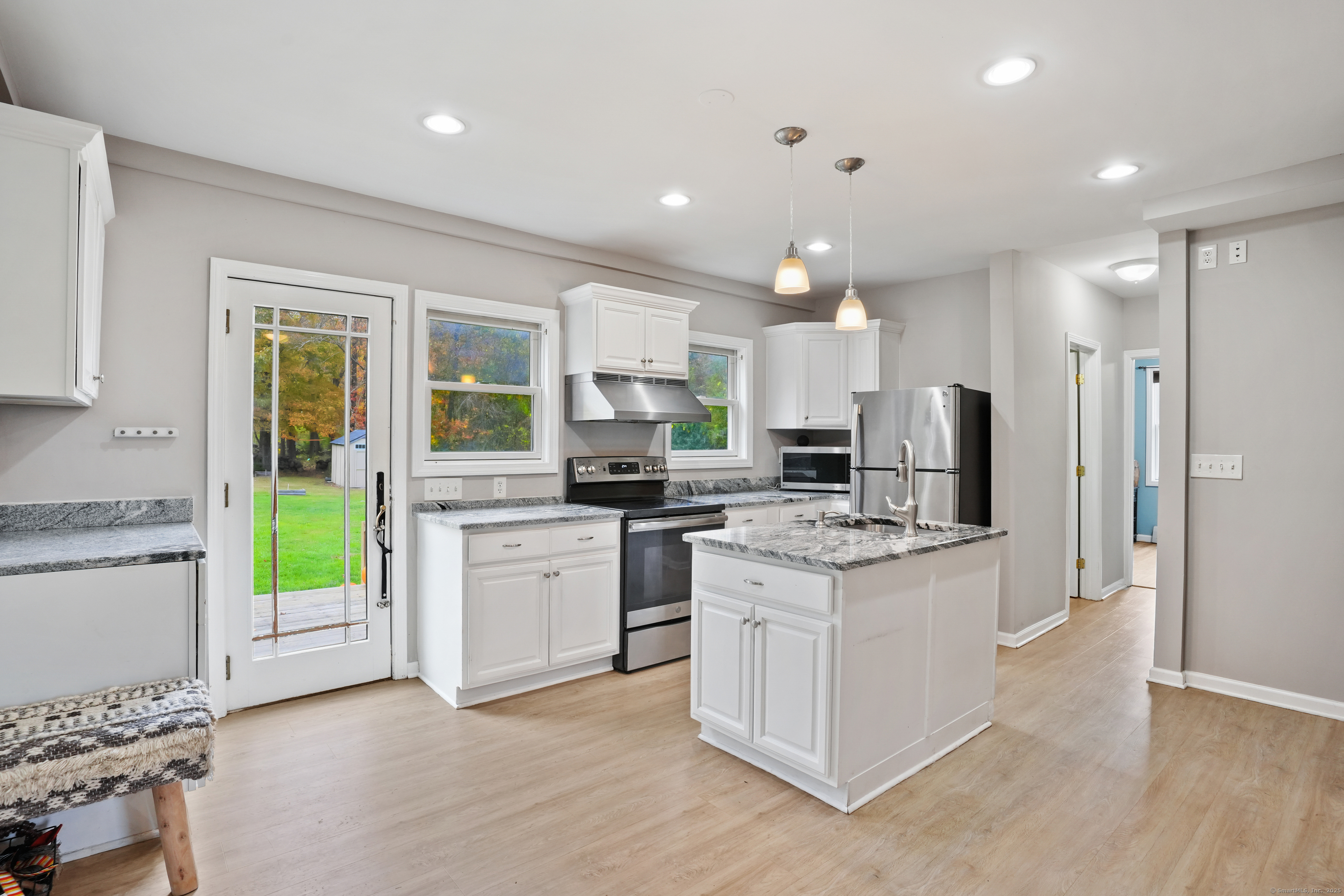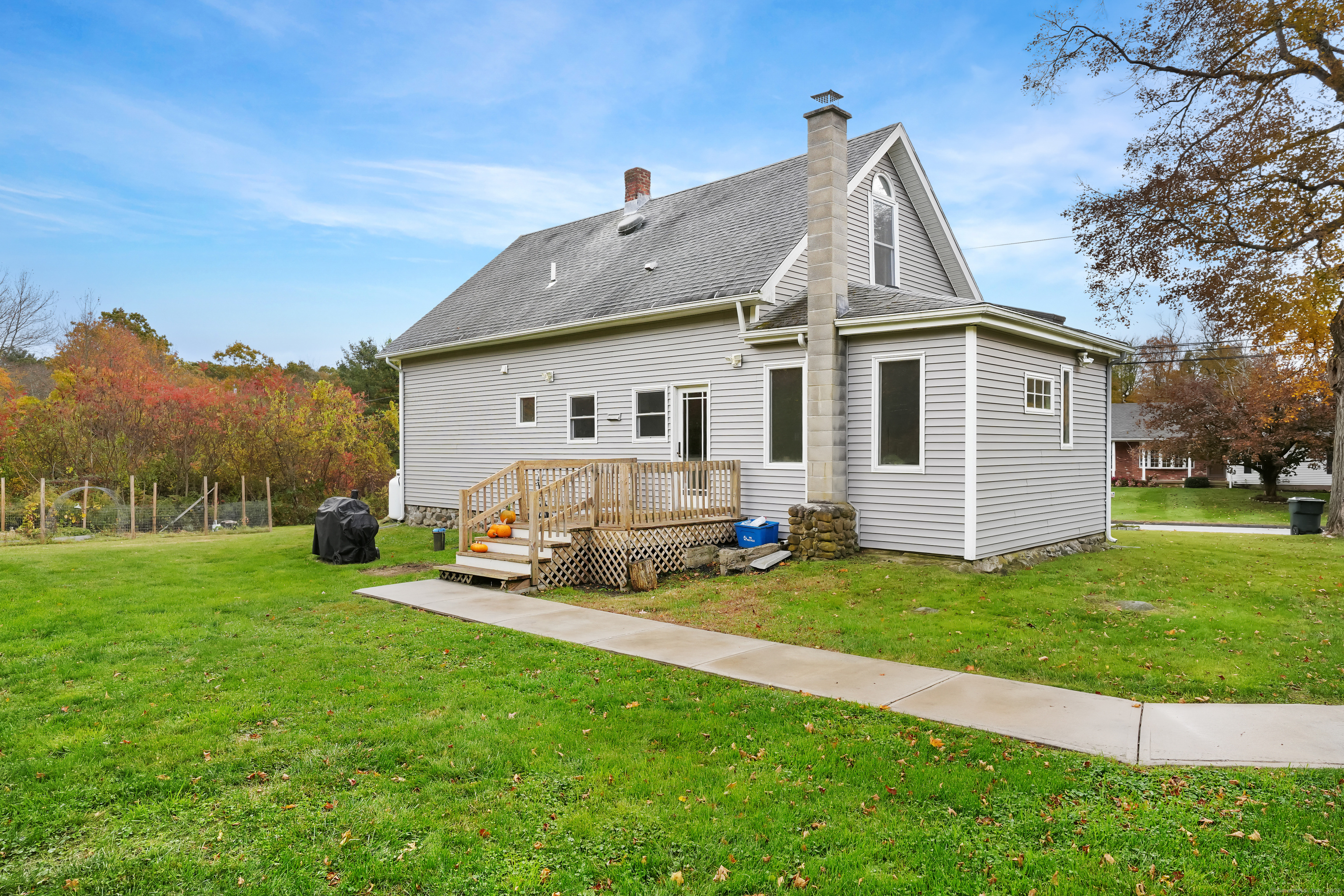 Charming Cape on 2.85 Acres - Perfect for Homesteading! Don't miss this beautifully remodeled 3-bedroom, 2-bathroom Cape set on a generous 2.85-acre lot in peaceful Prospect - an ideal setup for homesteading or simply enjoying space, privacy & a rare opportunity to enjoy fresh fruit through the seasons-all just steps from your door. Offering 1,631 sq ft of updated living space, this home was tastefully remodeled in June 2018 with numerous upgrades throughout. Exterior improvements include new vinyl siding, fresh landscaping with mulch beds, concrete walkways to both front and back doors, and a newer oil-fired boiler. Inside, the kitchen shines with white cabinetry, granite countertops, crown molding, GE stainless steel appliances, and luxury vinyl plank flooring. The versatile floor plan features one bedroom and a full bath on the main level, along with a 12' x 14' bonus room with washer/dryer hookups - perfect for a home office, den, nursery, or study. Upstairs, you'll find two additional bedrooms and a full bathroom. The spacious primary bedroom boasts vaulted ceilings for an open, airy feel. Whether you're dreaming of farm-to-table living, gardening, raising animals, or simply enjoying nature's bounty right in your backyard, this property offers the space and flexibility to make it your own. Don't miss the lush grapevines, and thriving blackberry and raspberry bushes line the edge of the woods, creating a private, picturesque border.