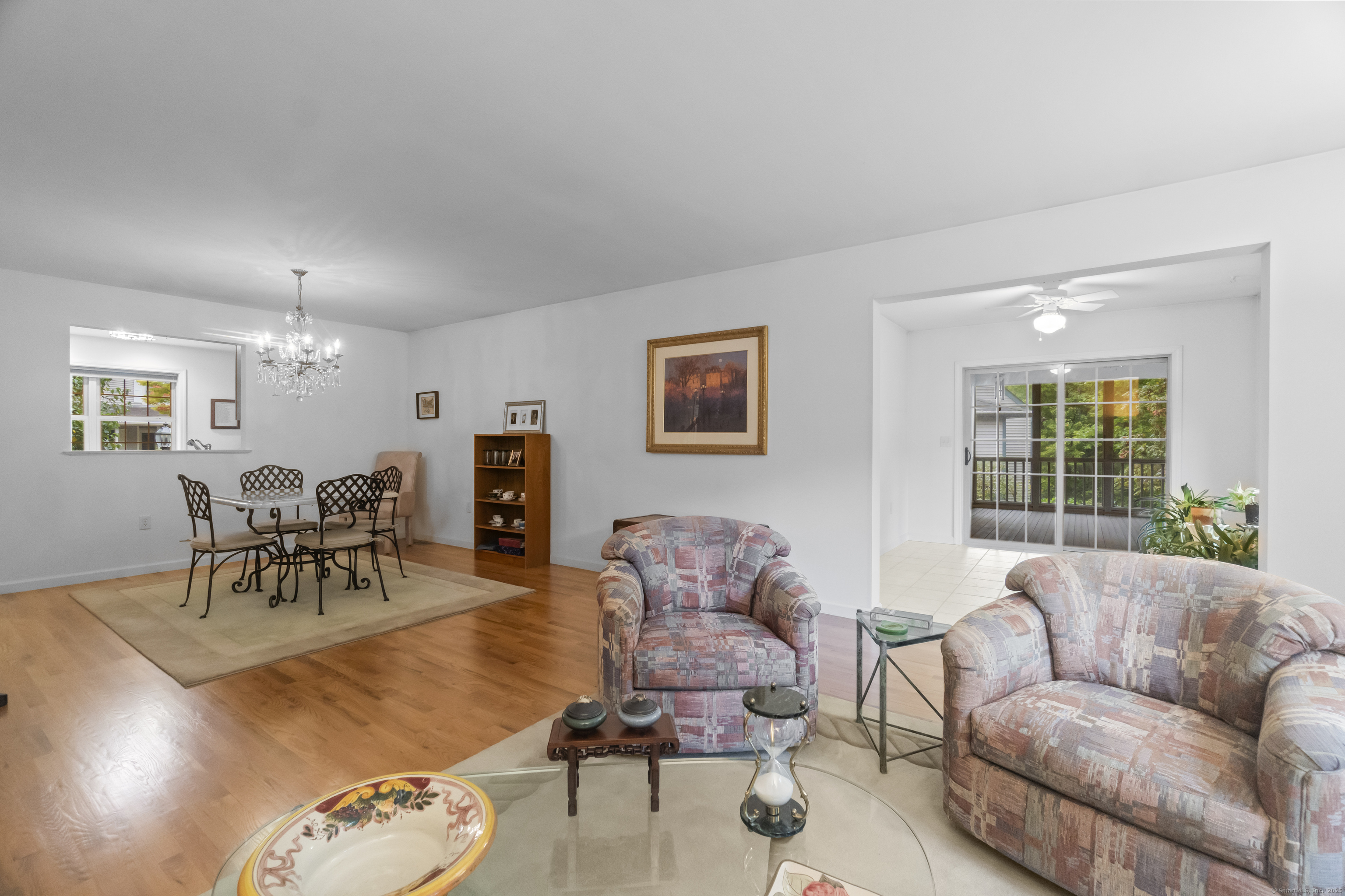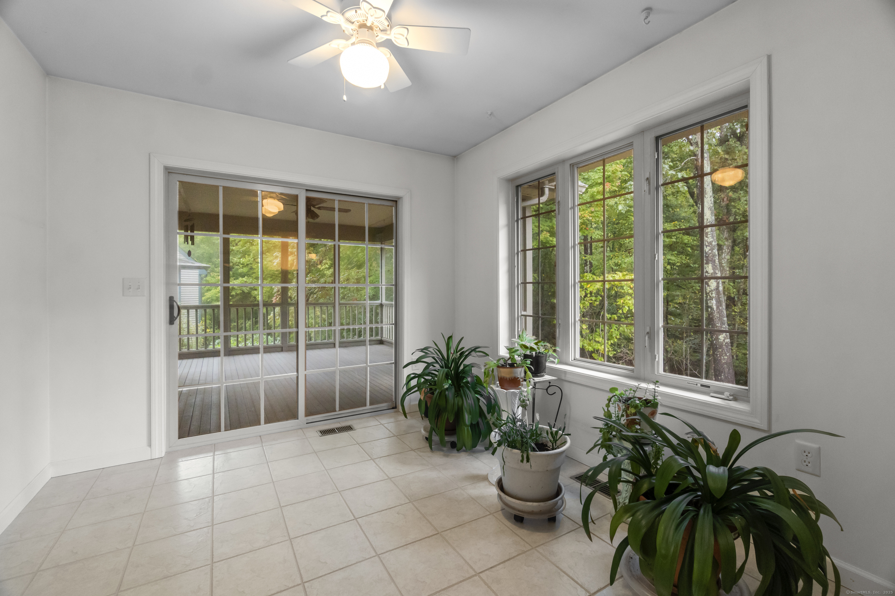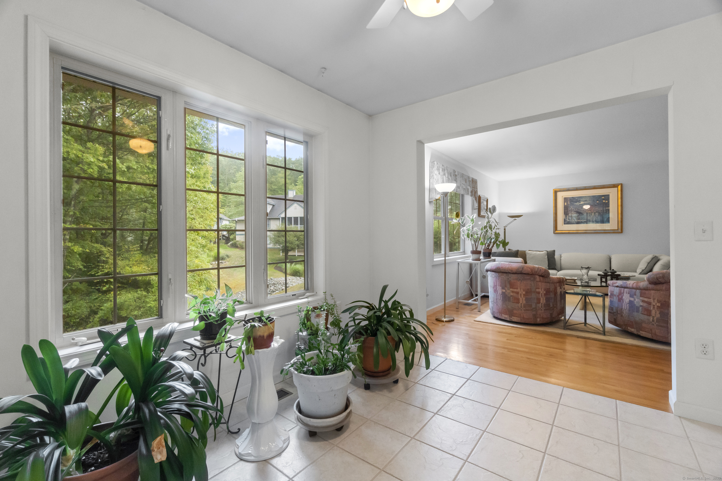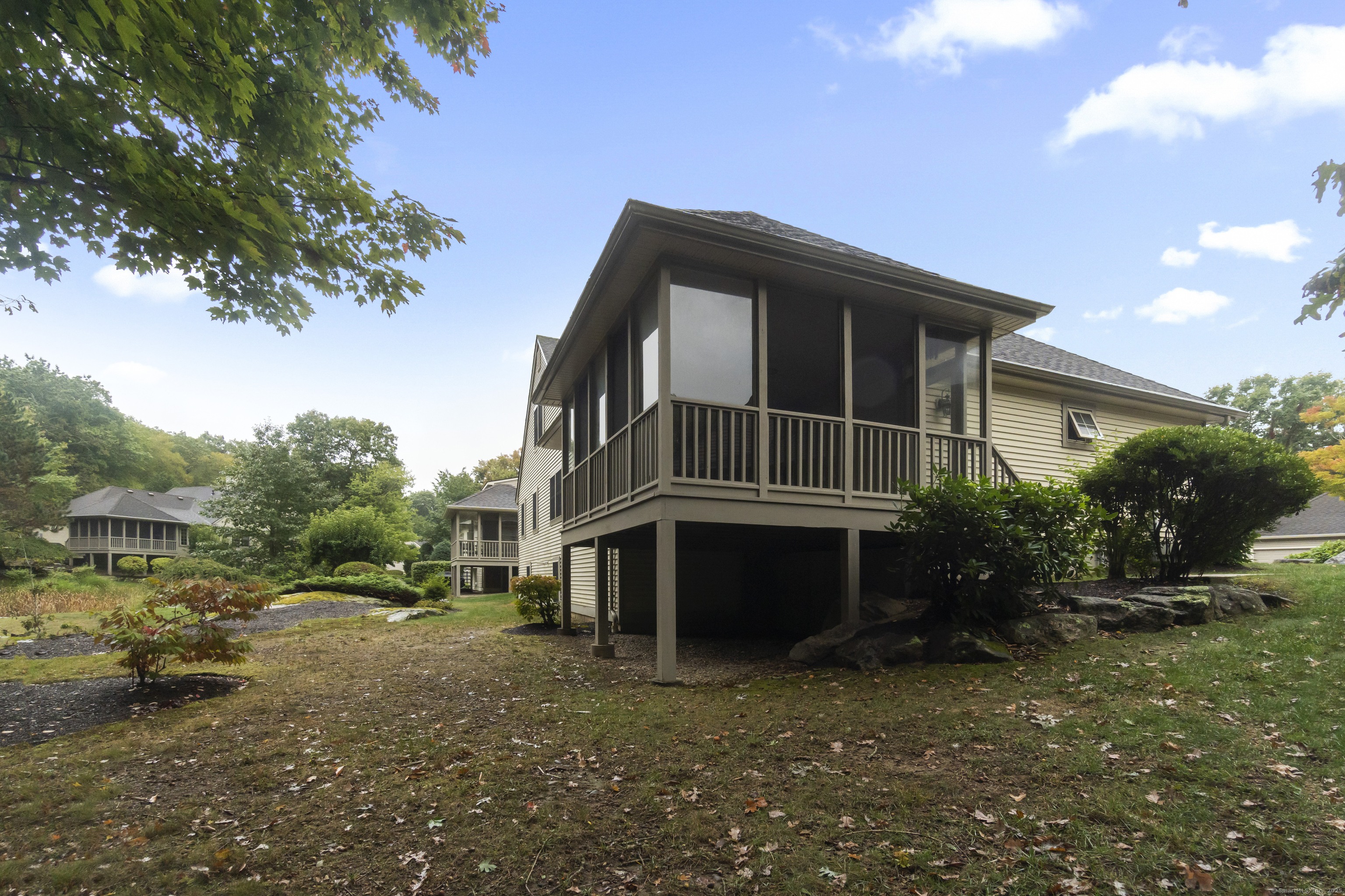 Prime location within Chapman Woods, this unit features the Marlborough plan, one of the largest, with the sunroom and enclosed screen porch. Tucked back off the quiet cul-de-sac, this stand alone unit offers a two car garage and most amenities of home living with less maintenance. There is a propane pad in place for your outside grill! Original owner has pristinely maintained the unit, most recently painted 2nd floor and replaced carpet for the new owner. Floor plan is provided sharing the versatility of rooms and potential use. One can enjoy complete one floor living or elect to use the 2nd floor bedrooms in an alternative primary capacity. Current HOA benefits can't be beat with heating system service and replacement, water heater and A/C maintenance and replacement, on top of the standard exterior/landscape benefits. Conveniently located near 95/395, shopping and downtown Niantic, this home offers immediate occupancy.