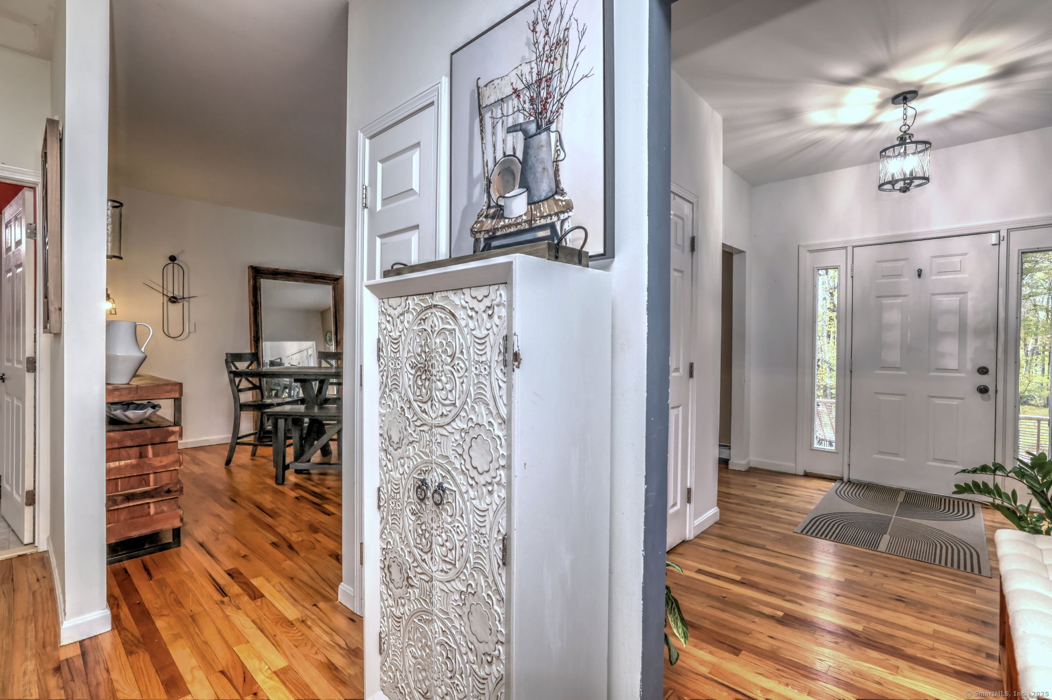 Beautiful Colonial-style home set back on 7.5 picturesque, private acres. The main level features a bright, eat-in kitchen with French doors, custom quartz countertops, stainless steel appliances, a large walk-in pantry, and a mobile breakfast island. The inviting family room (currently used as a bedroom) features a cozy wood-burning fireplace, separated by a charming barn door. It opens to an updated deck, perfect for outdoor entertaining. A formal dining room, living room, and laundry room complete the main level. Upstairs, you'll find a spacious primary suite with a full bath, three additional bedrooms, and a second full hall bath. A third full bath is partially finished, awaiting your final touches to make it your own. The lower level is currently utilized as an office, playroom, and music room, offering great flexibility to meet your needs. Additional updates include a new water heater, a new boiler, and a new water softener, all installed in 2024. A New Well pump and wiring were installed in 2025. This lovely home is nestled in a serene country setting, yet conveniently located just minutes from restaurants, shopping, golf, movie theaters, the library, dog park, Southford Falls State Park, and much more. This home offers the perfect balance of privacy and accessibility."Portions of the property are zoned for horses or agricultural use, but are subject to local zoning regulations and restrictions."