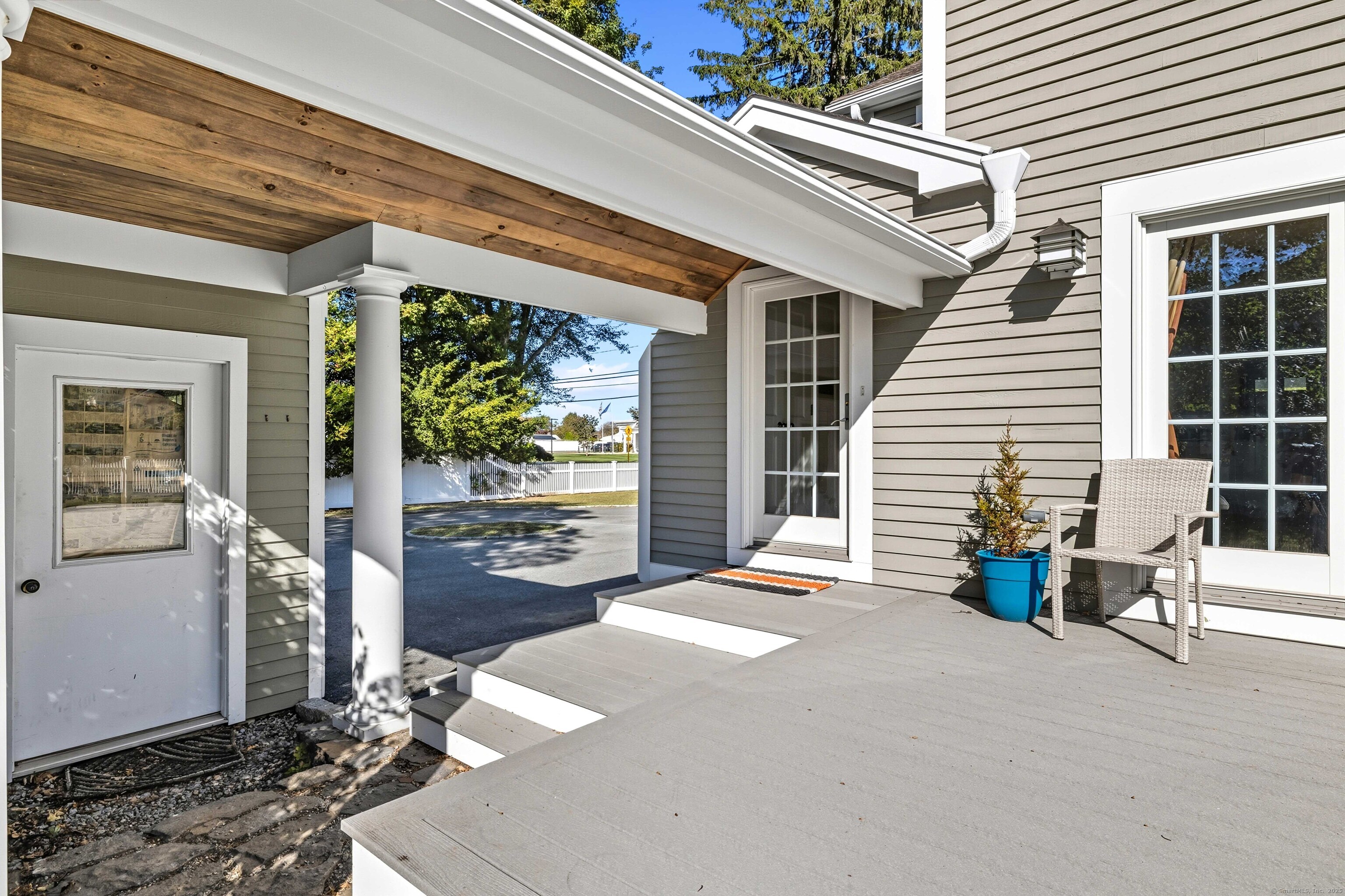 Welcome to this charming home which features an open floor plan and hardwood floors on the main level with an abundance of natural light. The kitchen features stainless steel appliances, granite countertops, island and a seamless flow to the spacious living area which includes living room and family room with a double sided fireplace, a dining room with french doors to the deck perfect for entertaining, a cozy sunroom with front deck access. The perfect spot for morning coffee or relaxing evenings. a mudroom with private entrance. Upstairs there is a bright and inviting primary bedroom suite with walk-in closet, full bathroom/double sinks, cathedral ceilings along with 2 additional spacious bedrooms, full bathroom and laundry area. Outdoor living shines with a front wrap-around trex deck and deck in the back perfect for summer barbecues, fenced in yard for privacy, detached garage and shed for additional storage. Enjoy being a short walk to Main Street to enjoy restaurants, shopping and shows at The Katharine Hepburn Cultural Arts Center, close to town beaches and easy access to highways, train and shoreline amenities, this home offers a lifestyle of small town charm and coastal convenience.