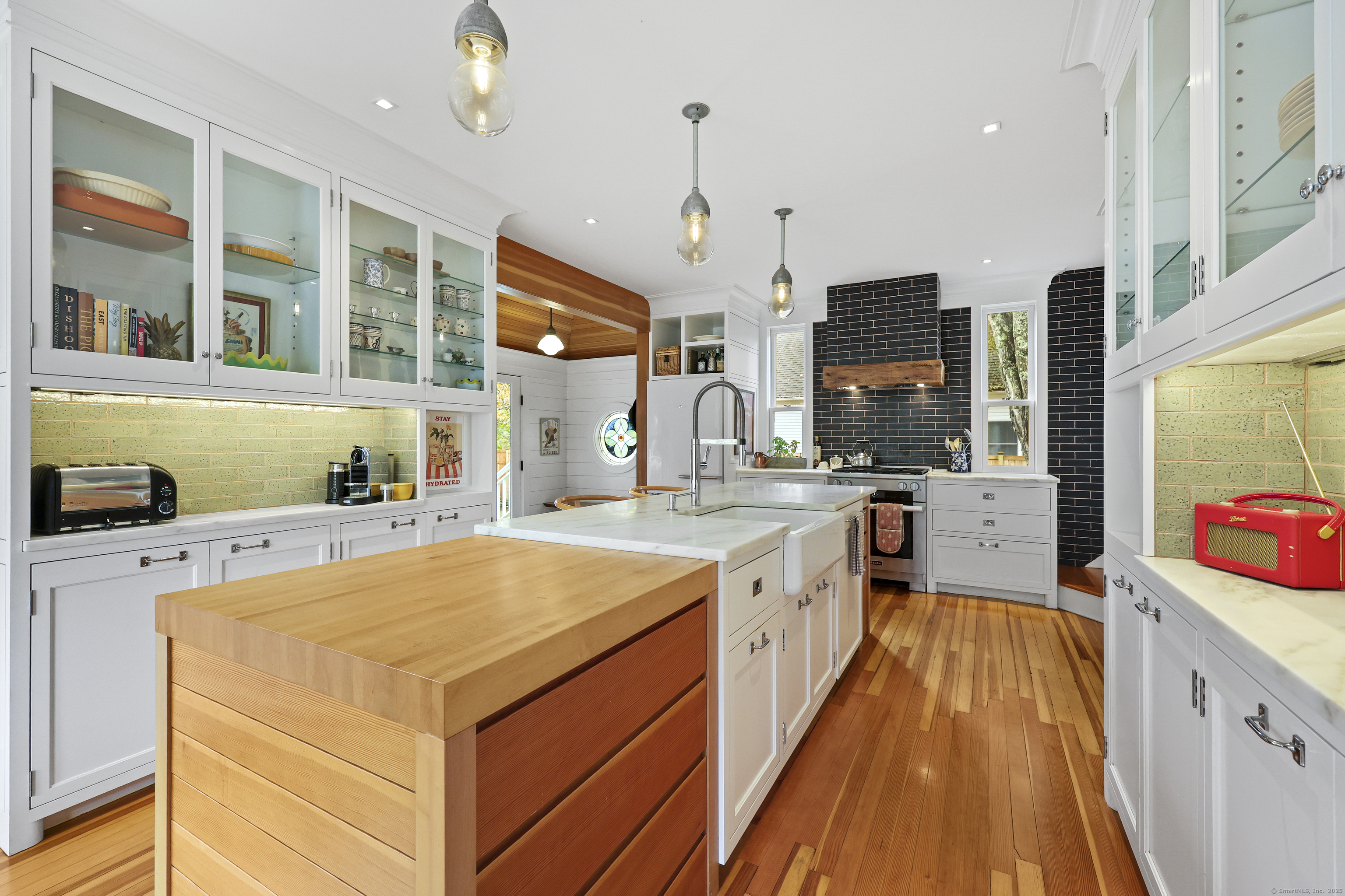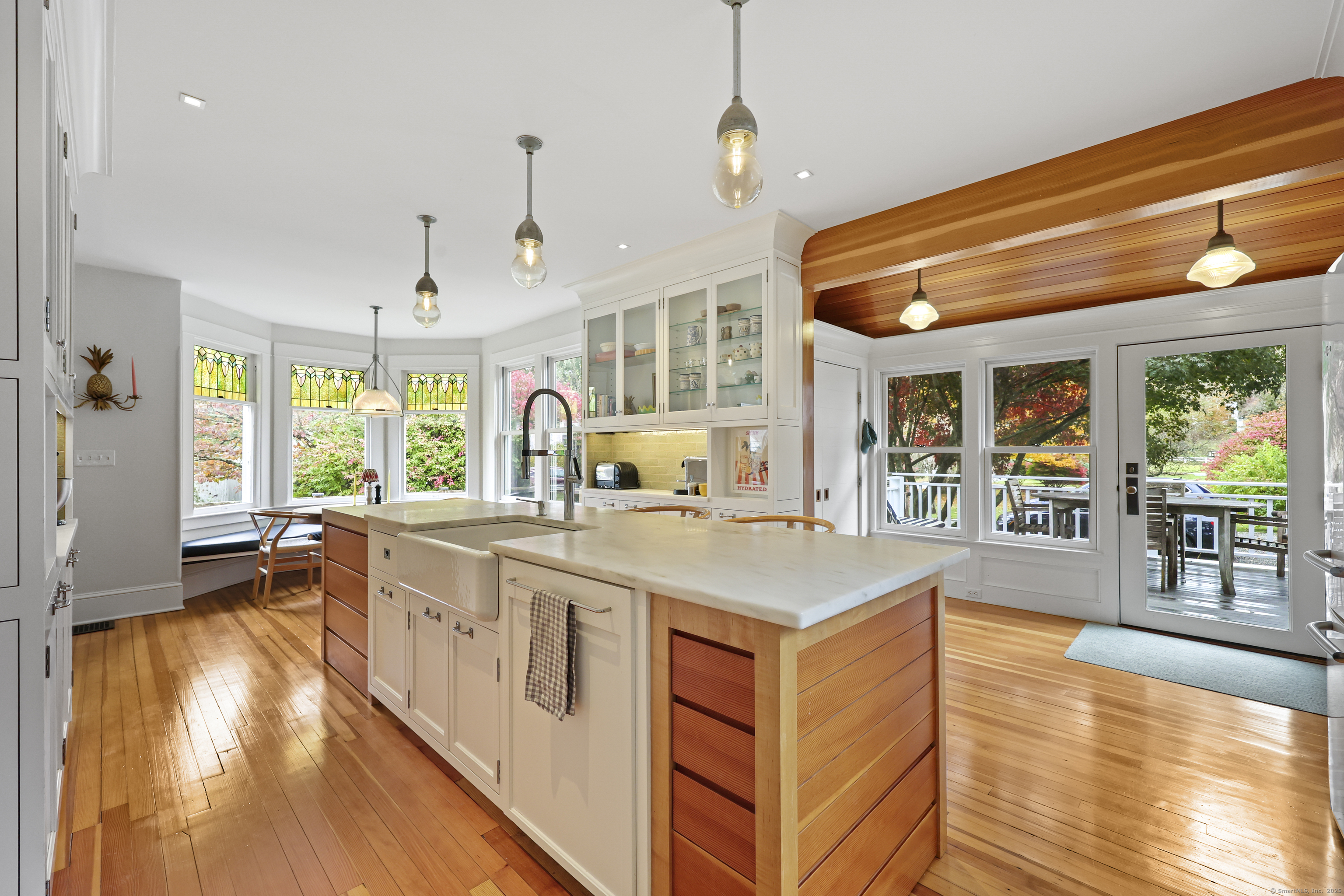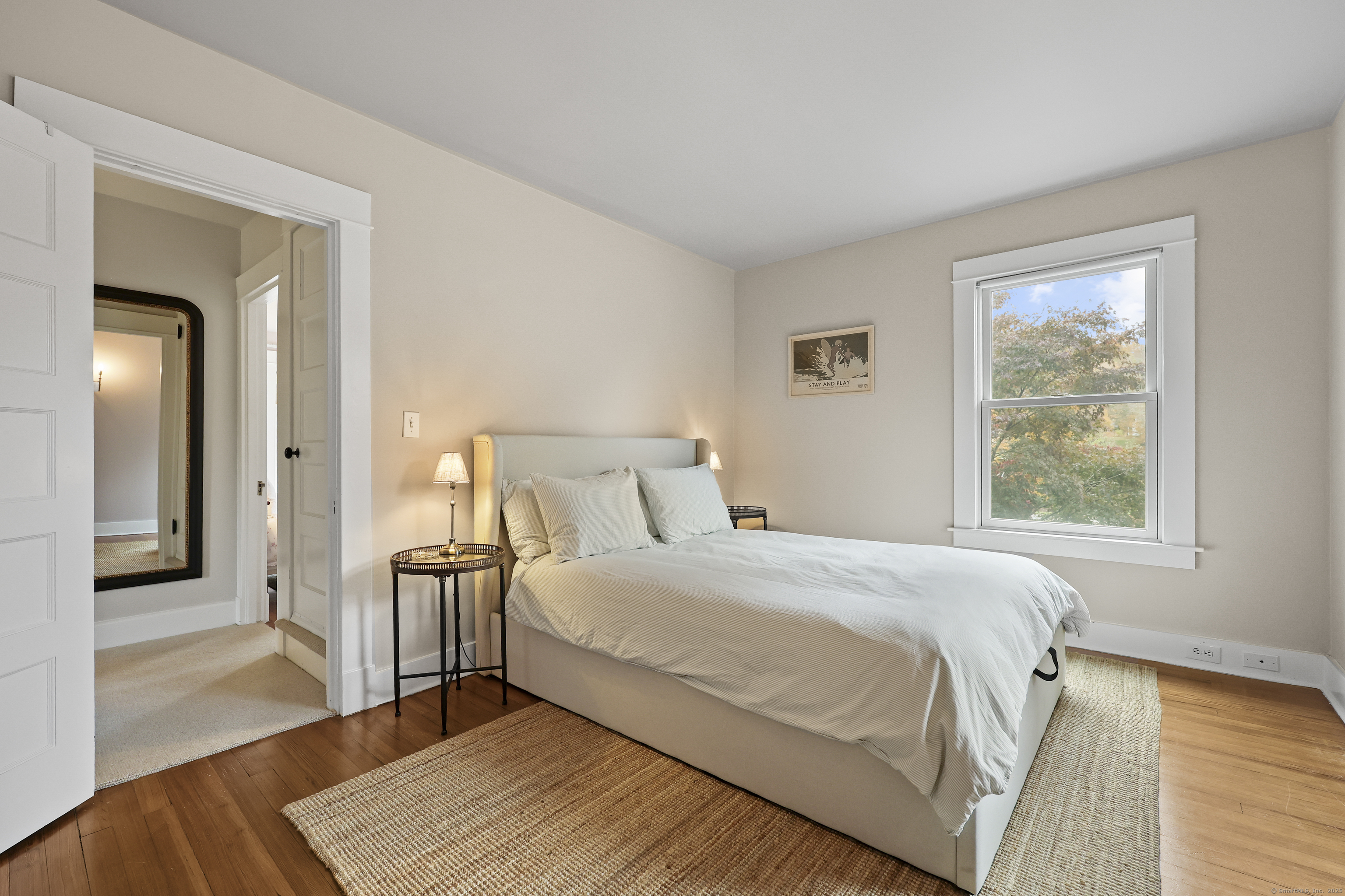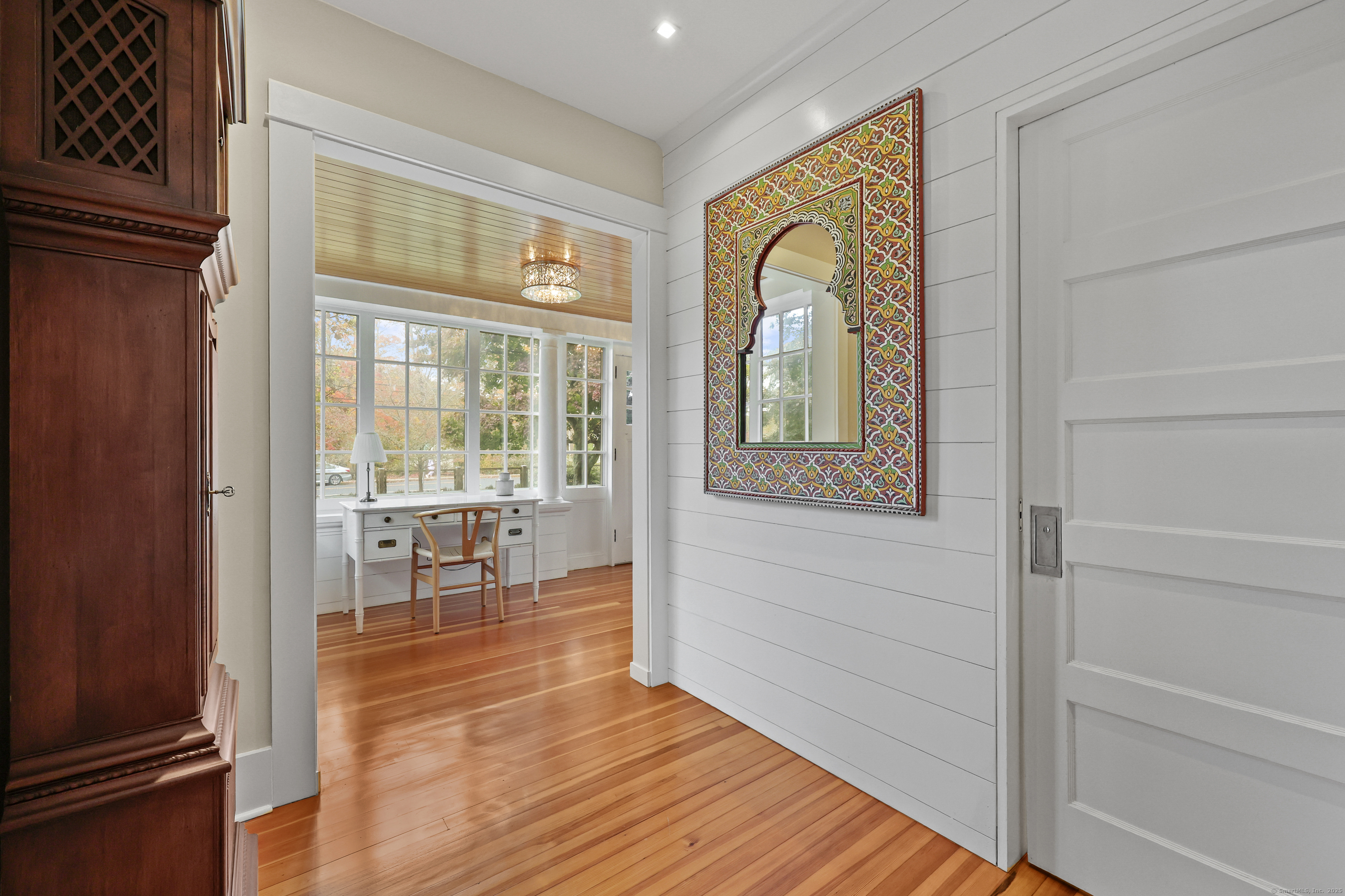 Set in the heart of Centerbrook Village, this 1917 Colonial captures the timeless charm of Essex with all the right updates in place. Thoughtfully redesigned by Nautilus Architects, the kitchen blends classic craftsmanship with modern function - complemented by refinished hardwood floors, updated systems, and a new matched central air system with upgraded condenser and coil. Upstairs, the reimagined primary suite now includes a full ensuite bath and custom closet configuration, creating a true retreat. Recent 2024 improvements include a new roof, renovated bath, AC system replacement, fresh paint, and upgraded trim throughout. Outside, the half-acre lot offers space to unwind with a fenced yard, new patio, and detached barn-style garage - complete with a finished room above that makes an ideal office or studio. The seller has obtained quotes and confirmed with the town that adding a bathroom in this space is feasible (not yet approved), offering flexible potential for the next owner. Enjoy views of Falls River Pond directly across the street, where residents can launch a canoe or kayak and take in the changing seasons. Conveniently located near Essex Village, local shops, and restaurants this private setting and thoughtful updates delivers the perfect blend of heritage, comfort, and everyday ease.