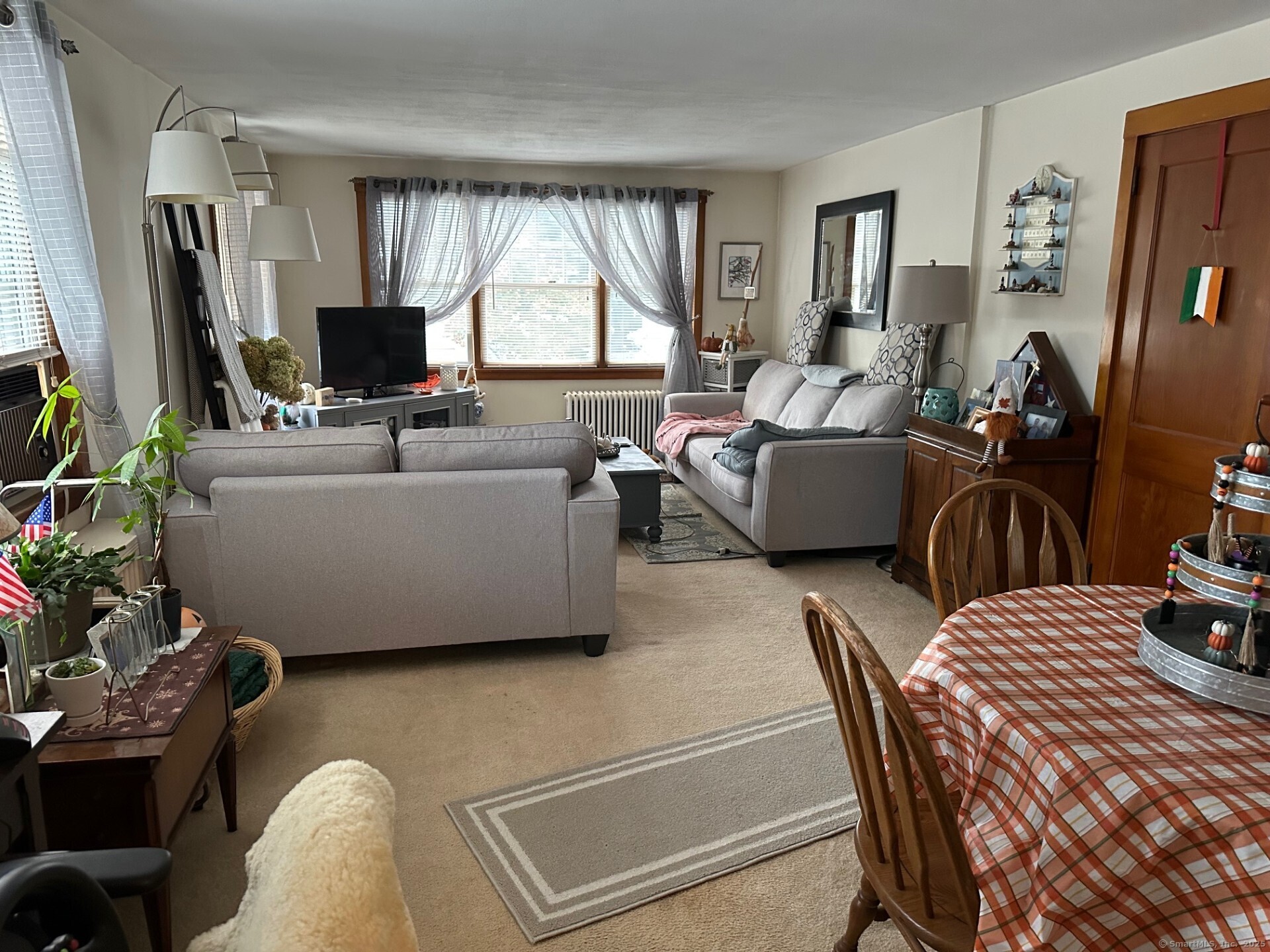 This 2 family offers a brand new roof that was put on last week (10/1/25)and a brand new driveway that was done last year 20024, with two good size apartments, both with front porches, walkup attic and full basement. 1 oil furnace for both floors, gas is available at the house and you can easily convert the 2nd floor to gas. It also a 2 car garage with ample off street parking and nice yard for outdoor enjoyment.