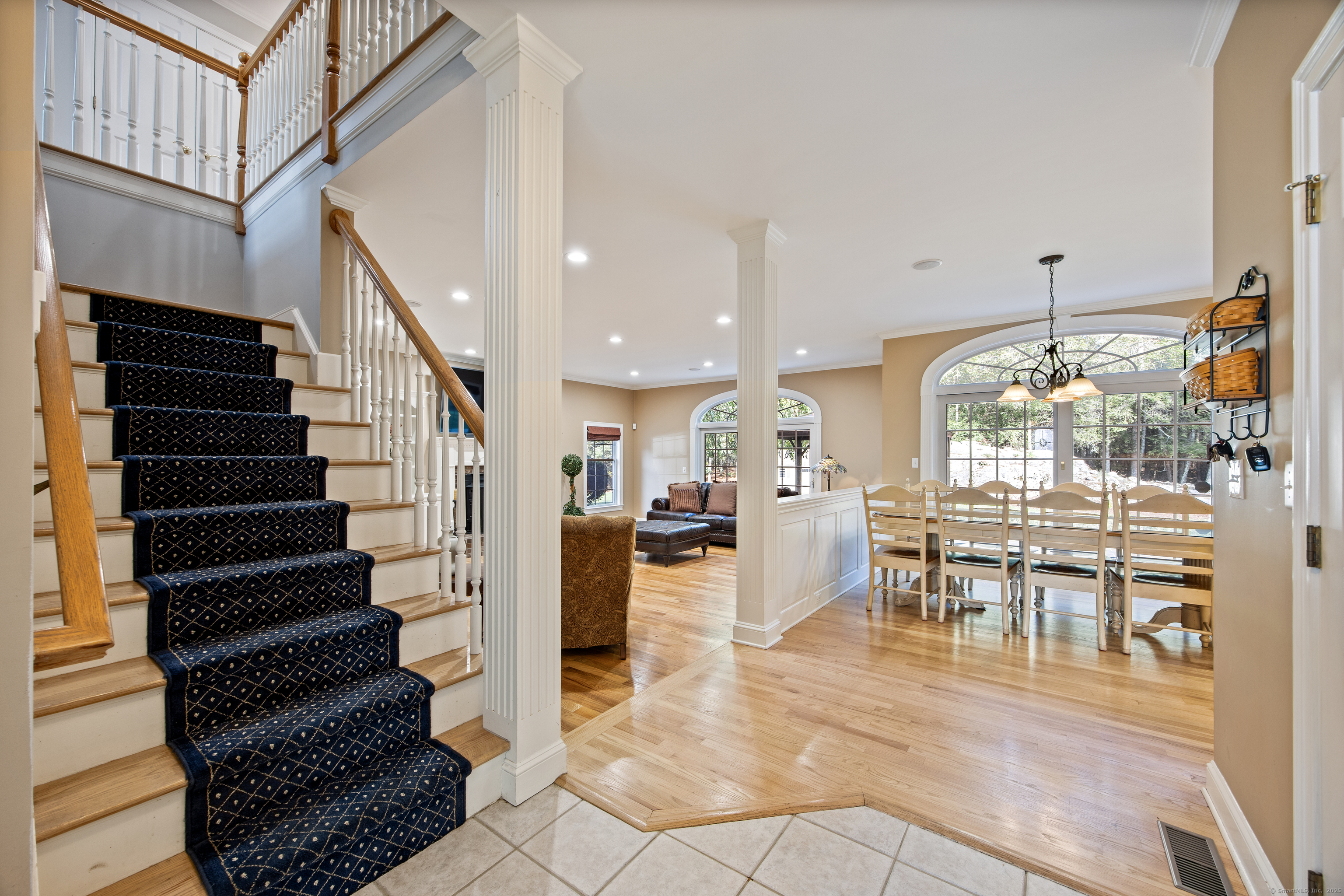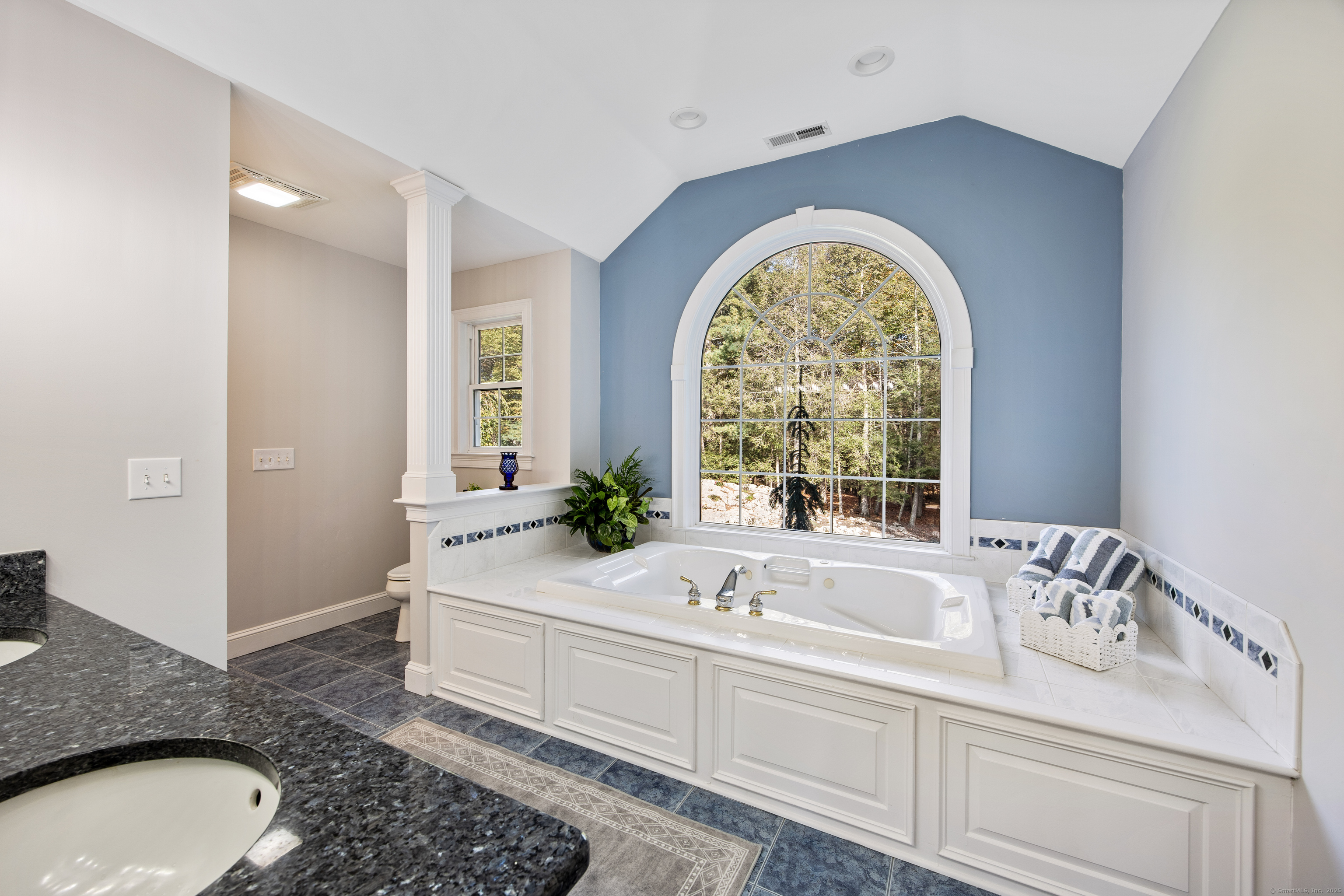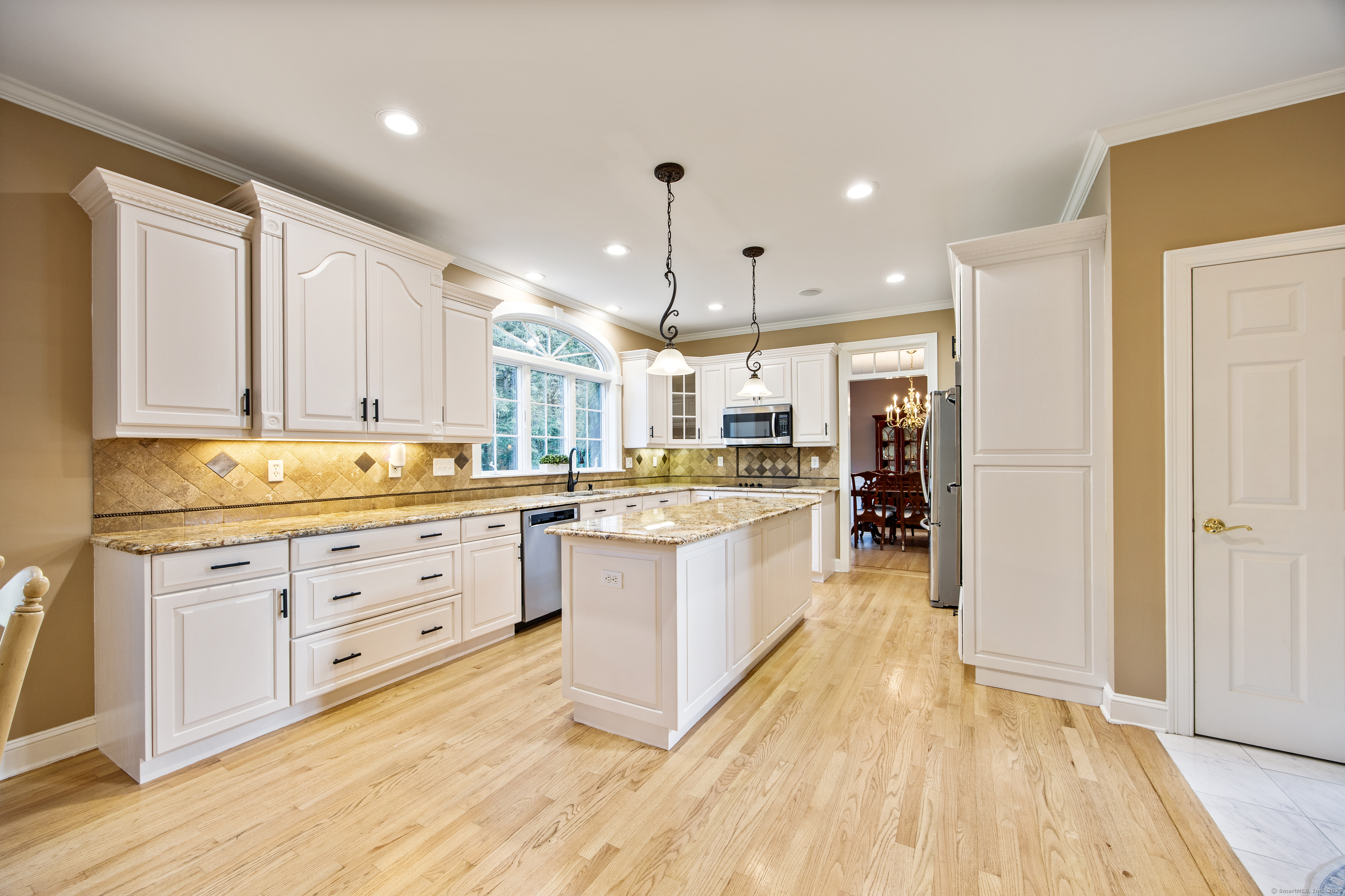 Expansive Colonial in one of Watertown's Most Sought-After Neighborhoods! Enjoy beautiful views of Smith Pond, perfectly set in a desirable subdivision. Step inside the grand two-story foyer that opens up to a formal living room and a dedicated home office. The heart of the home is a chef's dream eat-in kitchen-featuring granite countertops, stainless steel appliances, a double oven, and a seamless flow into the dining room. Off the kitchen, step down into the inviting family room with a cozy pellet stove. A convenient half bathroom completes the main level. Oversized sliding doors from both the kitchen and family room open to a charming brick paver patio with gazebo-perfect for relaxing and enjoying the private backyard. From the family room, stairs lead to a versatile loft area-great for a recreation room or playroom and connects to the upper level. The spacious primary suite offers a jetted tub, dual sinks, and a walk-in shower. Three additional generously sized bedrooms, a full bathroom with double vanities, and a laundry room complete the upstairs. Gleaming hardwood floors run throughout both levels. Additional highlights include a newer furnace (2020), newer roof (2012), new well pump (2024), Leaf Life Guard gutter protectors, new first floor condenser and air handler, central vac system, "holiday light" package, generator hook-up, hard-wired surround sound system on the main floor, garage and outside patio area and landscape lighting. MOVE QUICK!