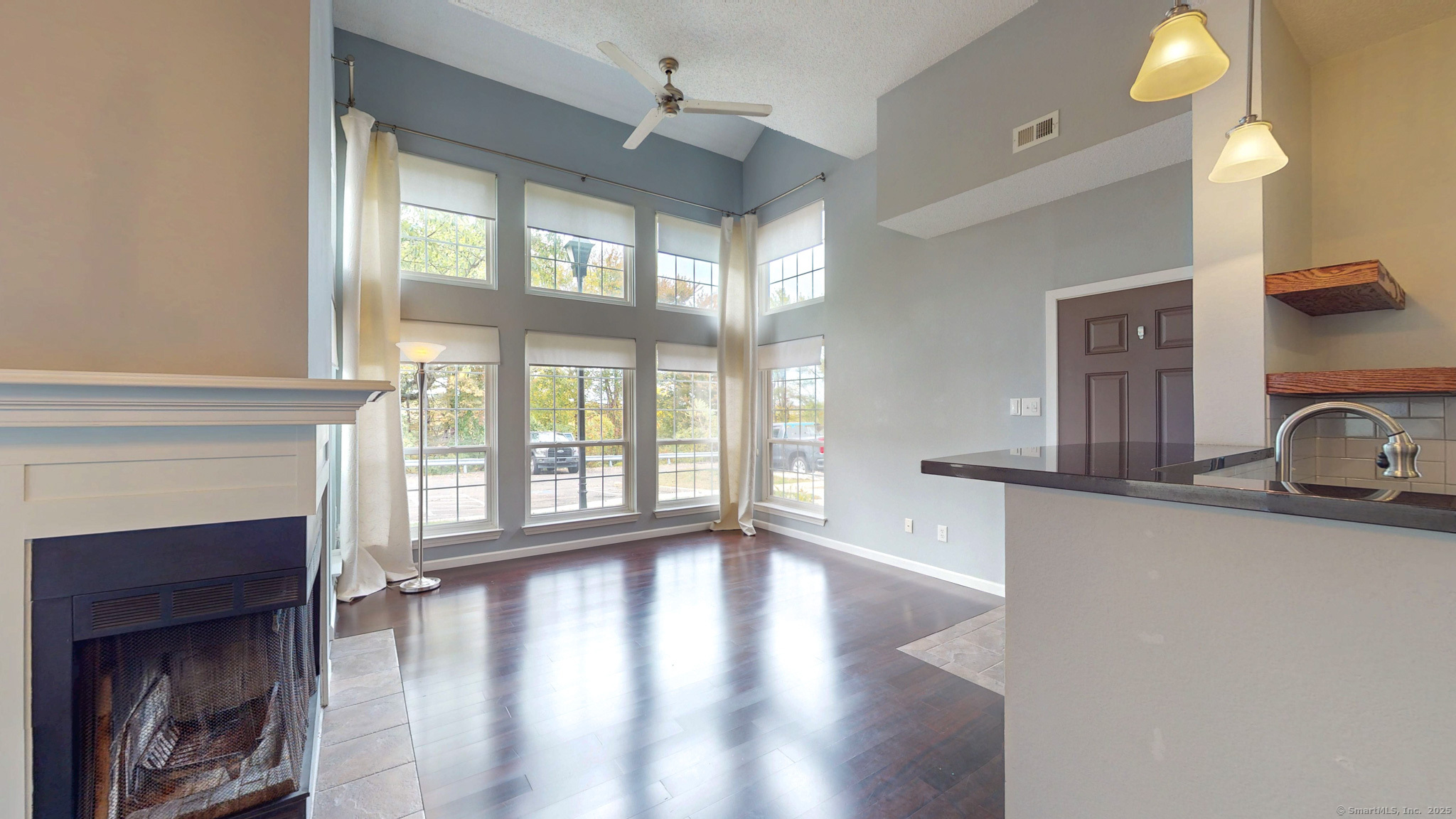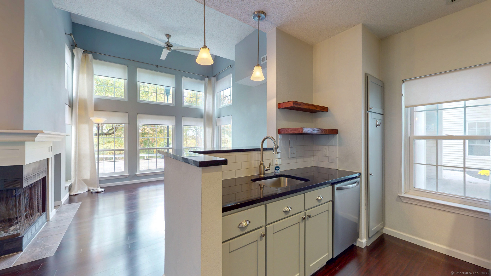 Immaculate, Move-In Ready First-Floor Condo! This beautifully remodeled first-floor unit offers true ease of living - no stairs and plenty of parking conveniently located right outside your door. Step inside to a bright, open space featuring a granite kitchen with new stainless steel appliances and large windows that fill the home with natural light. The living room with a cozy fireplace creates a welcoming atmosphere, while two spacious bedrooms each offer their own full bath, ceiling fan, and soaring 10+ foot ceilings for an airy, open feel. In-unit laundry adds everyday convenience. Enjoy a large storage unit just steps from your door and plenty of guest parking nearby. Updates include new HVAC 2023, appliances 2025 and plumbing updates. Take advantage of the amenities including an inground pool, clubhouse, fitness center, and tennis courts. This pristine, move-in ready condo truly has it all - comfort, style, and convenience!