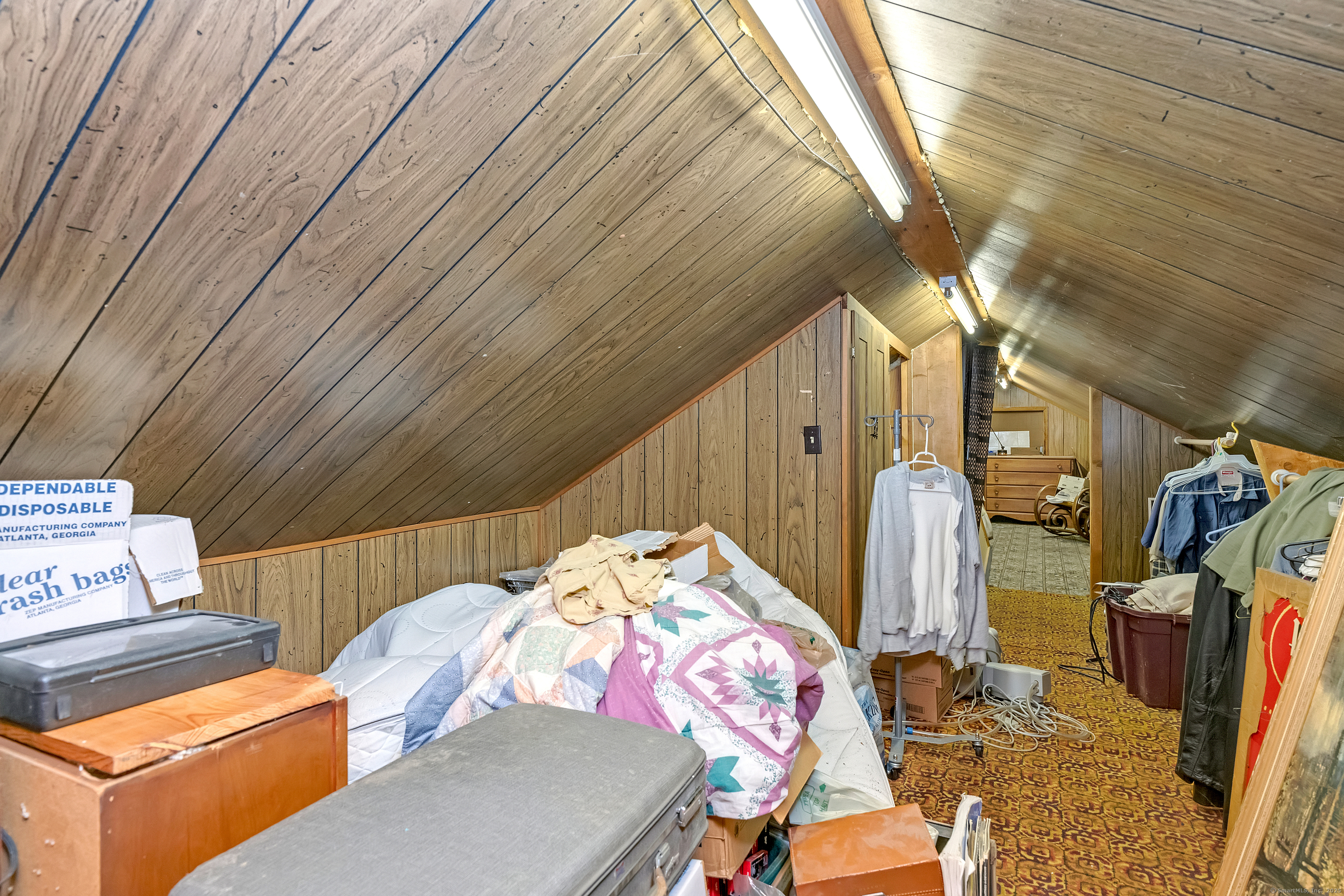 A Large Diamond in the Rough!! Wonderful Ranch home in need of TLC but offering so much space and great bones!! Located in the "middle" of a very quiet neighborhood but convenient to everywhere, the home is set on a large level yard that could be so beautiful once brought back to the way it was. There is an attached oversized one garage with storage loft above. The kitchen is a spacious with eat in dining area and once you remodel, it will be so sweet! The kitchen leads to the family room that boast a cathedral ceiling with gorgeous wood ceiling and beams, laundry closet , sliding door to patio and yard and fireplace with wood stove. There is a living room with another wood stove , slate flooring and a staircase that leads you to additional loft living space. There is a large primary bedroom and second spacious bedroom plus full bath on the first floor . Furnace and windows are updated. This home is has so much potential to be your dream home!
