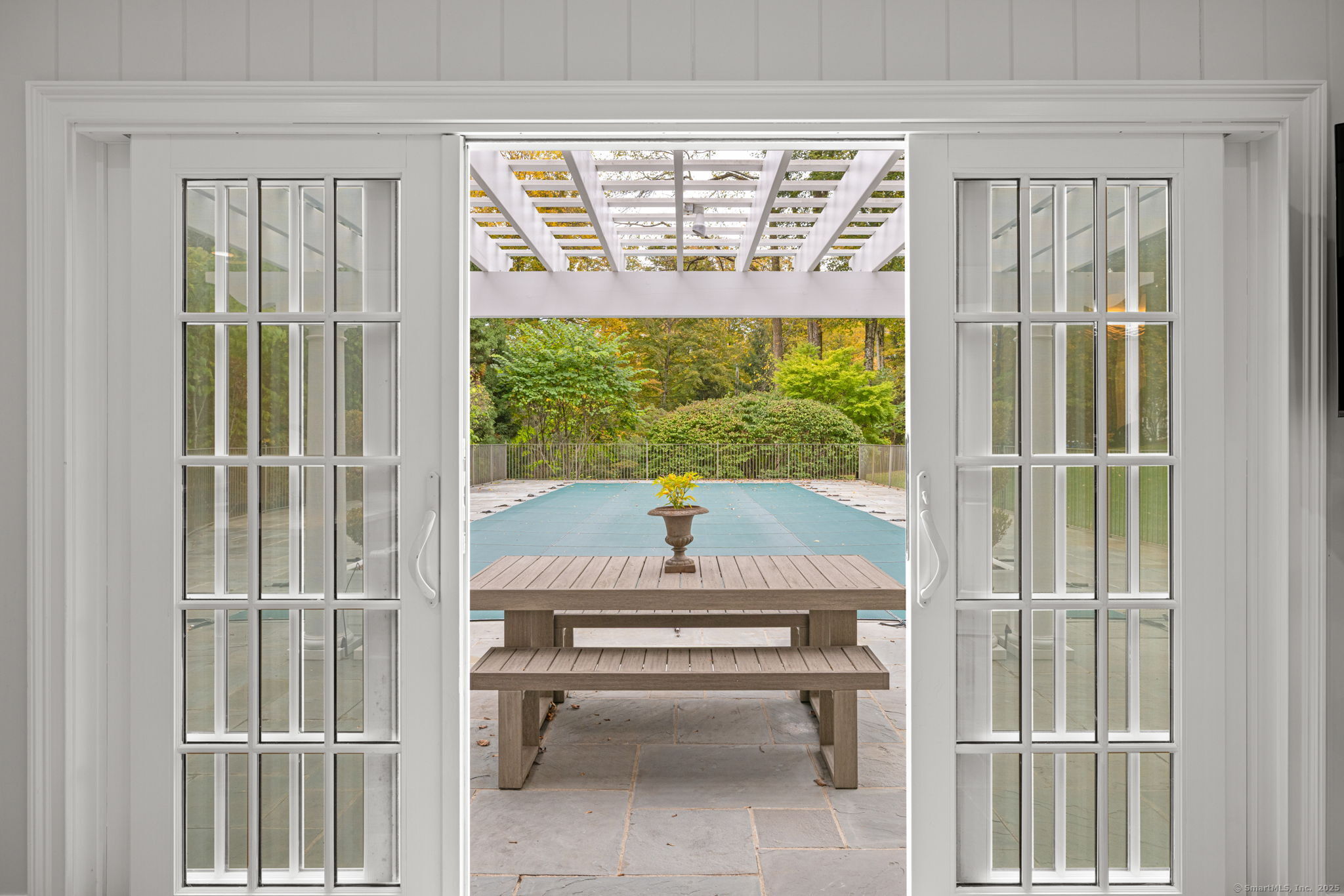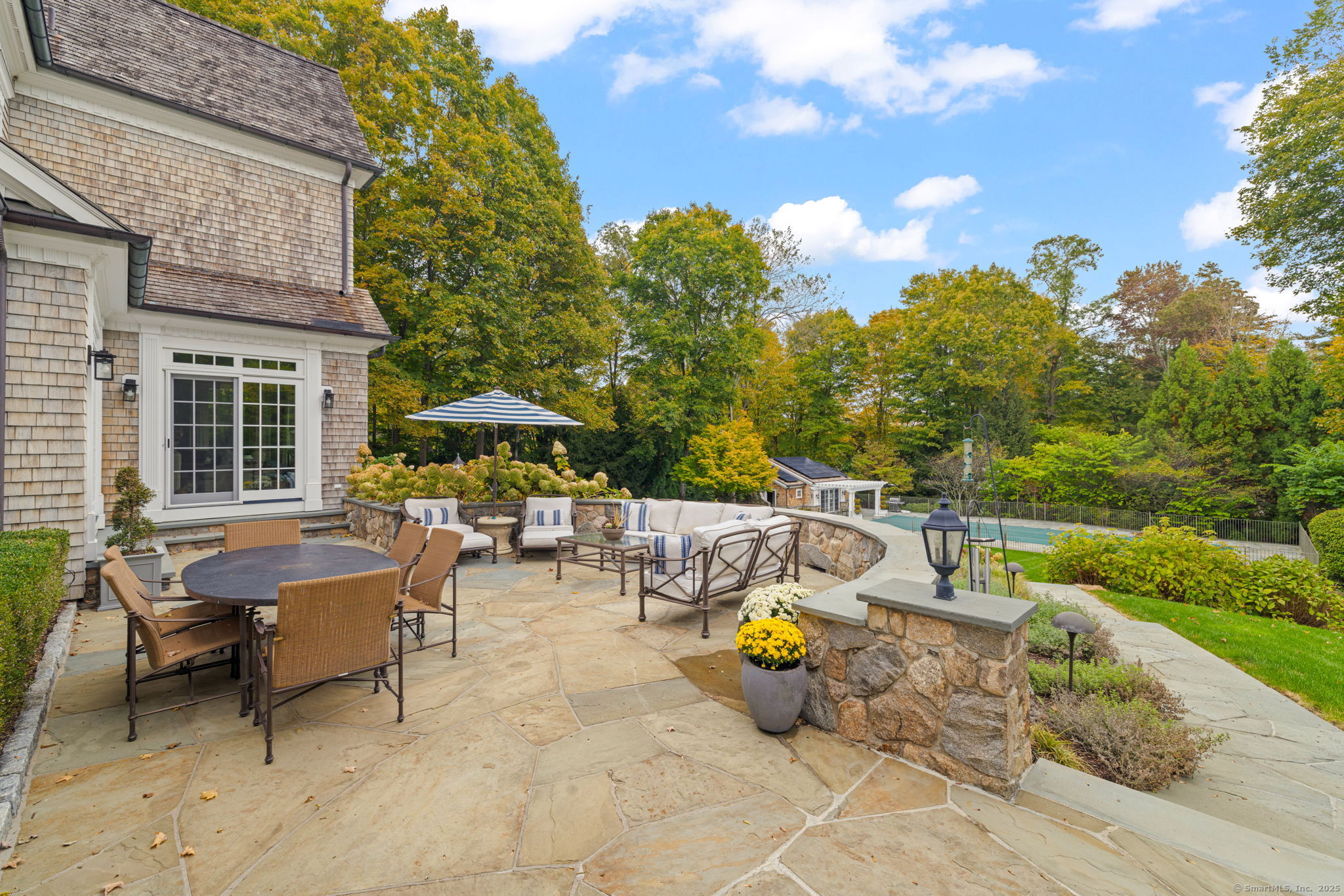 Built by renowned master builder John Heggland, this exceptional 7,811 sq ft Georgian Colonial estate is gracefully sited on 2.45 private acres in one of Wilton's most sought-after, nature-rich locations. Known for his uncompromising craftsmanship and timeless architectural integrity, Heggland delivers a residence that blends classic elegance with the finest in modern luxury and energy-efficient design. Inside, a double-height foyer with a sweeping staircase introduces rich hardwood floors, intricate moldings, and finely paneled walls. Formal living and dining rooms open to an inviting family room centered around a fireplace. The chef's kitchen features custom cabinetry, a butler's pantry, and oversized island. Two private offices with built-ins provide ideal work-from-home flexibility. Upstairs, each ensuite bedroom offers walk-in closets and tranquil sitting areas, while the luxurious primary suite boasts a spa-inspired bath and dressing room. Outside, enjoy resort-style living with a 20x60 pool, pool house, and expansive patios surrounded by manicured grounds. A finished lower level includes a private entrance for an au-pair or in-law suite, media room, or gym. Additional highlights include energy efficient geothermal system, a 3-car garage, and serene wooded privacy-all minutes to top-rated Wilton schools, dining, and commuting routes. Don't miss the video link!