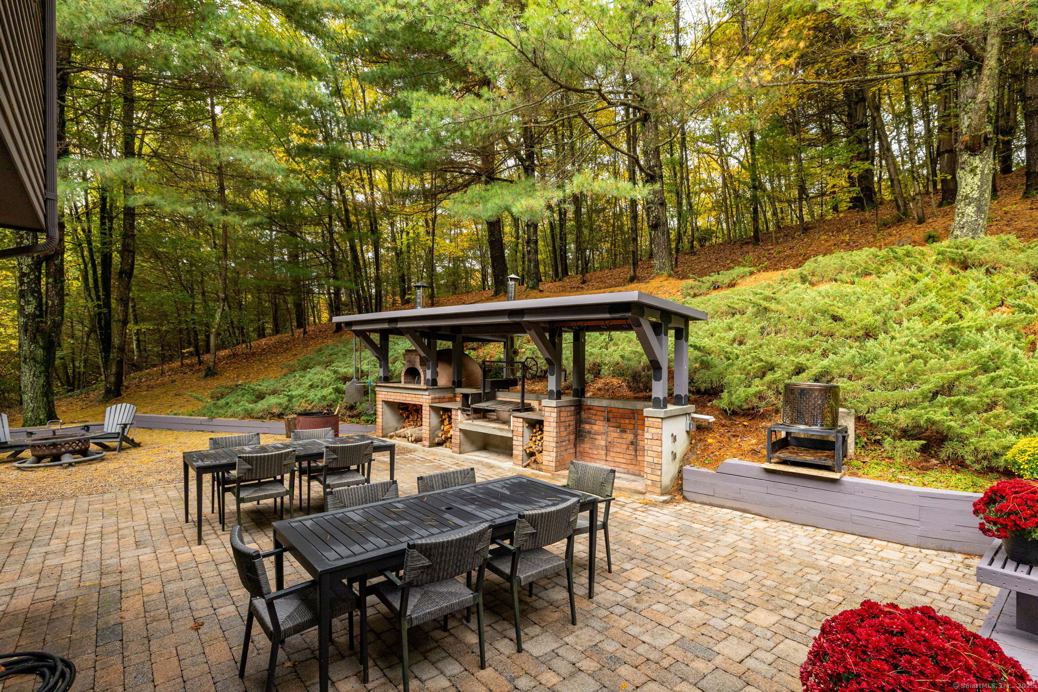 There is plenty of room for everyone in this stunning 4,000-square-foot, five-bedroom, four-and-a-half-bath contemporary-style home! If you've been searching for an in-law setup, au pair quarters, or a private teenage wing, you've come to the right place! This impressive addition offers private access and features an upper-level bedroom suite with a full bath and a lower-level family room, providing ultimate flexibility for multi-generational living. The main portion of the home welcomes you with a soaring vaulted ceiling, abundant natural light, and a dramatic floor-to-ceiling fireplace in the living room that flows seamlessly into the formal dining area. The remodeled kitchen is a chef's dream, boasting cherry cabinets, granite countertops, stainless steel appliances, and a large butler's pantry that opens to an expansive sunroom with patio access-perfect for hosting gatherings. Upstairs, retreat to the luxurious primary suite featuring a private balcony, three walk-in closets, and a spa-like primary bath. Two additional generously sized bedrooms and another full bath complete the second level. The fully finished, walkout lower level offers even more space to entertain, including another full bathroom and endless options for recreation, a gym, or a home theater. Entertainers will love the large rear deck, sprawling patio, built-in pizza oven, and an open fire grill-an outdoor oasis perfect for memorable evenings with family and friends.