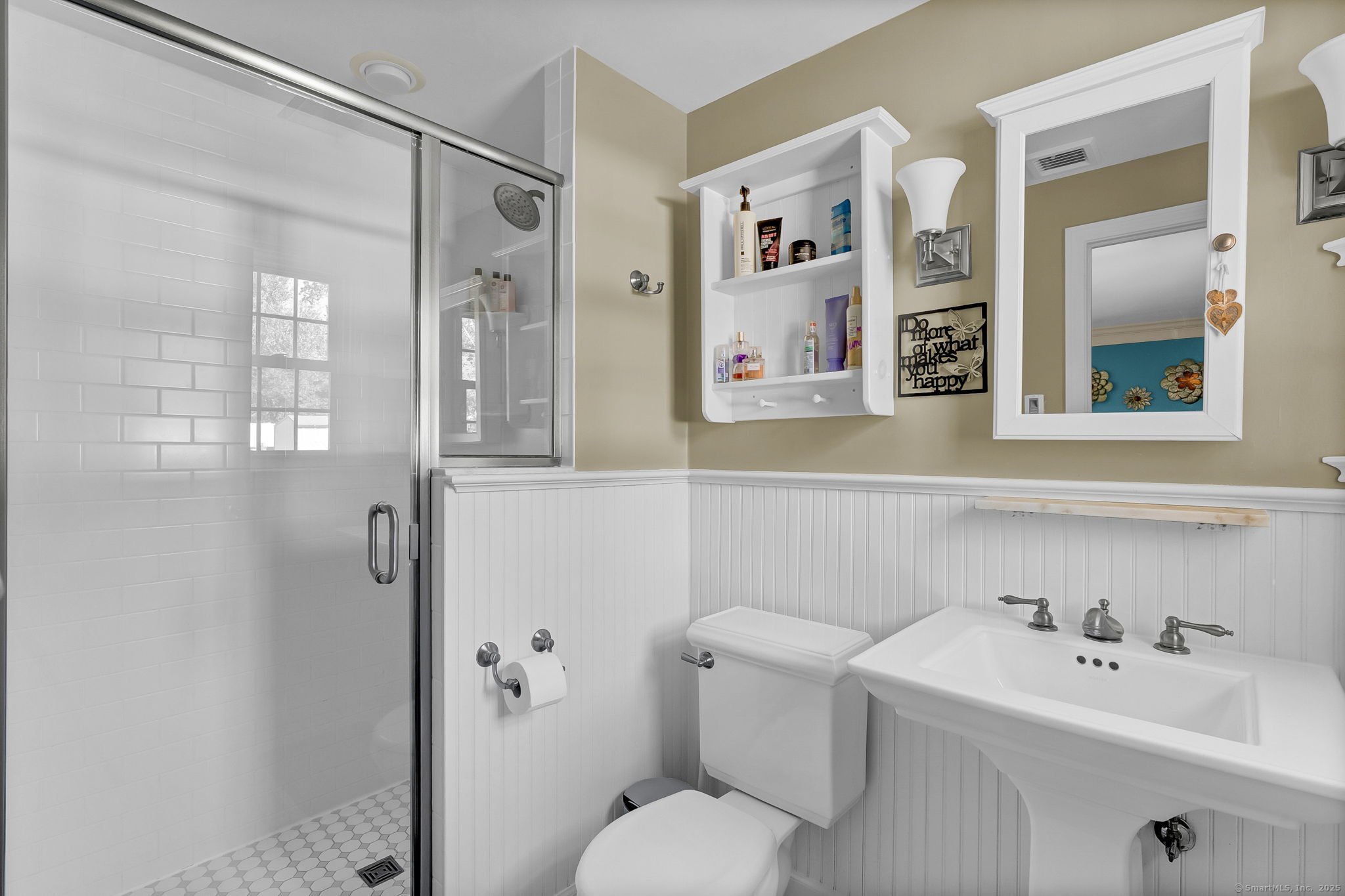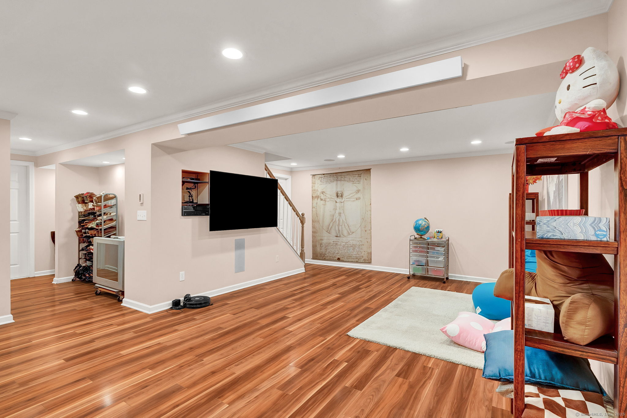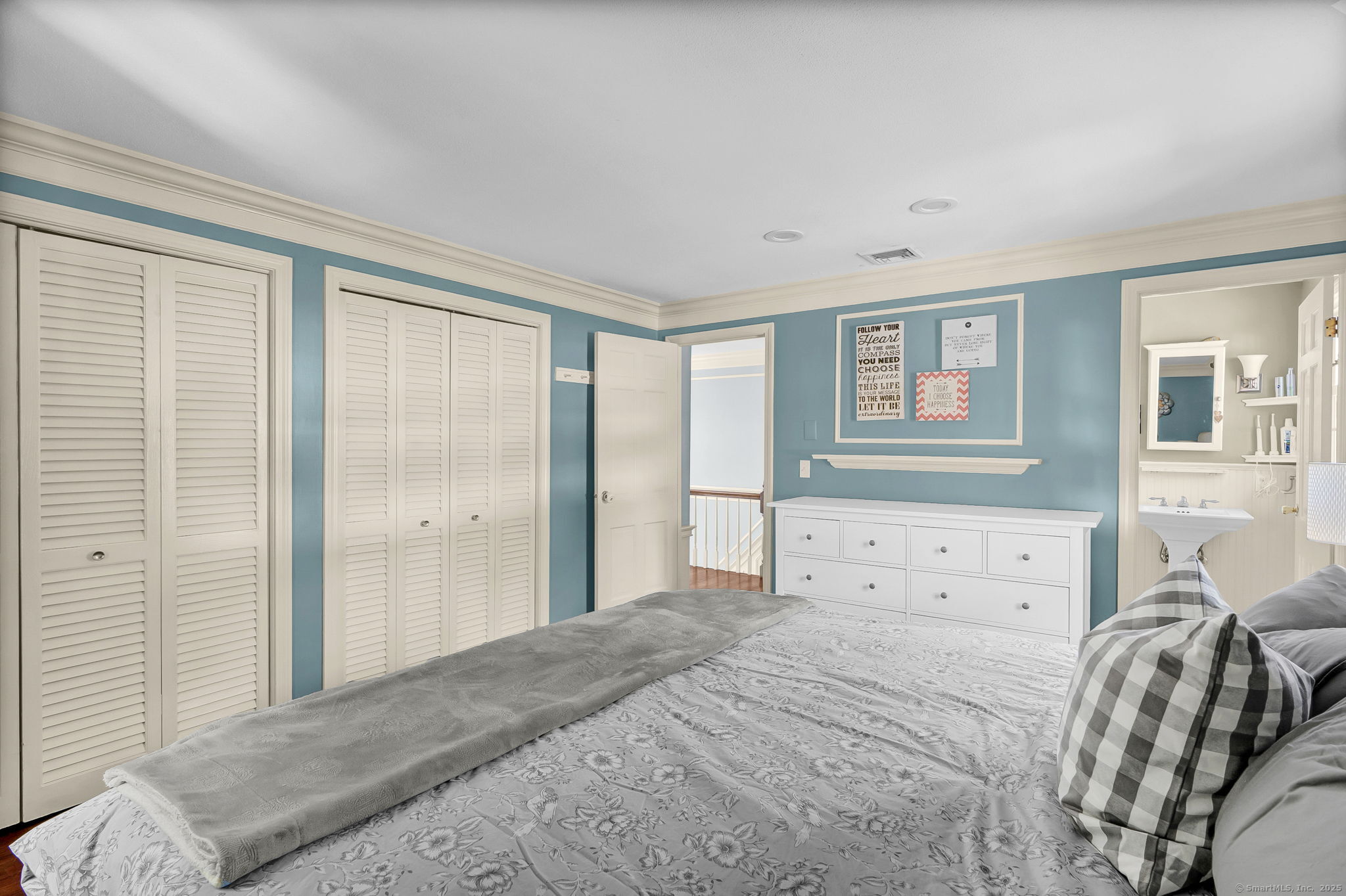 Welcome to this 4 bedroom 3 bathroom colonial located in a desirable neighborhood. Step inside to find hardwood floors that continue throughout the entire home. Relax in one of the two spacious living rooms, with one offering a wood burning stove and access to the fully fenced in backyard, perfect for entertaining. Upstairs you will find 4 spacious bedrooms, including a primary bedroom suite, custom California Closets, and heated bathroom floors for comfort. Enjoy the finished basement that includes built ins and surround sound, as well a full bath, making this area great for extra living space. Don't miss out on all the custom details that this home has to offer. Association is $309 paid semi-annually.