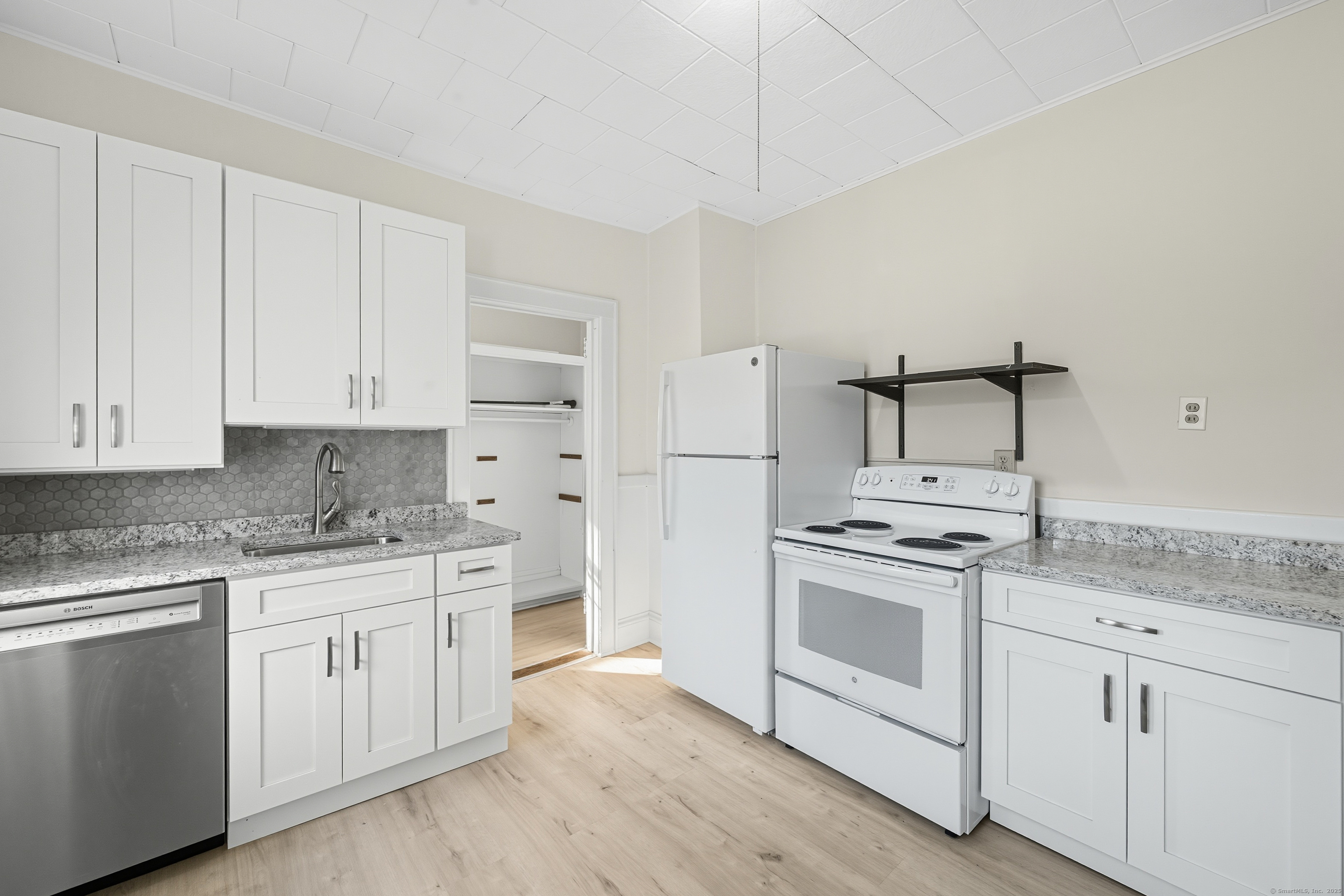 Welcome to this fully renovated 3-bedroom, 1-bath home in a prime West Hartford location, just 1 mile (5 minutes) from Blue Back Square! Nestled in a quiet neighborhood, this home features fresh paint, beautiful hardwood floors, and generously sized rooms throughout. Enjoy a modern kitchen complete with a walk-in pantry, a spacious formal dining room, and a bright living room with a classic brick fireplace. Step onto the private balcony or relax in the enclosed front porch overlooking the peaceful street. This unit offers a private entrance to the second floor for added privacy and convenience. Additional highlights include brand-new appliances, washer & dryer in the basement, and one garage space. Close to shops, restaurants, parks, schools, and major highways. Location, location, location! Don't miss this exceptional rental opportunity!