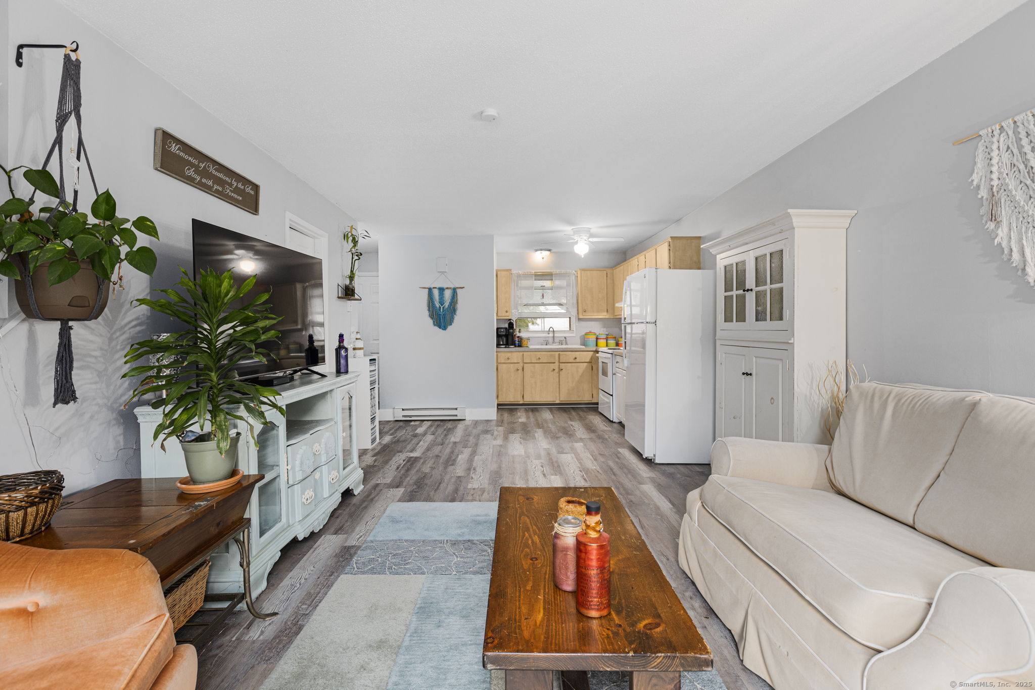 Welcome home to this beautiful townhouse-style condo featuring 2 bedrooms and 1.5 baths. The open-concept first floor offers a bright and inviting layout, where a modern eat-in kitchen flows seamlessly into the dining area. Step through the sliders to your private back deck and take in the expansive backyard view, perfect for morning coffee or evening relaxation. A convenient half bath for guests completes the main level. Upstairs, you'll find a spacious primary bedroom, a comfortable guest room, a full bath with tub, and a landing with a linen closet for extra storage. The lower level includes a finished heated room, plus an unfinished mechanical area with washer and dryer hookups currently being used for storage. Appliances included: stove, refrigerator, Maytag washer, and Maytag dryer. The owner was advised that the back deck boards, kitchen cabinets, flooring, and water heater were replaced shortly before their ownership. Buyers and buyers' agent to verify. As a bonus this middle unit has lower heating costs than an end unit for more savings! This condo community has no age restrictions and offers the convenience of city water and sewer. Ideally located near I-395, Route 6, and Route 101 for an easy commute to Rhode Island, and just minutes from shopping centers and restaurants. A great combination of comfort, modern updates, and convenience awaits you here.