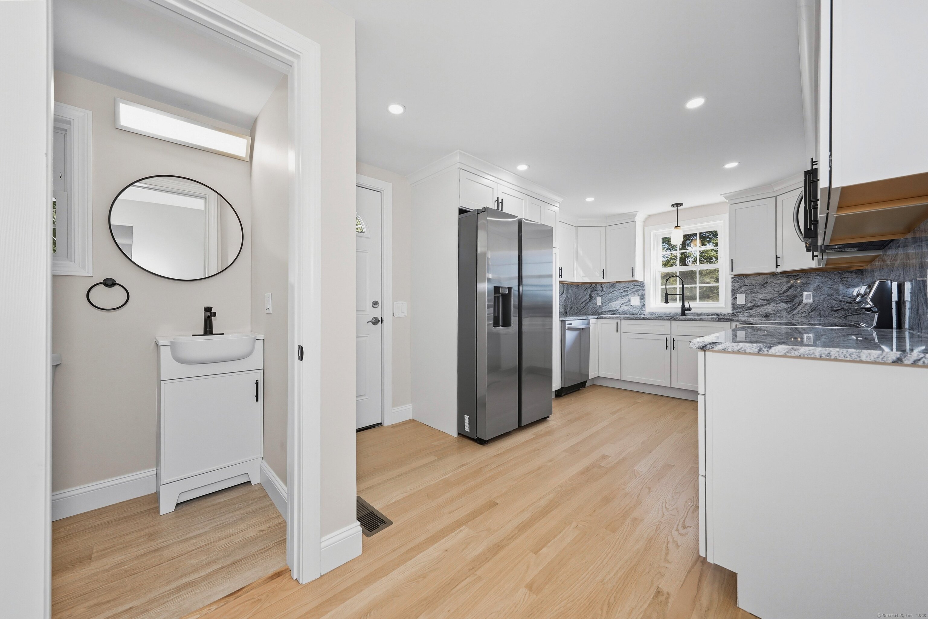 Welcome to this beautifully updated home nestled on a peaceful corner lot in Chippens Hill section of Bristol. Step inside to discover a remodeled kitchen with brand-new stainless steel Samsung appliances, soft-close cabinets and drawers and recessed lighting that extends into the living, dining, and mudroom. The full and half bath have been tastefully remodeled and feature durable luxury vinyl plank flooring. The main level shines with gleaming hardwood floors throughout, complemented by three comfortable bedrooms, a light-filled living room with fireplace and built-ins and a dining room both accented by crown molding and architectural charm. The upper level offers a fully carpeted large space, ideal for a 4th bedroom plus a bonus room perfect for a walk-in closet. This home boasts a long list of major updates, including a new roof, new windows, new well and water tank, new forced hot-air propane furnace, new plumbing, new electrical, new central a/c & new split a/c unit for upper level. Outside, enjoy the brand-new back deck overlooking the serene yard, with public sewer connection already in place for added convenience. This move-in ready home combines old charm character with thoughtful modern updates, offering both charm and function in a quiet neighborhood setting. BOM due to buyers having cold feet. Follow this property at Finaloffer.com for instant updates & offer alerts. Schedule your appointment today!