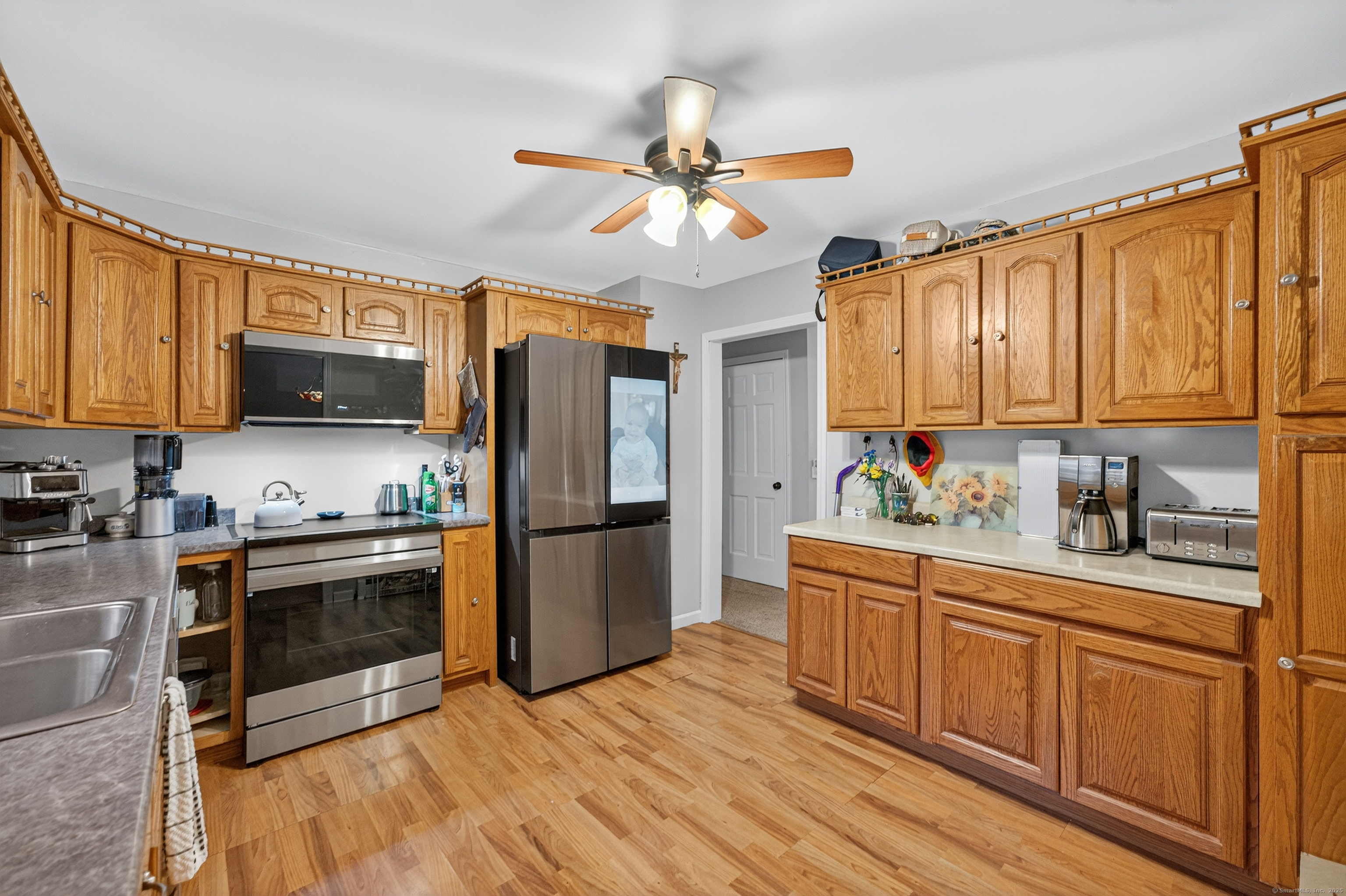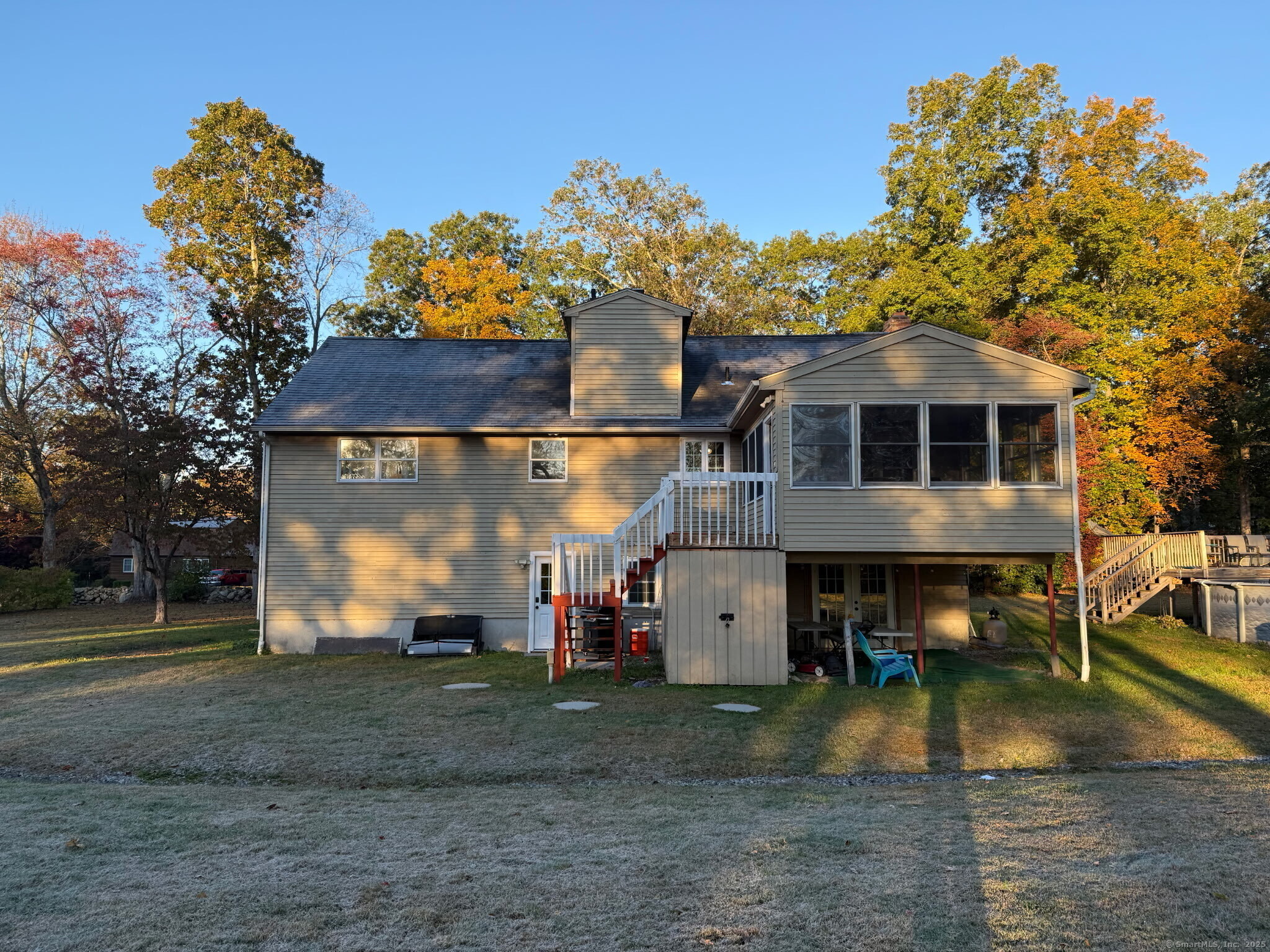 This is not your ordinary raised ranch! The home has a finished 3rd level with 2 huge bedrooms! Come see the spacious feel of this 4-bedroom, 2.5-bath oversized home on a nice level lot. It features a smart, flowing layout designed for everyday living and entertaining. Key highlights: 1. New roof for peace of mind - 2024 2. State-of-the-art refrigerator with built-in TV 3. Main floor: inviting living room with a second fireplace, dining room, kitchen, and a bright 3-season sunroom with beautiful sunrises over the neighboring historic Burnham Tavern property 4. Two bedrooms on the main level plus a full bath 5. Lower level: generously sized family room with a fireplace and slider to the back yard, plus a half bath/laundry area and access from the two-car garage 6. Upper level: an additional floor with a full bath and two oversized bedrooms with skylights (the staircase resides in a small room that could also be used as an office) 7. Septic system updated in 2008 with a 1500-gallon tank 8. Efficient climate control: 7 mini-splits installed in 2021 provide supplemental heat and cooling for most of the home 9. Outdoor fun: 6-year-old above-ground pool with a deck Prime location: convenient to I-395 and Lisbon Landing's dining and shopping. This home blends classic comfort with modern touches, offering flexible living spaces and thoughtful updates. Schedule a showing to experience its generous flow and unique character.