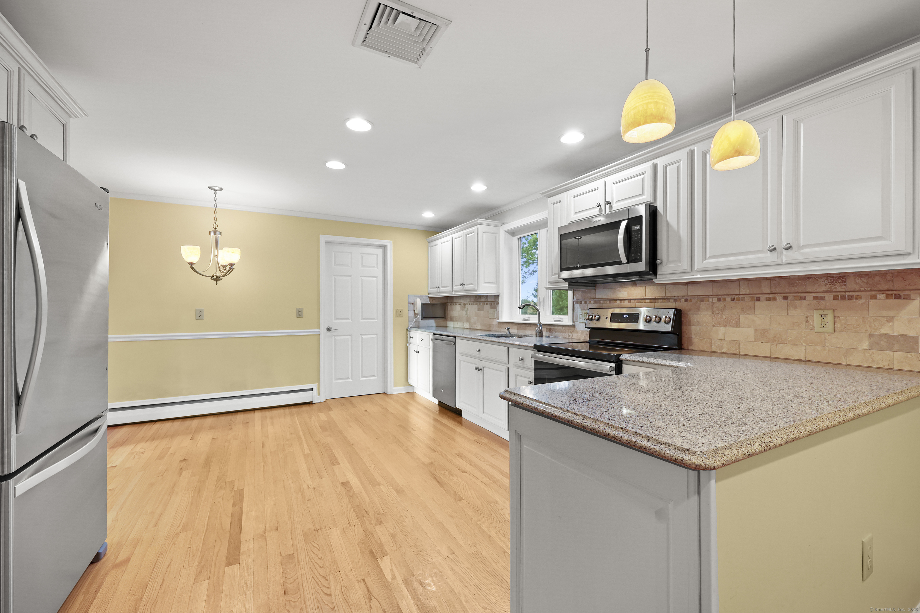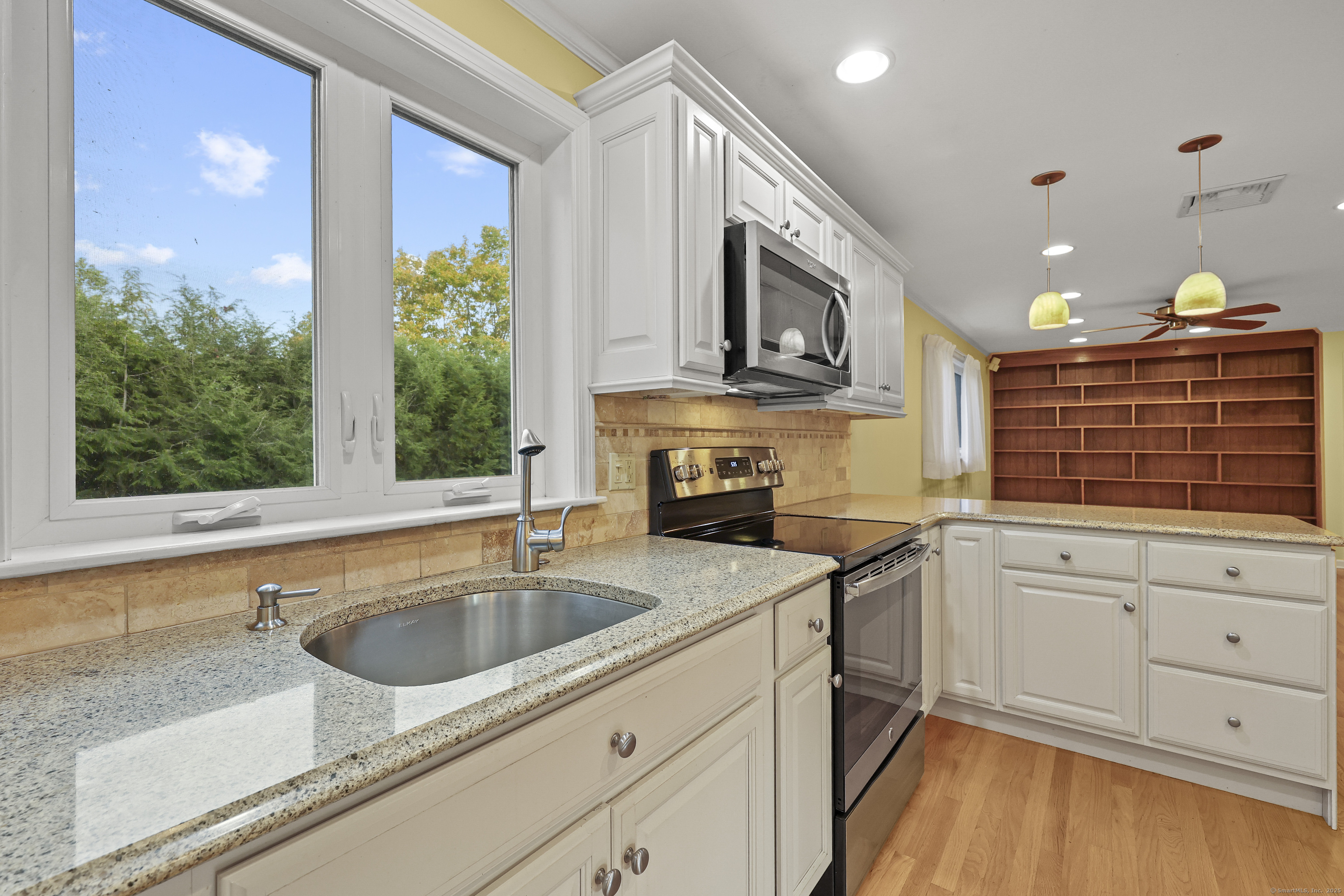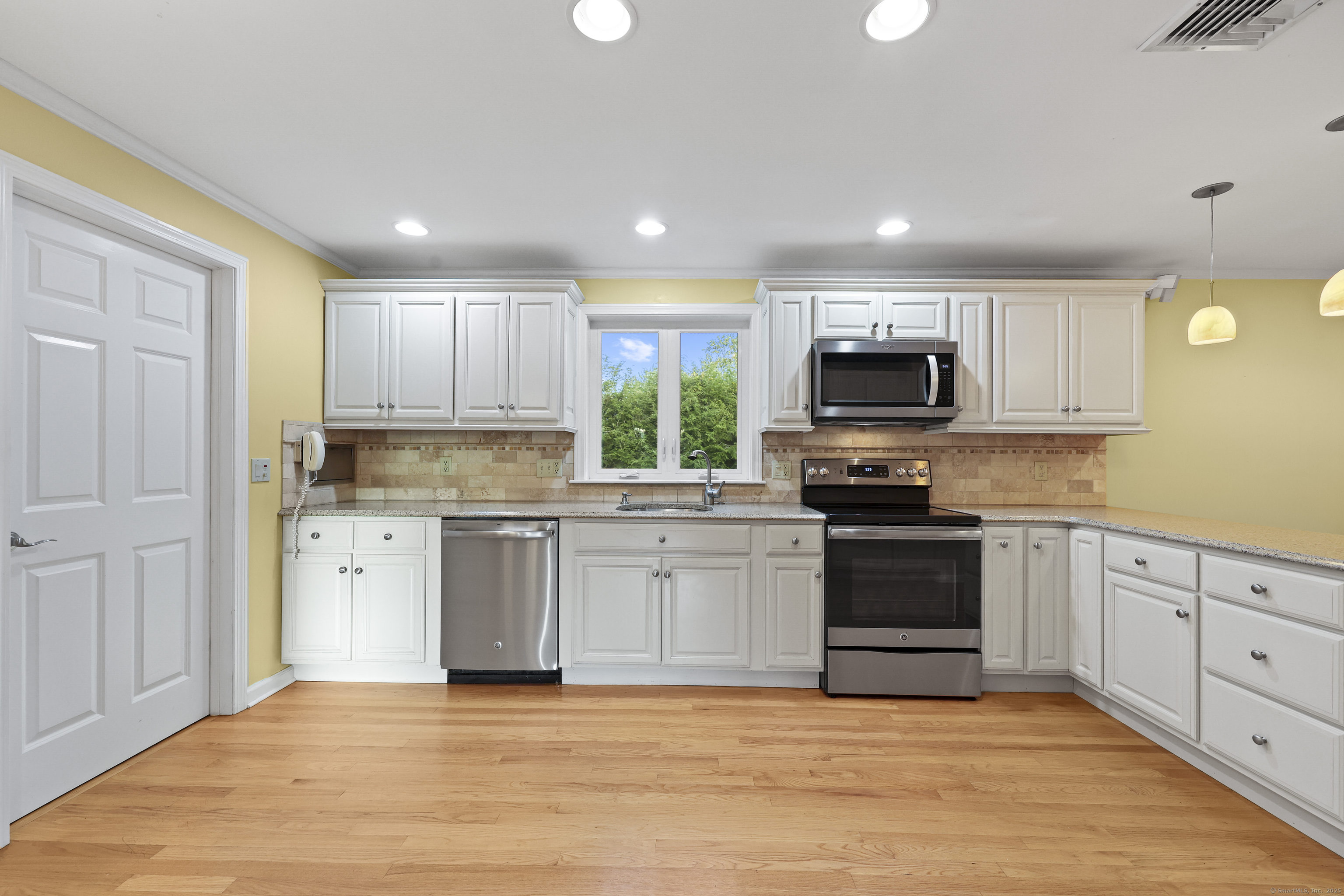 Welcome Home to this stunning custom brick ranch, perfectly nestled in a neighborhood of lovely custom-built homes. This meticulously maintained residence boasts four spacious bedrooms and two full baths, offering ample space for family and guests. The inviting layout features an open-concept living area, ideal for entertaining, complemented by large windows that frame breathtaking western views, allowing natural light to flood the space. The remodeled gourmet kitchen is a chef's dream, equipped with modern appliances and sleek finishes, while the adjacent dining area and study with custom built in bookshelves provides a perfect setting for gatherings. Each bedroom is thoughtfully designed to ensure comfort and privacy. The primary bedroom features a full bath for added convenience. The outdoor space is equally impressive, featuring a beautifully landscaped yard and a front patio perfect for enjoying relaxing evening sunsets. Quality upgrades, newer roof and central air, this home is not just a residence; it's a lifestyle, offering both elegance and functionality in a desirable location. Don't miss the opportunity to make this exceptional property your own in the sought after South Farms area of Middletown.