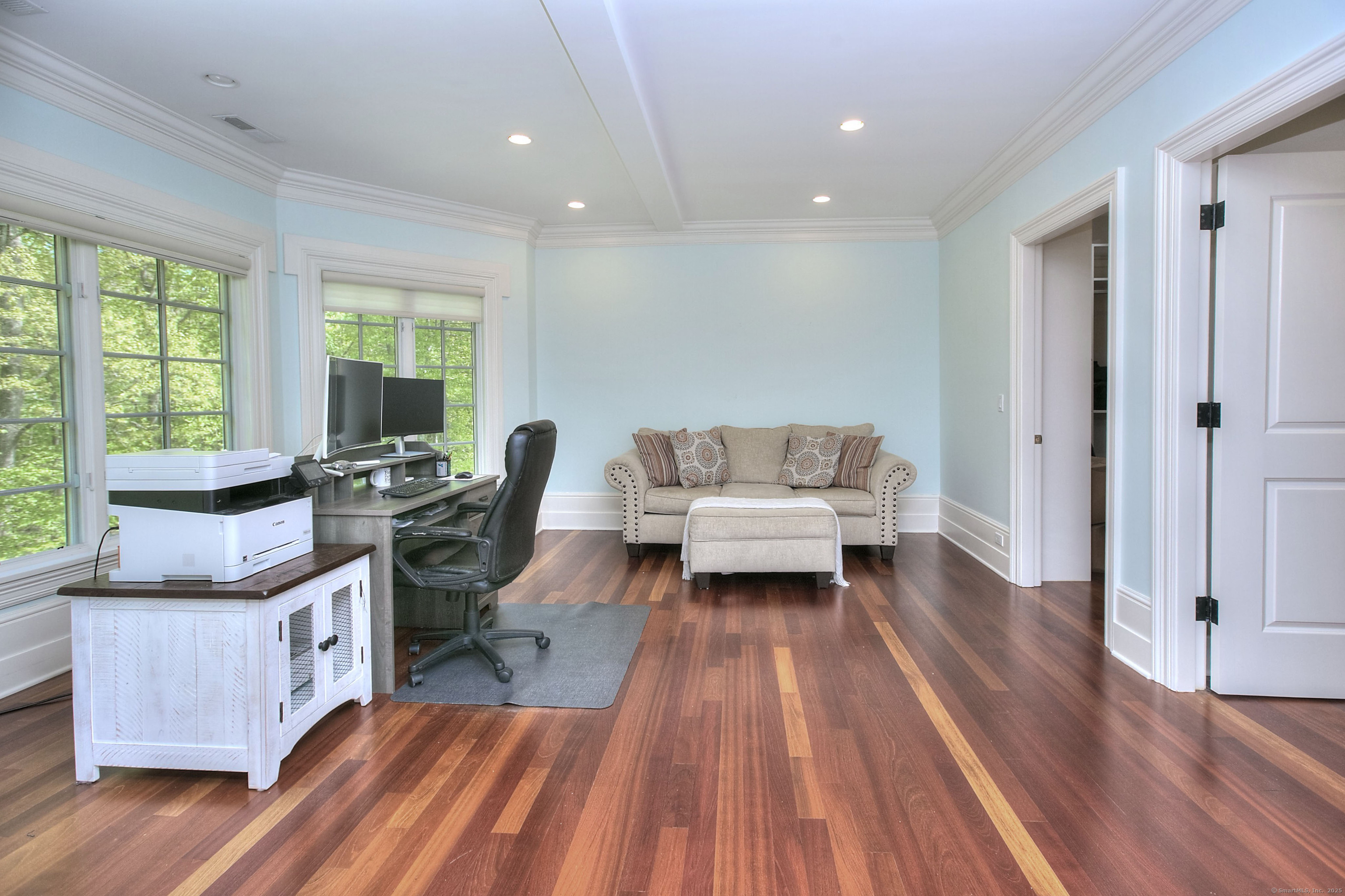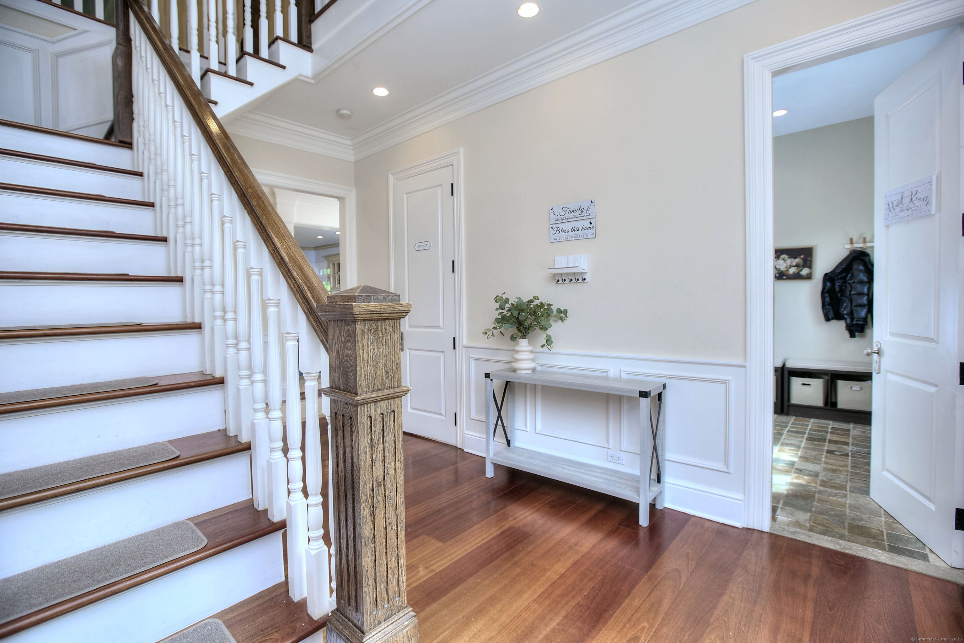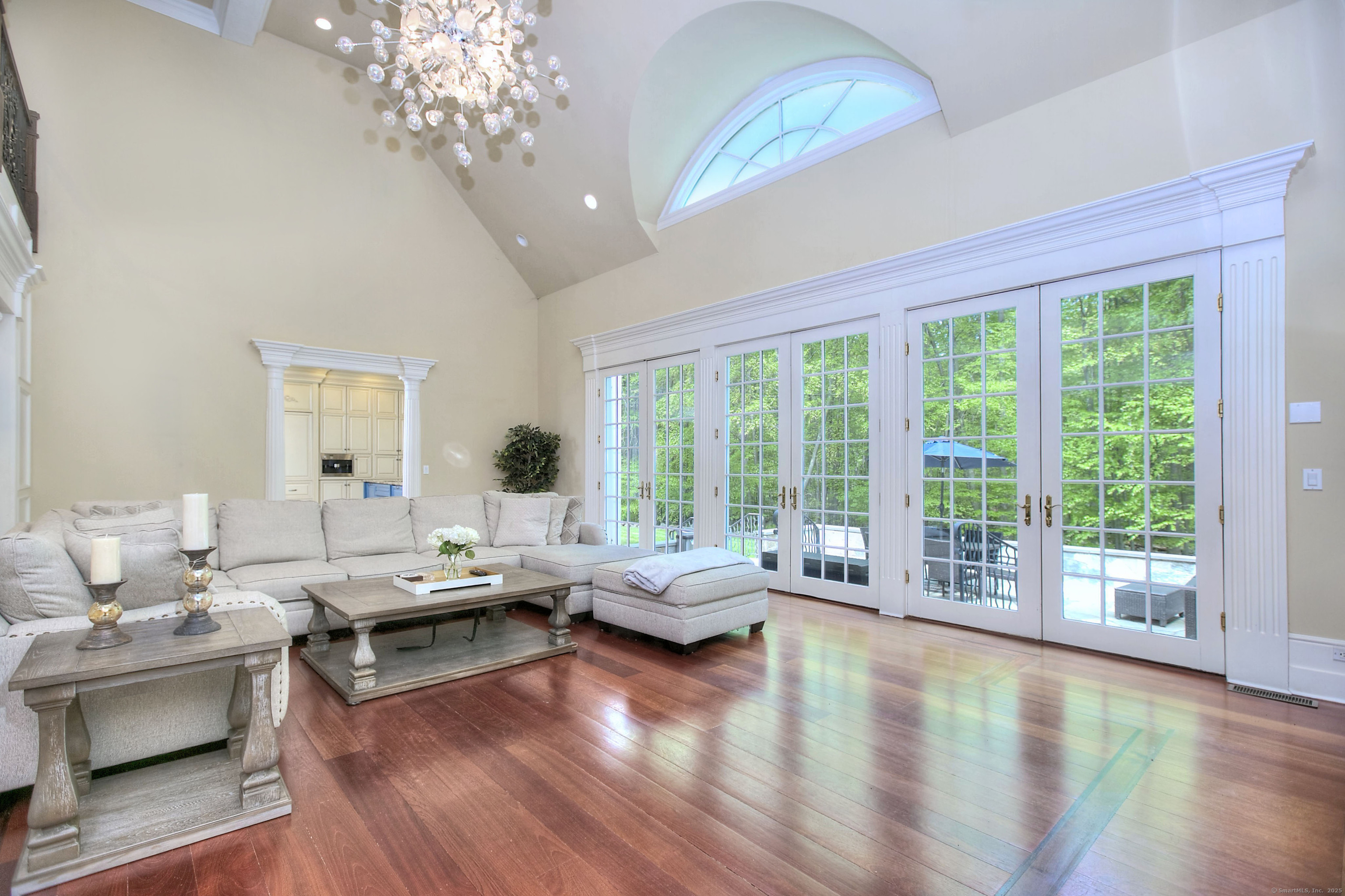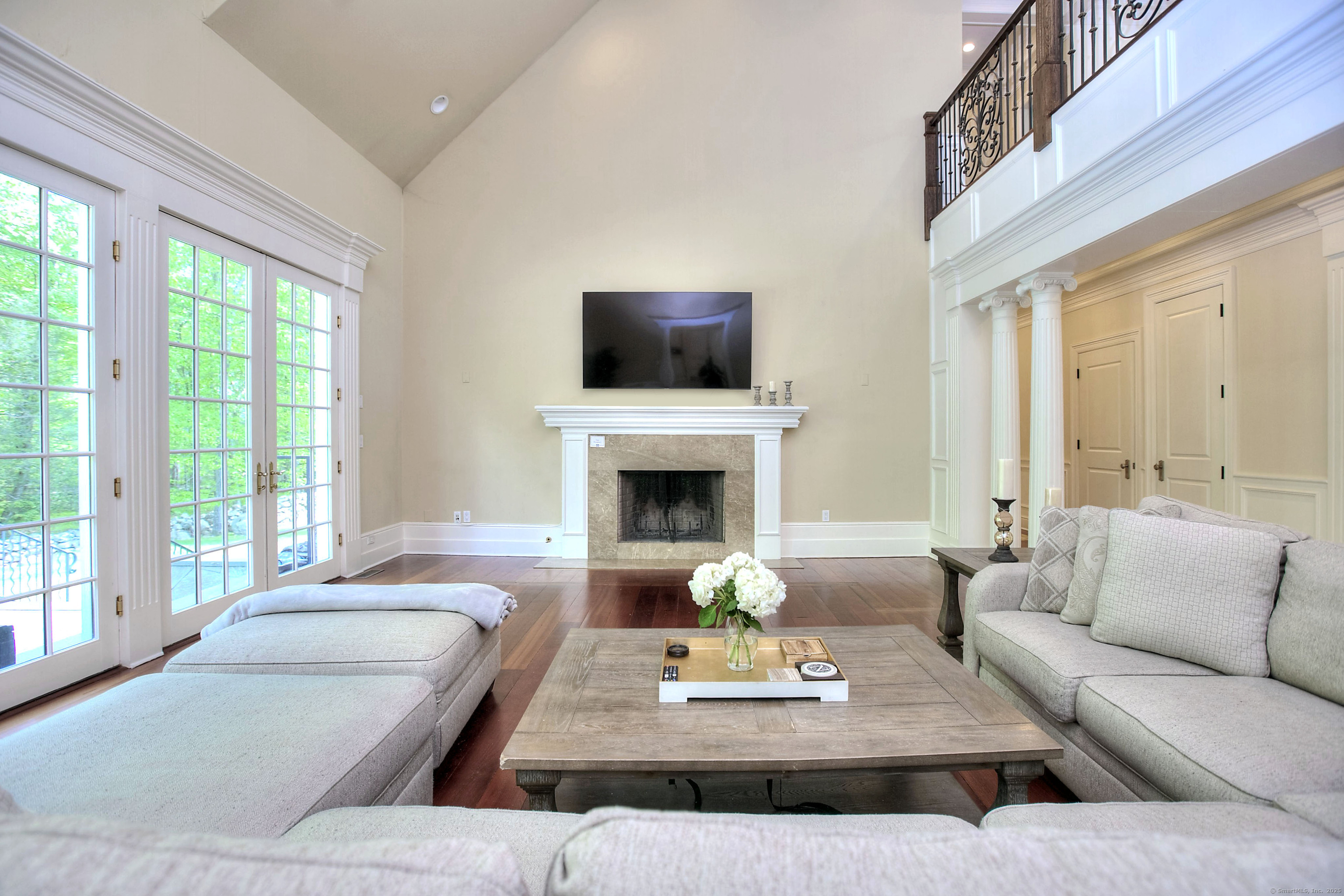 Modern elegance meets estate living at 88 Merry Meet Circle, set on 3+ manicured acres in Fairfield's premier gated community, The Ridge. Perfectly positioned where Fairfield meets Westport, this gracious colonial manor offers 5+ bedrooms, 6 full and 2 half baths, and 4 beautifully finished levels-just minutes from vibrant downtowns, beaches, dining, and trains. A grand two-story foyer with a custom staircase and Swarovski chandelier sets a stunning first impression. Sunlit interiors flow effortlessly with French doors opening to expansive terraces and lush landscaping. The chef's kitchen is a true centerpiece, featuring Wolf appliances and two large islands-perfect for both casual gatherings and elegant entertaining. Formal dining, living, and great rooms showcase exquisite craftsmanship, while a richly paneled office and a flexible third floor provide options for a 5th or 6th bedroom. The lower level is designed for both recreation and relaxation, offering a wine room, gym, and generous lounge space. Additional highlights include five fireplaces, spa-inspired baths, and abundant storage throughout. Just steps away, The Ridge's exceptional amenities-including a pool, tennis and pickleball courts, basketball, playground, and clubhouse-offer a private country club lifestyle right outside your door. With private roads and 24-hour security, this community combines privacy, luxury, and convenience. Located just 60 miles from NYC, 88 Merry Meet Circle is where