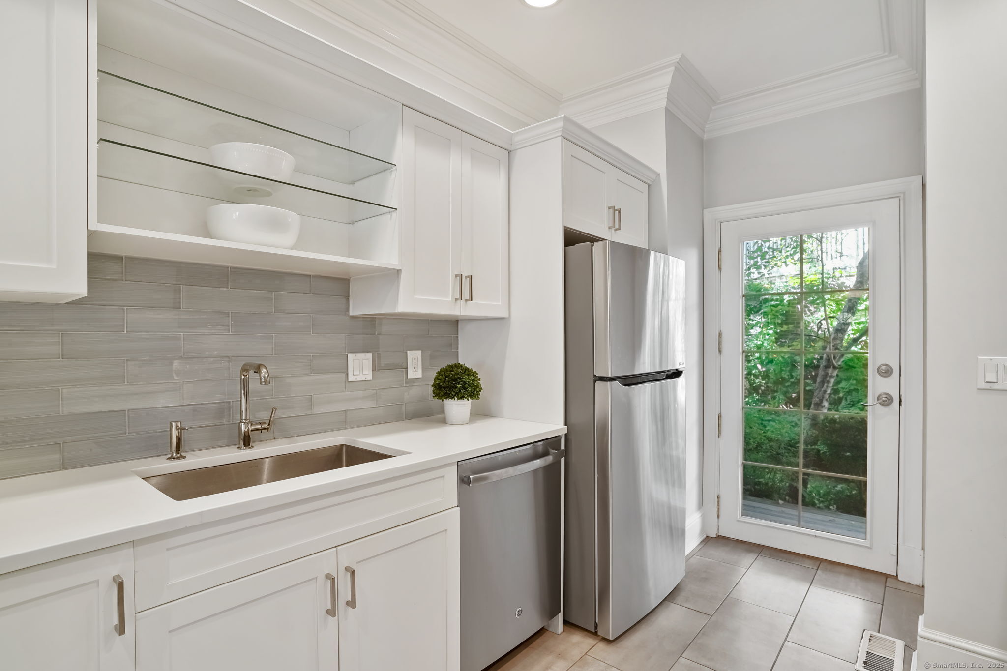 Move right in and enjoy this beautifully renovated 1-bedroom, 1-bath condominium just moments from town, train, shops, and restaurants. The open-concept layout features a bright living area, updated kitchen with modern finishes, and a spacious bedroom with generous closet space. Step out onto your private deck, ideal for morning coffee or unwinding at the end of the day. The stylish bathroom and in-unit laundry add convenience and comfort. A 290 sq. ft. private storage unit provides exceptional added space - great for bikes, seasonal items, or keeping things organized and out of sight. Perfect for first-time homebuyers or those seeking a low-maintenance home. The building offers easy living, assigned parking, and a convenient location close to everything New Canaan has to offer. Whether you're looking to simplify your lifestyle or secure a comfortable home base, this turn-key condo with private deck and generous storage is a fantastic opportunity.
