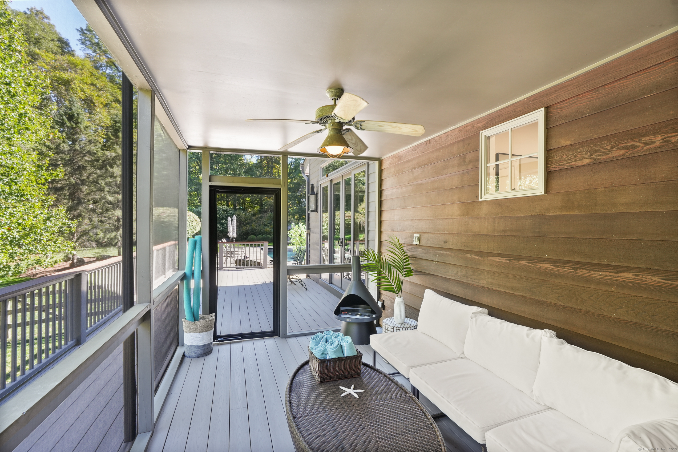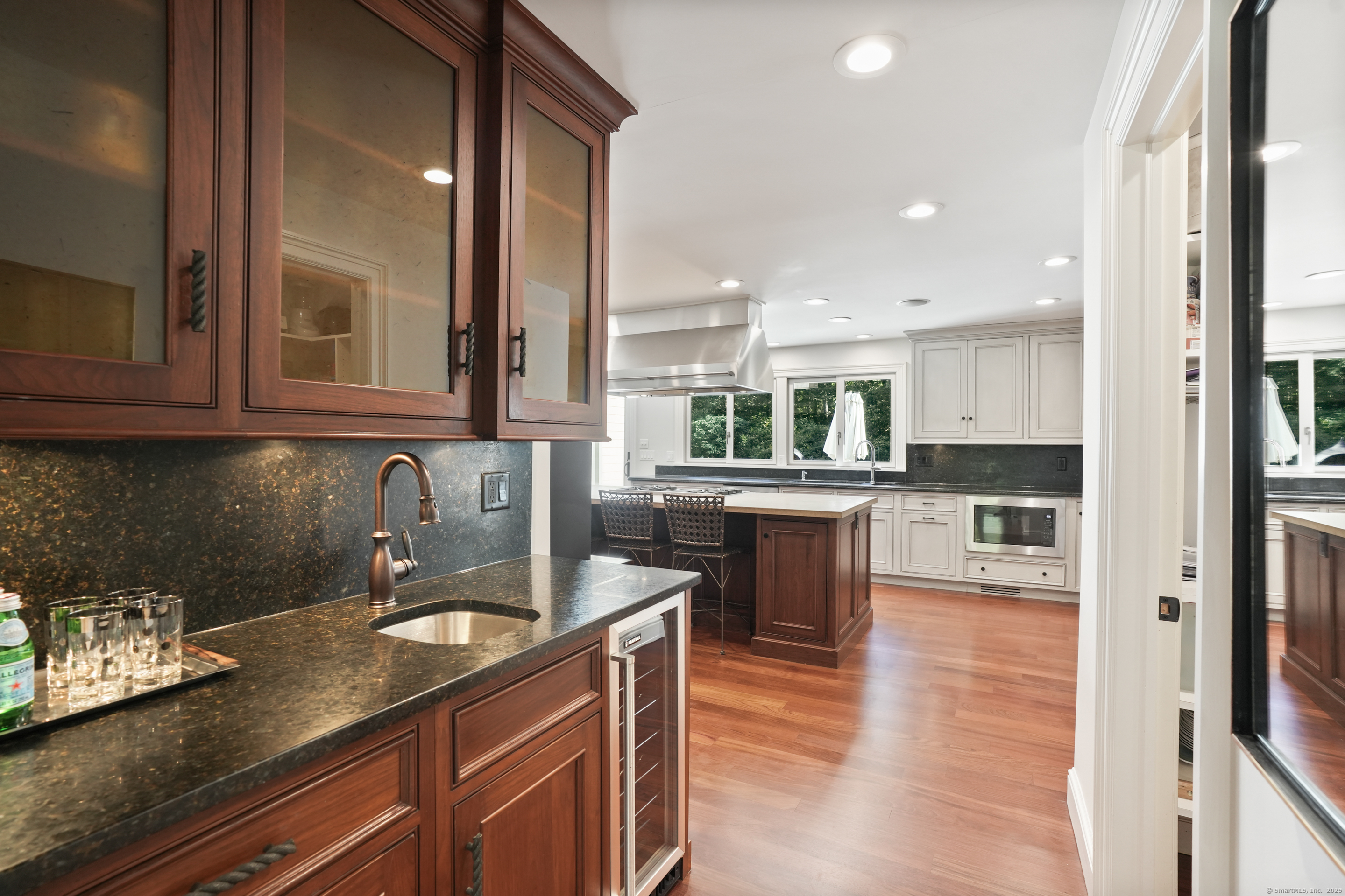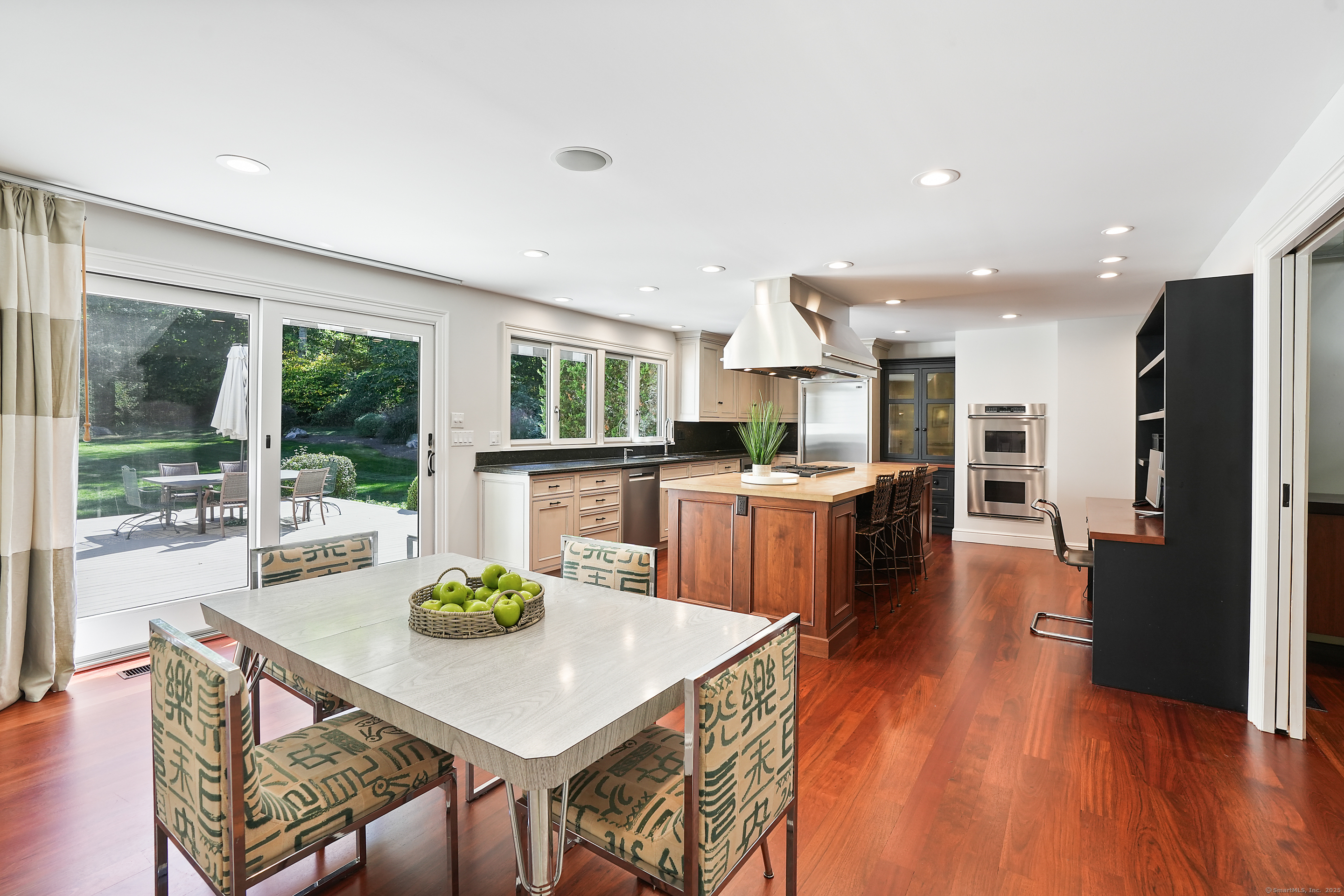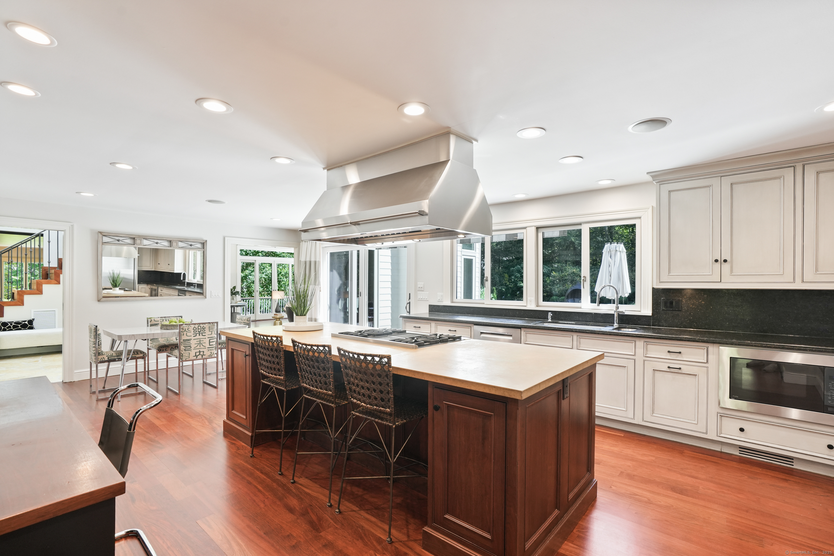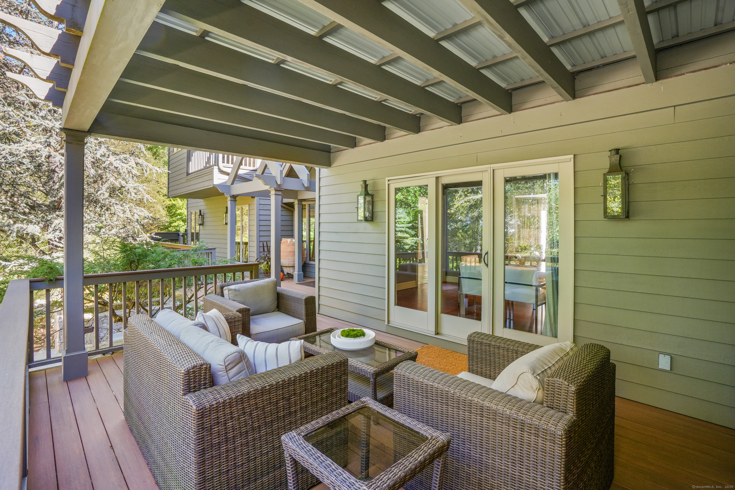 Set on more than two acres of exquisite, park-like property in the coveted Red Coat estate section of Westport, this spectacular modern home with a glorious gunite pool offers an ideal lifestyle. A designer's own residence, this home showcases uncompromising quality with intuitive features. The landscaped approach begins with a large stone parking court that accommodates entertaining on a grand scale. The dramatic entrance leads to a soaring foyer with custom stairs, where the sun-filled interiors begin to unfold and glimpses of the glorious rear property and pool come into view. The grand-scale Great Room w/gas fireplace has windows & doors on three sides, brining in light and views. The fam rm has a professional media system to bring your favorite shows and games to the big screen, and access to the serene screened-in porch. The gourmet kitchen has style and flair w/concrete center island, stone counters, Sub Zero & Viking appls, wet bar w/beverage chiller, lrg pantry, built-in desk, dining area & access to the deck. The dining room has a custom built-in server, 3D ceiling design & doors to a covered deck. The flexible 2nd level has 5 BRs incl a grand primary suite w/two balconies, excellent closet space & a luxe bth w/glass shower & spa tub. All baths have been updated. The apt/guest wing w/priv entry, 2 rms, kitchenette & laundry is ideal for multi-generational living or anyone seeking privacy. Finished walk-out LL w/rec & office spaces. Many new improvements. Generator.