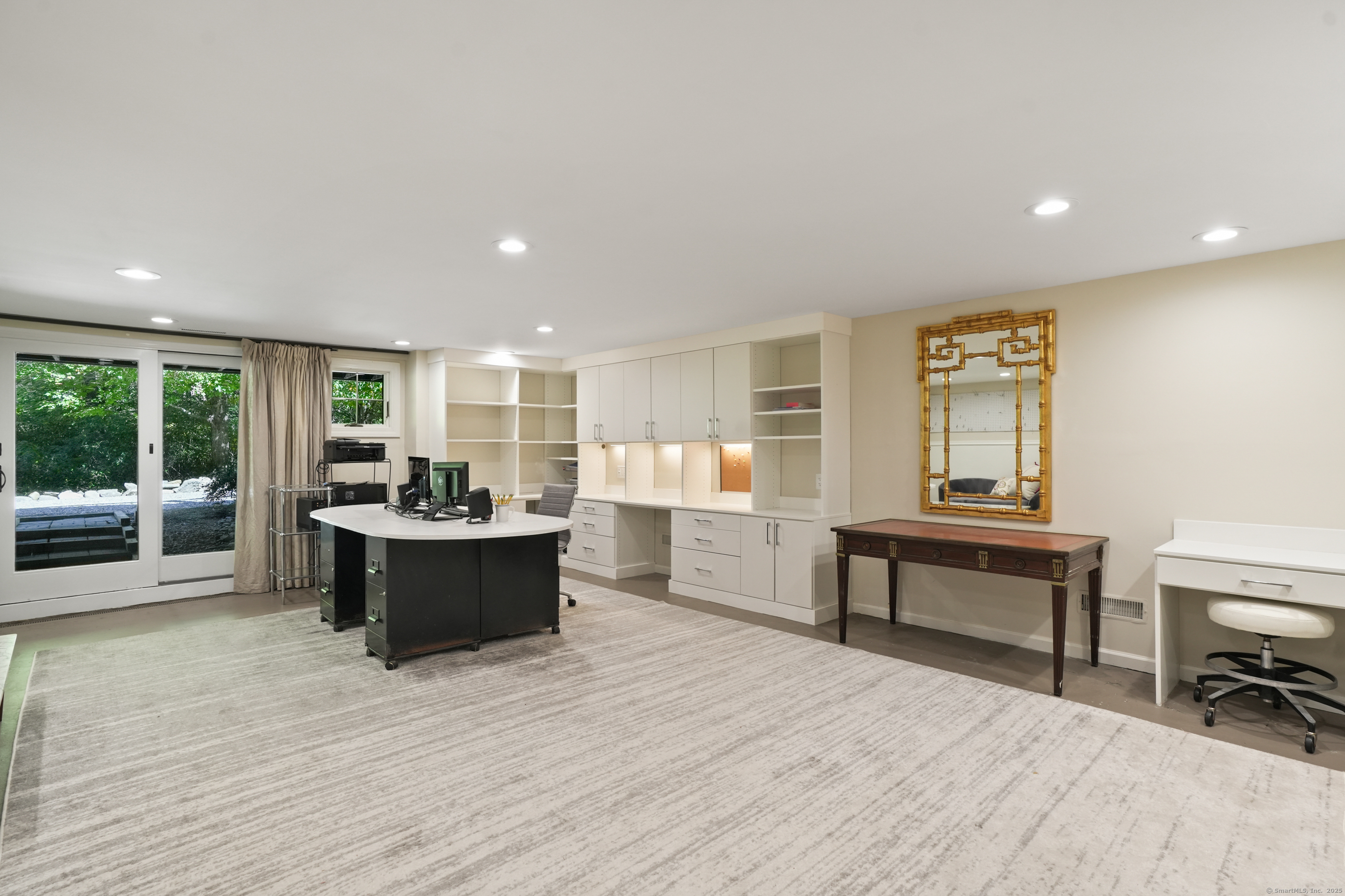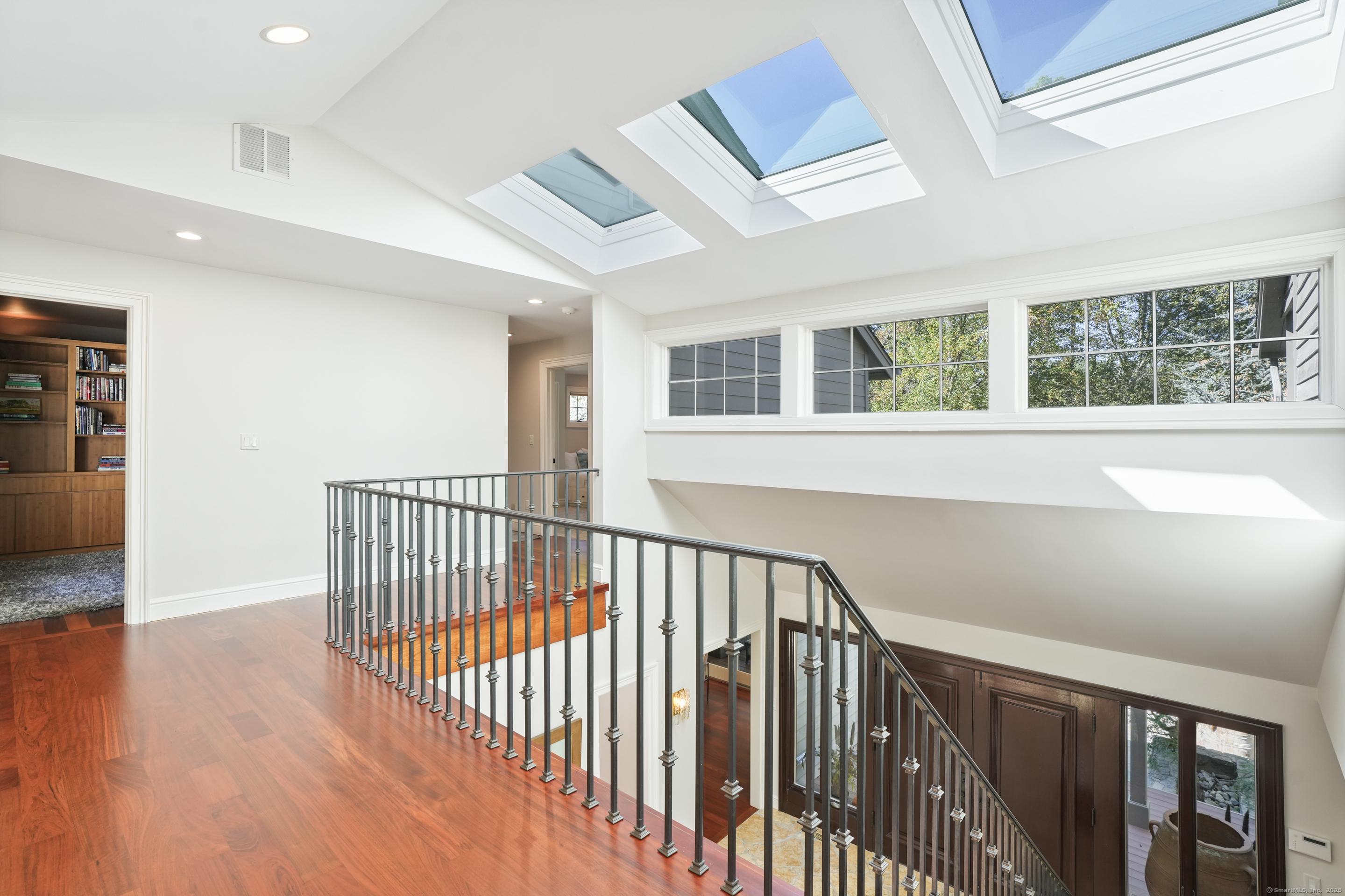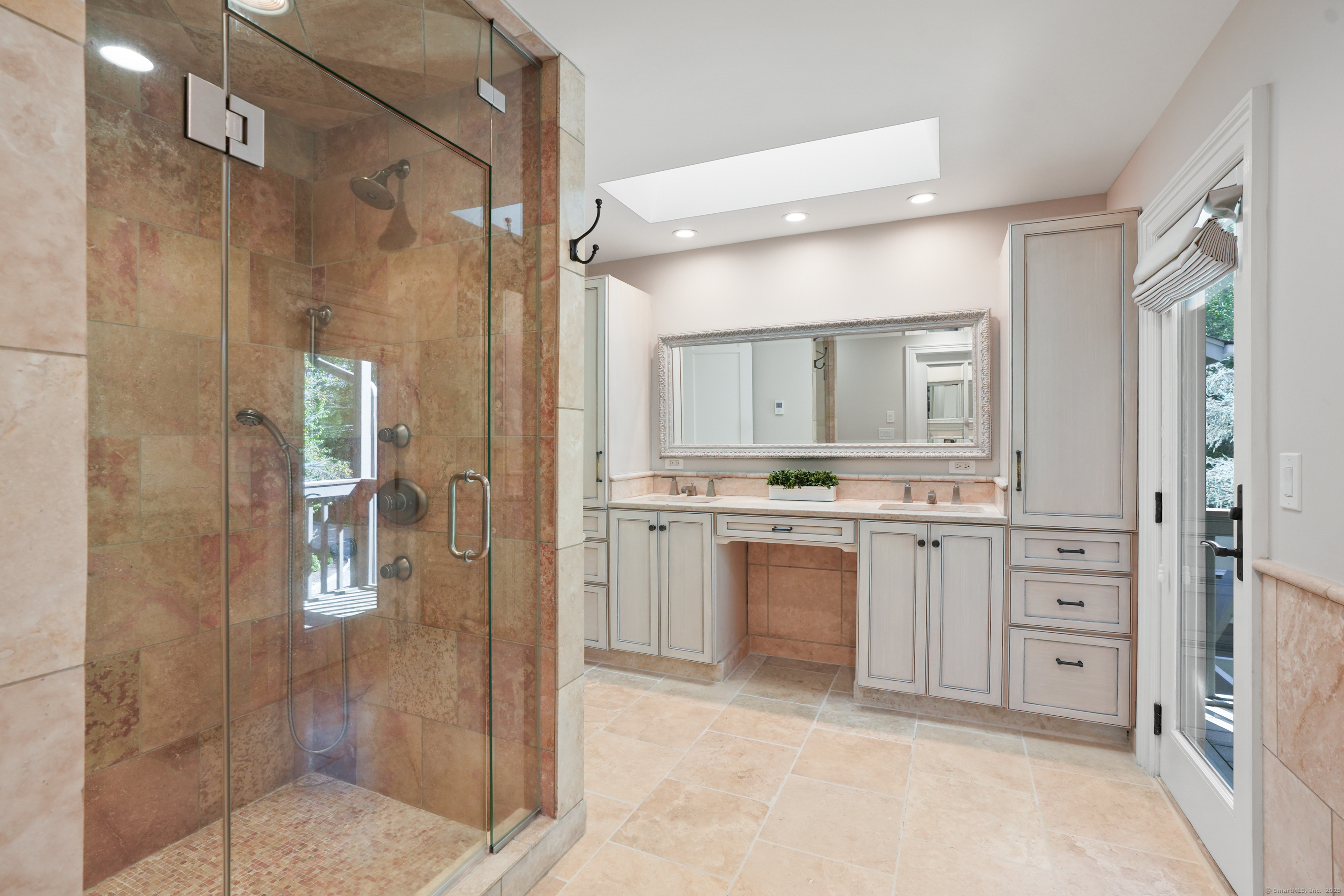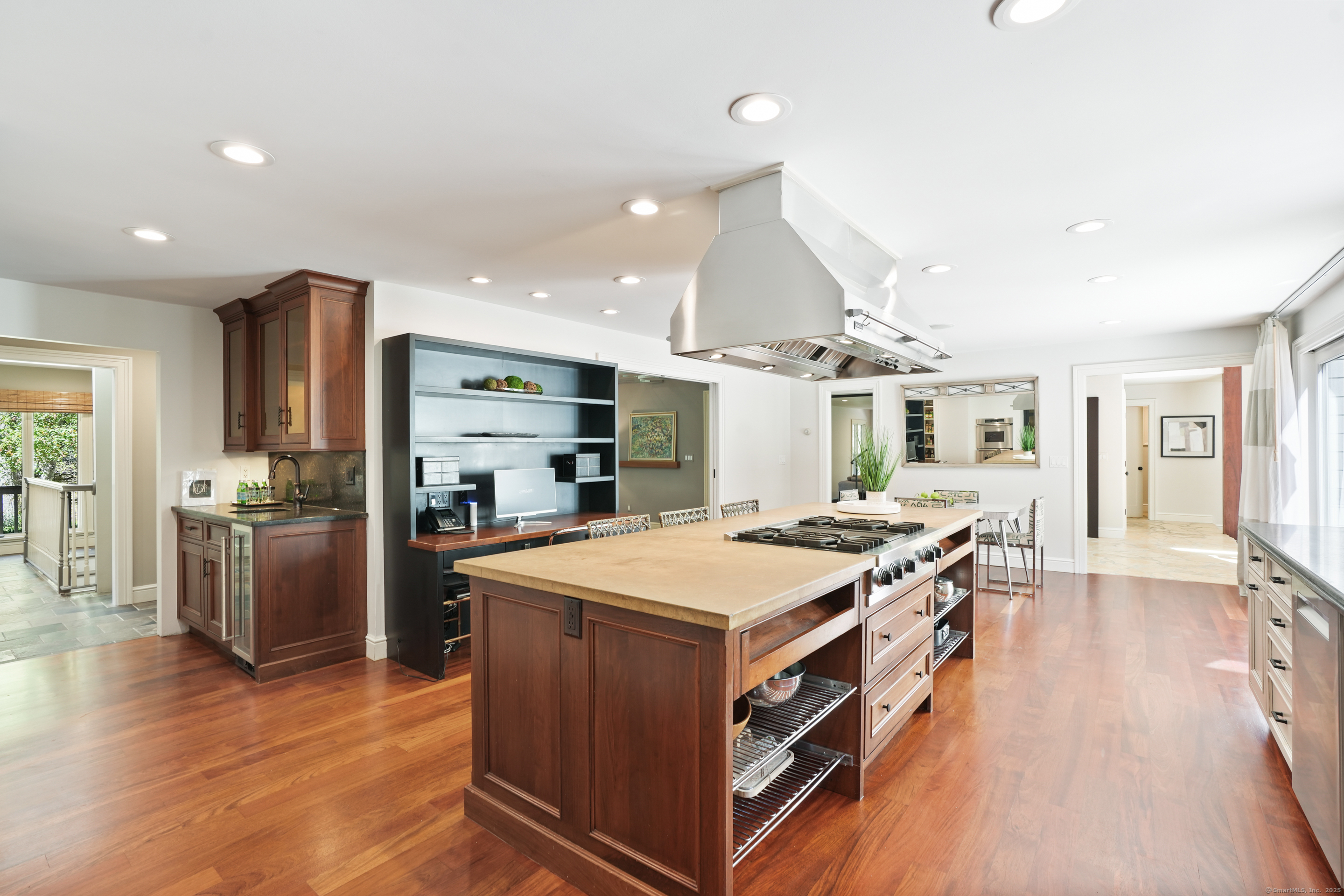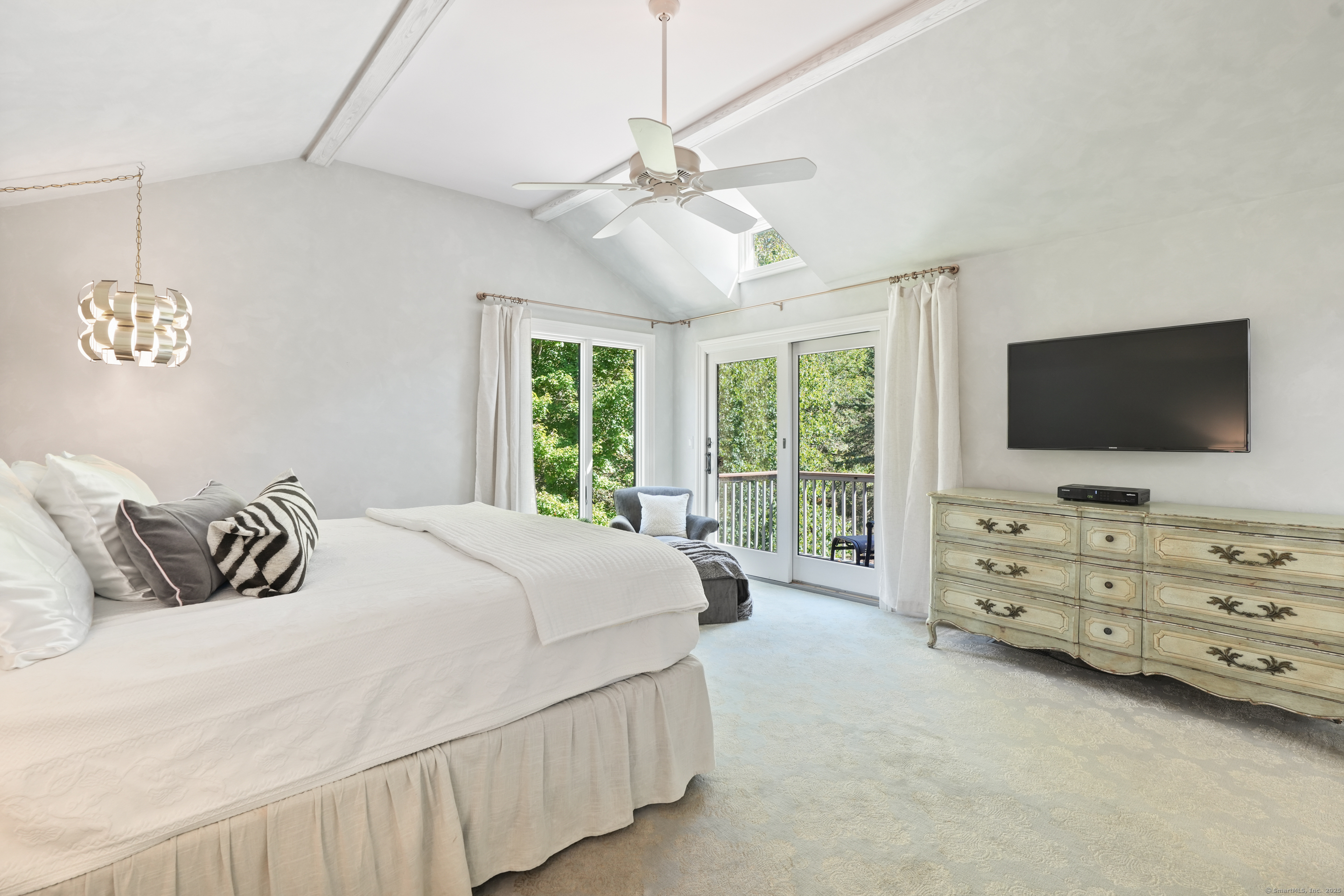 Set on more than two acres of exquisite, park-like property in the coveted Red Coat estate section of Westport, this spectacular modern home with a glorious gunite pool offers an ideal lifestyle. A designer's own residence, this home showcases uncompromising quality with intuitive features. The landscaped approach begins with a large stone parking court that accommodates entertaining on a grand scale. The dramatic entrance leads to a soaring foyer with custom stairs, where the sun-filled interiors begin to unfold and glimpses of the glorious rear property and pool come into view. The grand-scale Great Room w/gas fireplace has windows & doors on three sides, brining in light and views. The fam rm has a professional media system to bring your favorite shows and games to the big screen, and access to the serene screened-in porch. The gourmet kitchen has style and flair w/concrete center island, stone counters, Sub Zero & Viking appls, wet bar w/beverage chiller, lrg pantry, built-in desk, dining area & access to the deck. The dining room has a custom built-in server, 3D ceiling design & doors to a covered deck. The flexible 2nd level has 5 BRs incl a grand primary suite w/two balconies, excellent closet space & a luxe bth w/glass shower & spa tub. All baths have been updated. The apt/guest wing w/priv entry, 2 rms, kitchenette & laundry is ideal for multi-generational living or anyone seeking privacy. Finished walk-out LL w/rec & office spaces. Many new improvements. Generator.