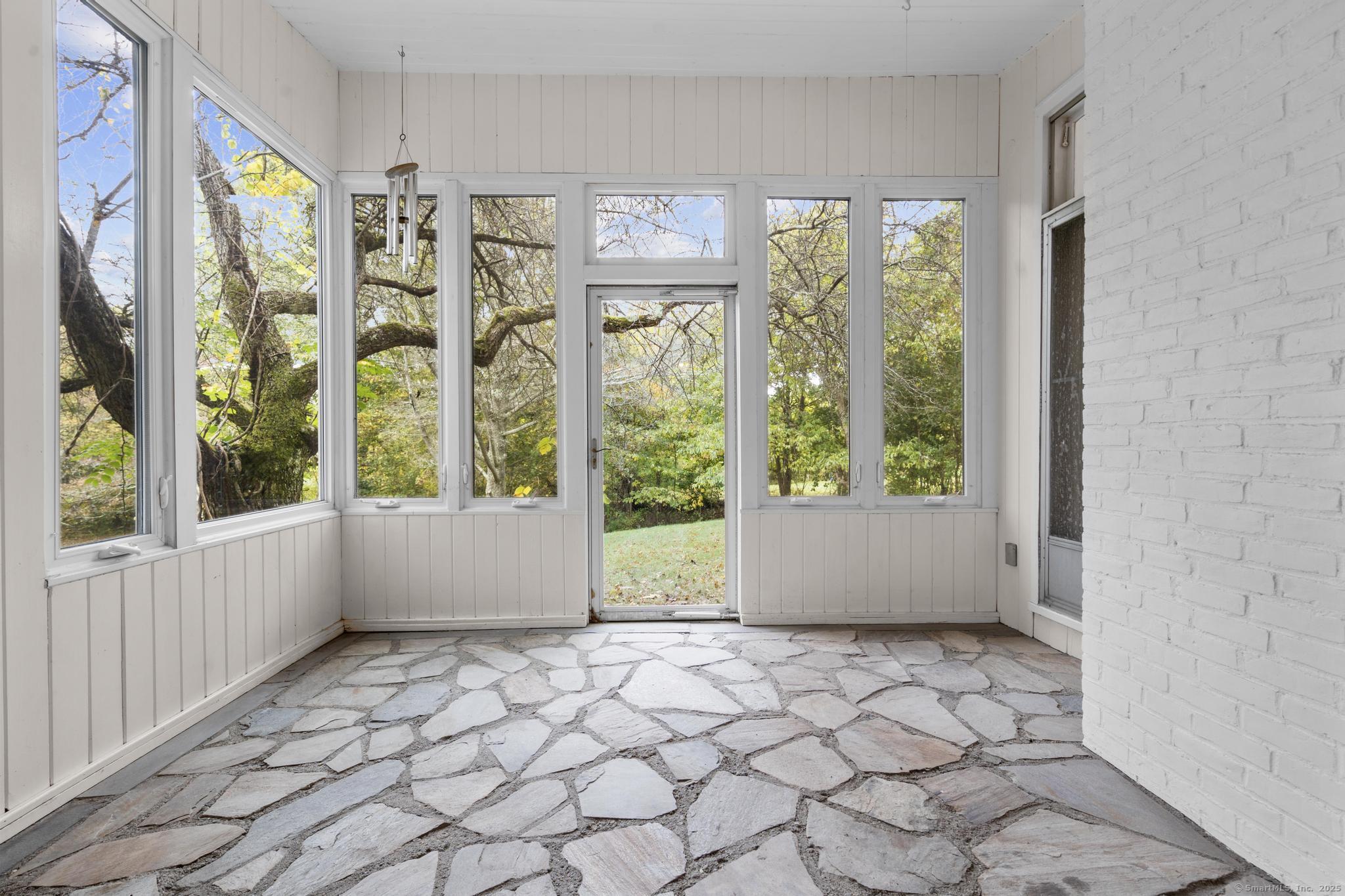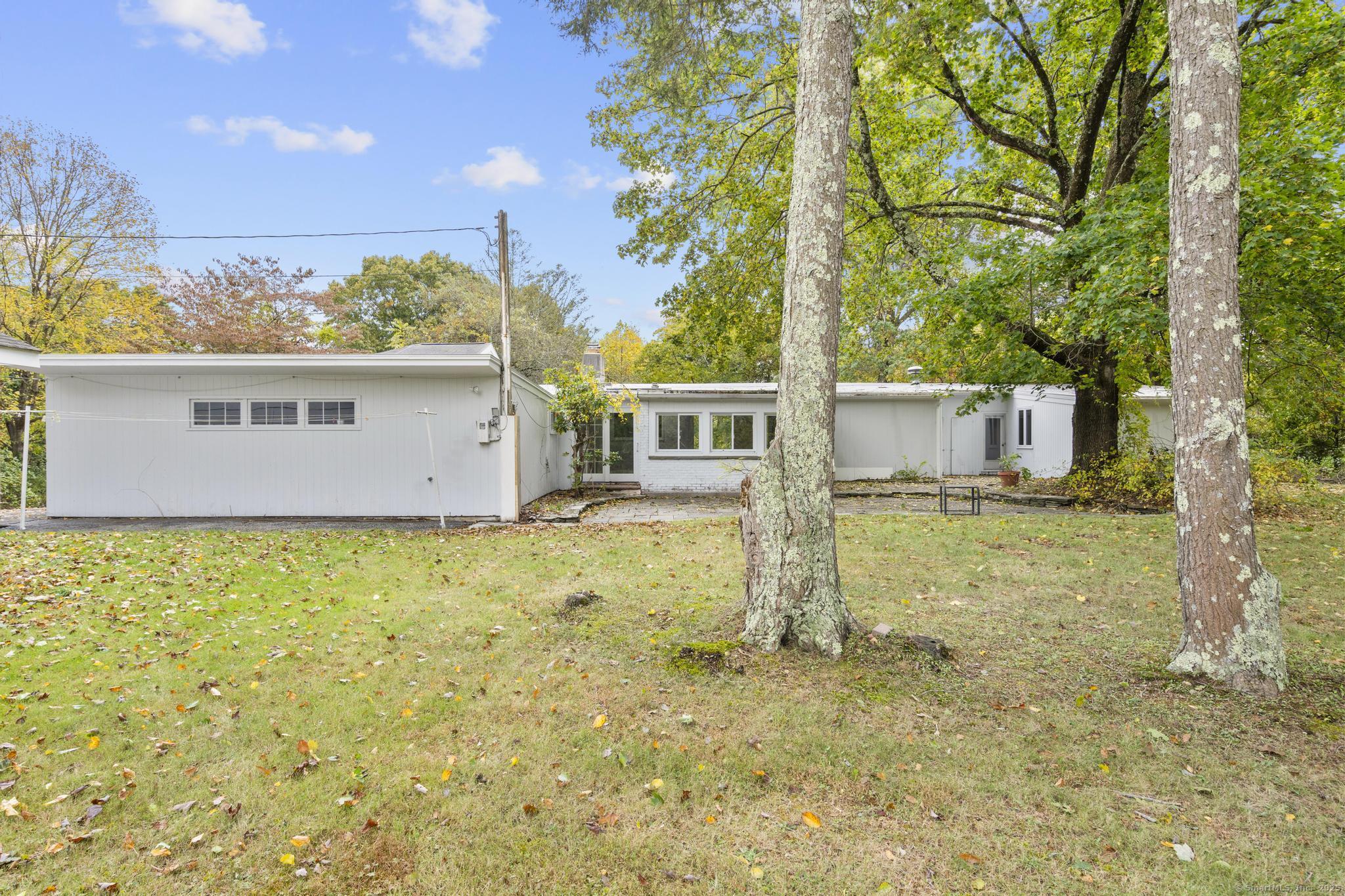 Step into this one-of-a-kind mid-century ranch, nestled in the heart of Monroe. This home combines timeless character with limitless potential. Featuring an open-concept design, the home is bathed in natural light thanks to expansive windows. The property includes both an attached two-car garage and a detached outbuilding with an open-concept room-partially finished and ideal for storage, a studio, or a workshop. The back section of the outbuilding also includes a separate door for storage. The flat, level lot offers privacy, making it a perfect setting for outdoor gatherings. From the driveway, you'll be greeted by a walkway leading to the covered front entryway, adding to the home's curb appeal. Inside, a light-filled foyer welcomes you with its architectural skylight & surrounding windows, creating an inviting first impression. This space, with French doors opening to the yard, is perfect for a dining area. The updated kitchen features stainless appliances, abundant cabinetry & granite countertops. At the heart of the home is a striking rotunda, a versatile area that could function as a study, sitting room, dining nook, or home office. The floor plan includes a galley kitchen, a dining room, and living room w/ fireplace. 3 generously-sized bedrooms & 2 full baths complete the main level. An enclosed porch offers additional indoor-outdoor living space. The lower level is partially finished, providing extra living space and ample storage.