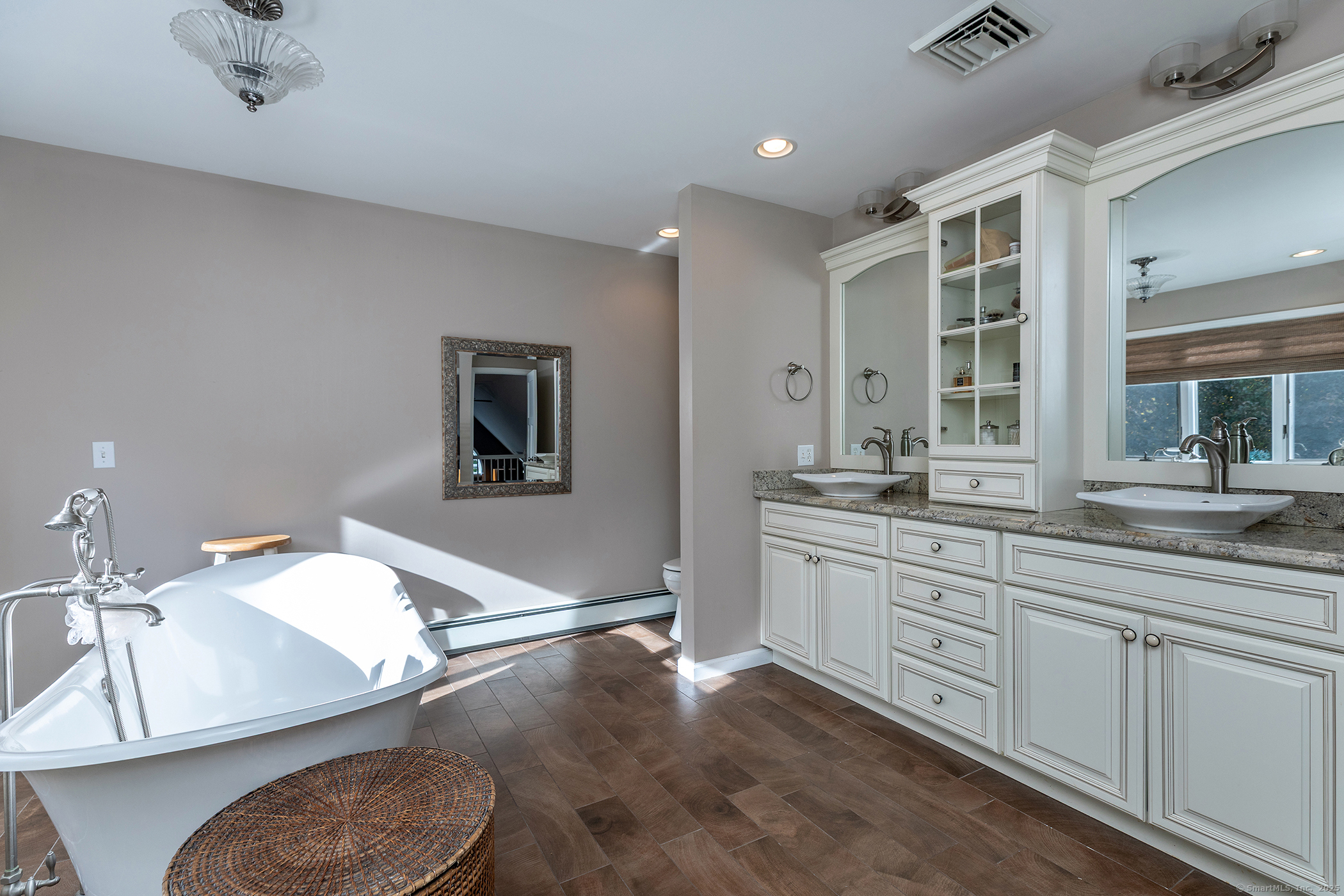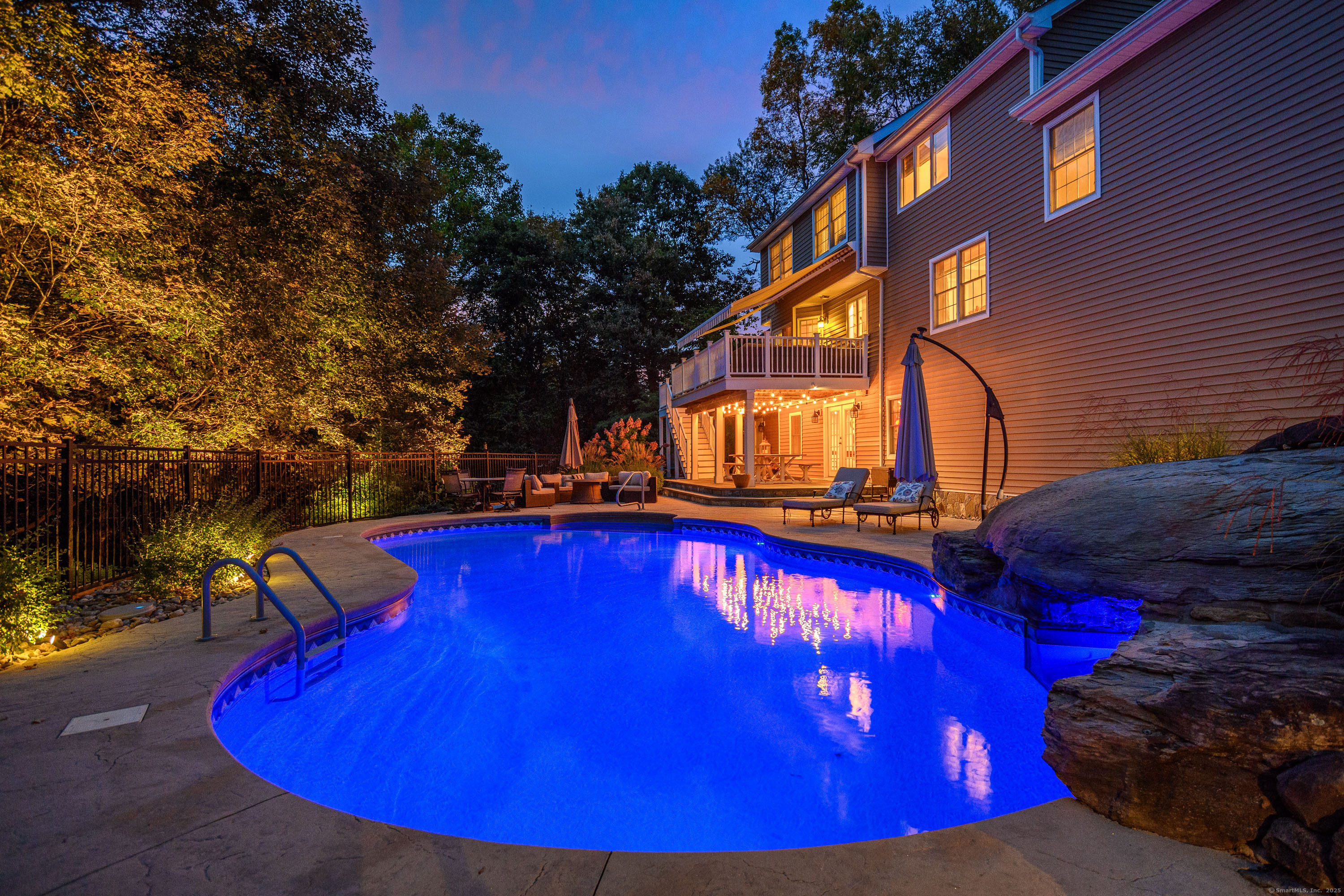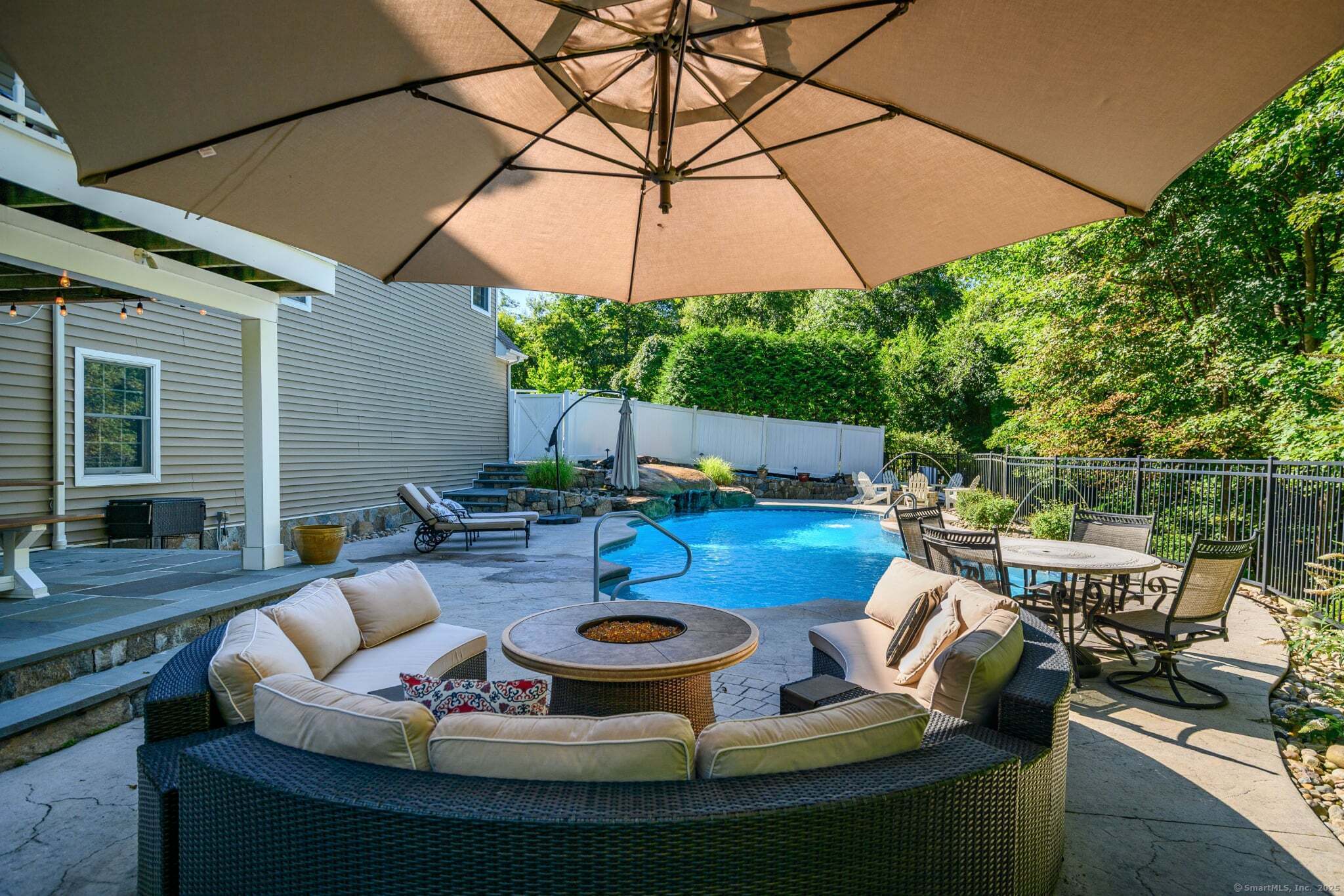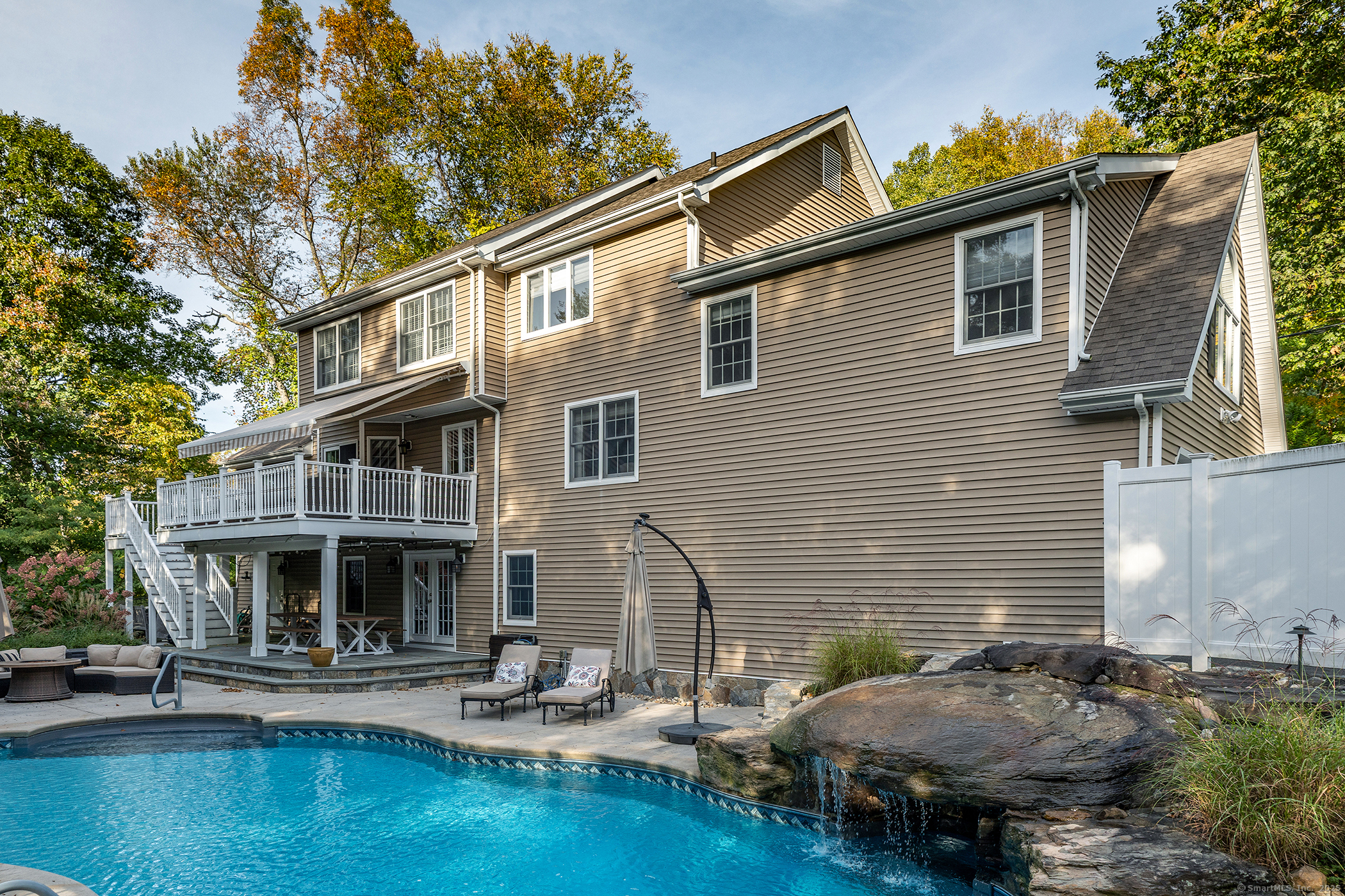 Beautifully Updated 4-Bedroom Contemporary Colonial with Saltwater Pool located in a highly desirable neighborhood. Offering easy access to 684 for Westchester and NYC commuters, this stunning 4-bedroom, 3.5-bath home blends modern comfort with timeless style. Step inside to find spacious, sun-filled living areas and thoughtful updates throughout. The fully finished walk-out basement with French doors to the pool and a full bathroom offers flexible living space-perfect for guests or a potential in-law setup. The kitchen features a Sub-Zero refrigerator (2022), Wolf double oven, DCS gas cook top and Viking wine fridge (at the wet bar). The dining and family rooms are accented with Hunter Douglas blinds and custom window treatments. Upstairs, the offset primary suite impresses with a beautifully remodeled bathroom featuring custom Kingswood cabinetry, stand up glass shower and soaker tub. Enjoy peace of mind with major updates including a brand-new boiler with holding tank (2025), central air condenser (2022), newer water softening system and all doors have been updated to shaker style solid wood. Outside, relax beneath the motorized deck awning (2024) or entertain on the stone patio overlooking a saltwater heated pool with swim-in grotto. The property is enhanced with custom masonry, stone fascia, and outdoor lighting illuminating the front, driveway, and pool areas. This home is the perfect blend of sophistication, comfort, and outdoor enjoyment-truly move-in ready.