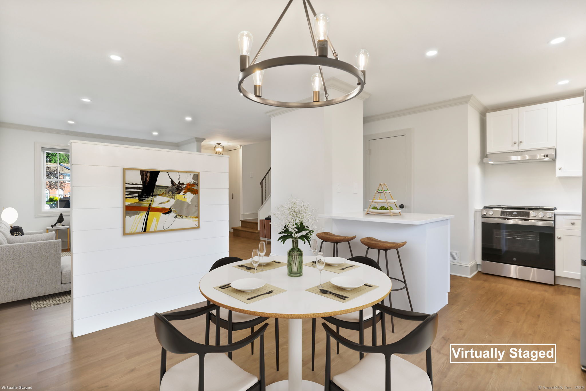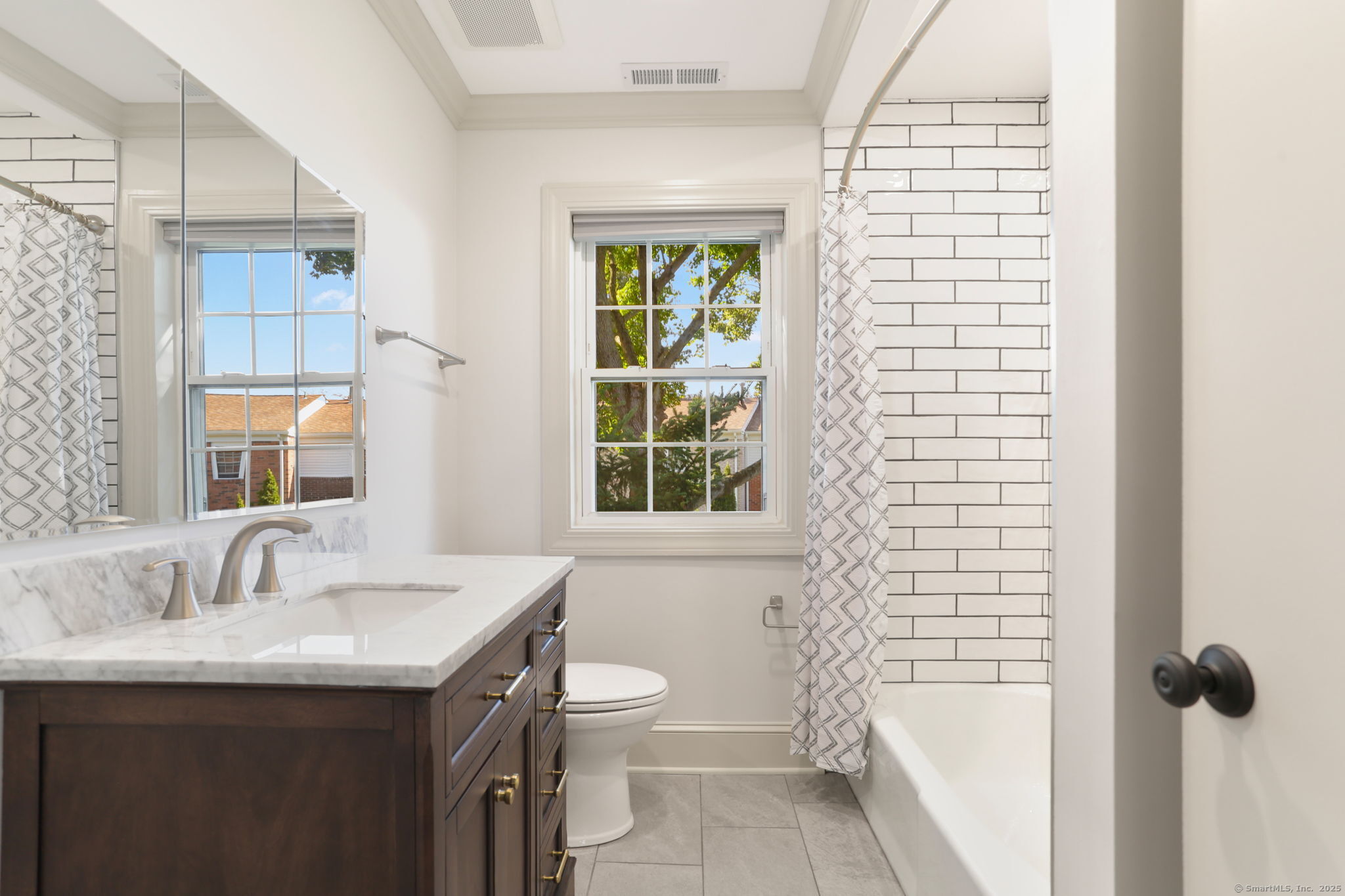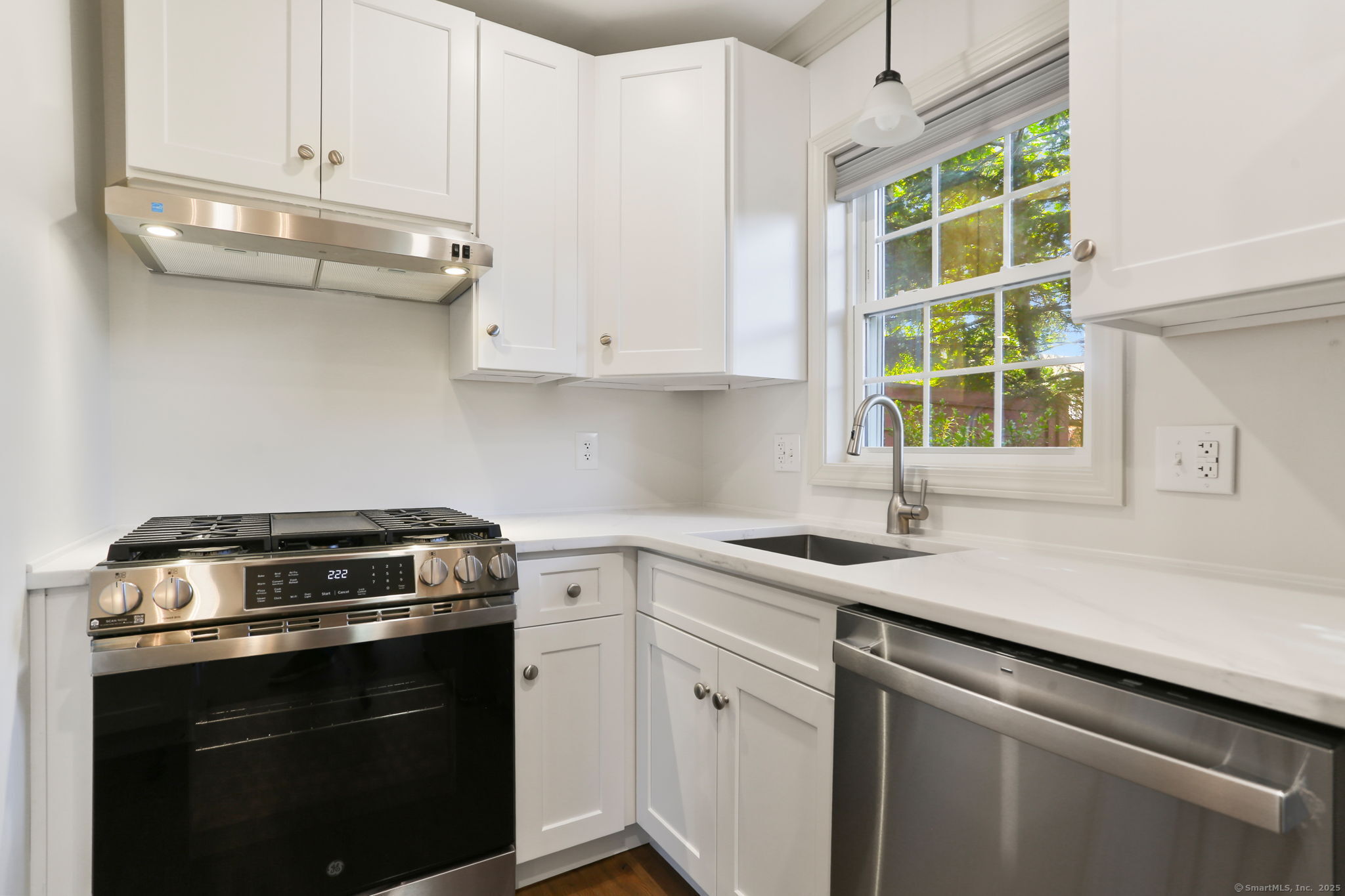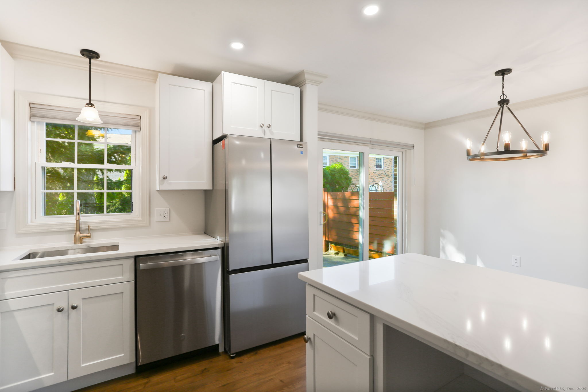 Turnkey Milford townhouse blends style, comfort and all the essentials for everyday life. The updated and freshly painted home features new flooring, baseboard and crown moulding and newer windows. A bright, open floor plan offers a living room with entertainment wall and kitchen updated with custom cabinets, quartz counters, GE gas range and hood vent, dishwasher and counter-width refrigerator, an island with seating for two and dining area with sliders to patio. Plus a convenient powder room for guests. Upstairs, the spacious primary bedroom with two closet systems overlooks the front of the home. The second bedroom offers a spacious closet system. Renovated full bath features new tile floor, vanity and medicine cabinet, a shower/tub combo with textured subway tile and linen closet. The lower level includes a cozy family room with a mounted TV, laundry area, and storage. Gas heat, newer furnace, and new central air. Assigned and guest parking. Pet-friendly (with restrictions). The Longmeadow Condominium Community offers an in-ground pool, basketball court, and playground. As a Milford resident, you have access to the many beaches-the closest being Anchor Beach. The Woodmont neighborhood offers restaurants, shopping, the Robert Treat Farm and Summer Farmer's Market and is just a quick ride into Downtown Milford for the Oyster Festival, Pop-Up Shops on the Green, Christmas Tree Lighting, Lamplight Stroll and restaurants, cafes, bakery, shopping, a new bookstore and more.
