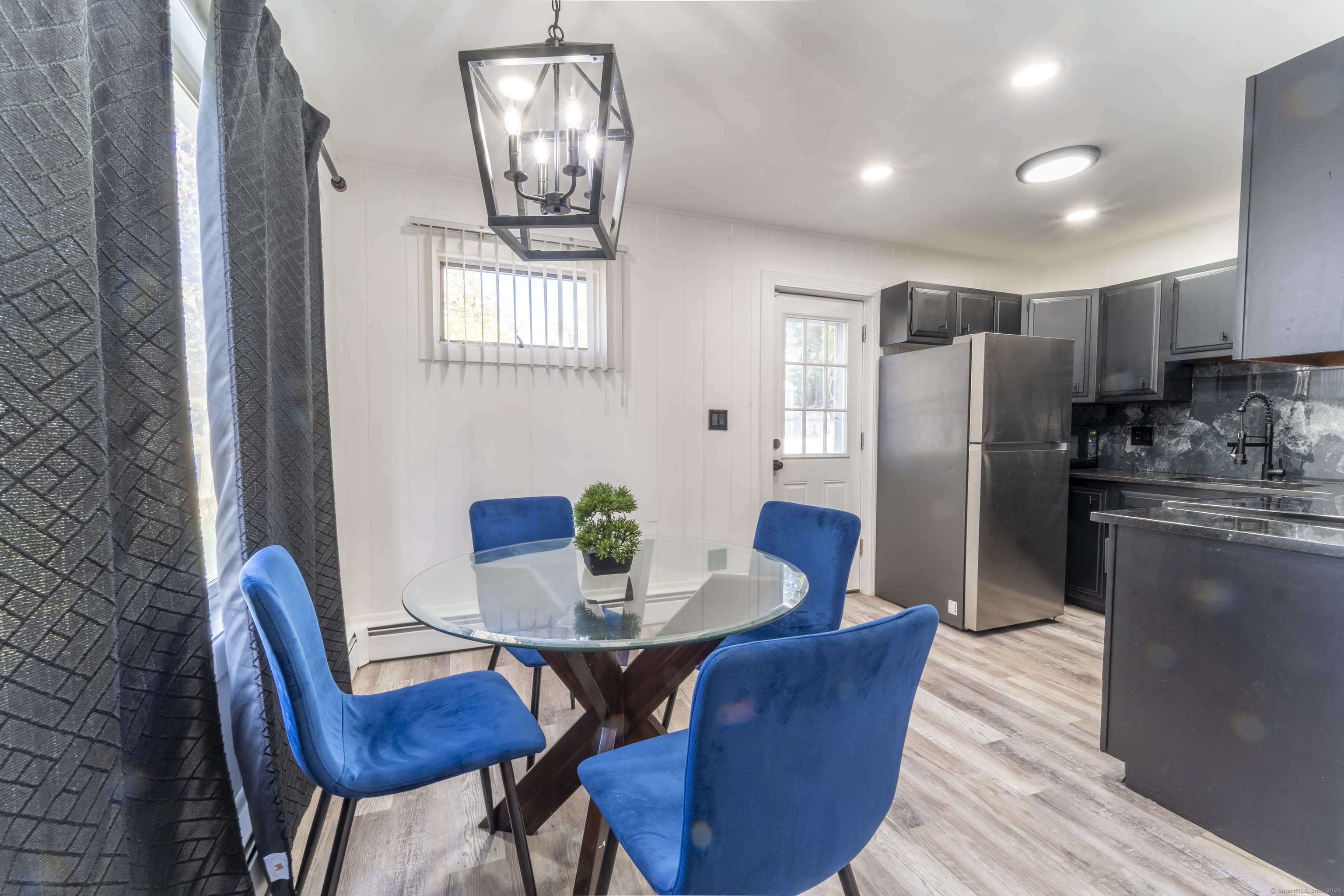 Beautifully remodeled home in a great neighborhood! This modern and stylish house may look small from the outside, but it feels spacious inside with an additional living area in the finished basement. The former owner converted the garage into a beautiful office space that can easily be turned back into a garage if desired. Featuring new appliances, granite countertops, and a custom backsplash, the kitchen is both elegant and functional. The home offers multiple heating and cooling options with oil heat and a mini-split system-making it a great candidate for solar panels. Enjoy peace of mind with a newer roof and siding, plus great outdoor amenities including a private fenced yard, concrete patio, fire pit, and a nice shed for extra storage. Move-in ready and full of charm-this is the perfect blend of comfort, efficiency, and modern living!