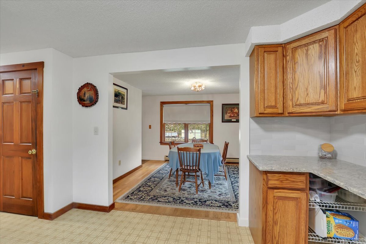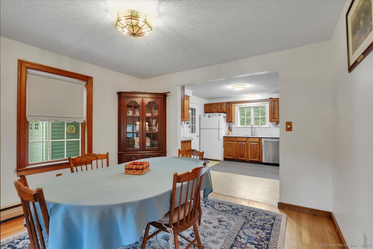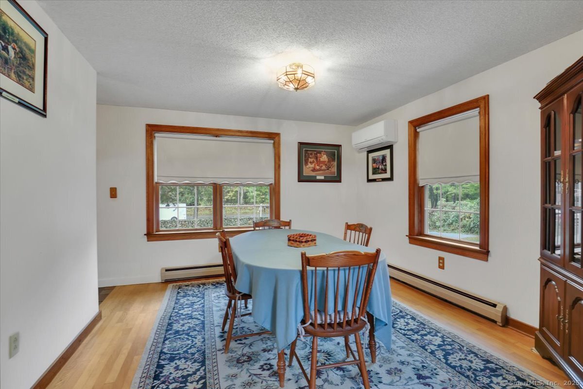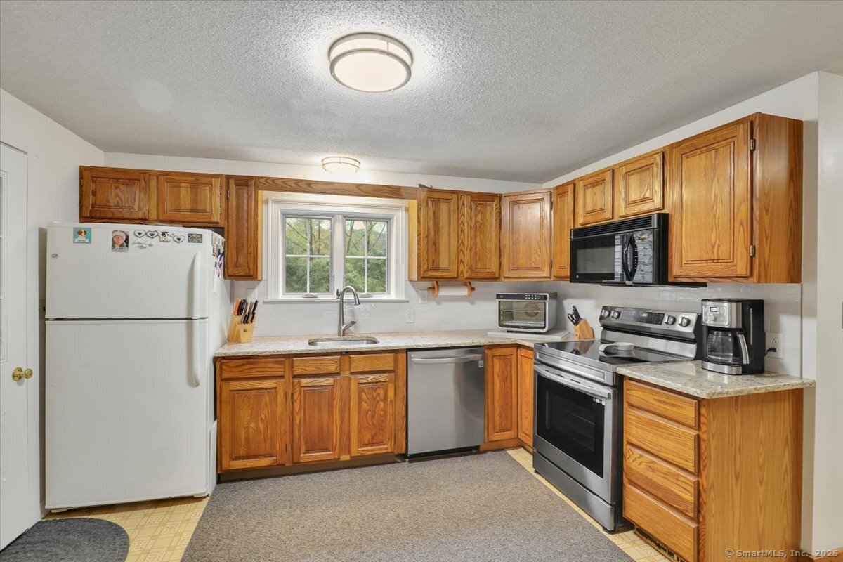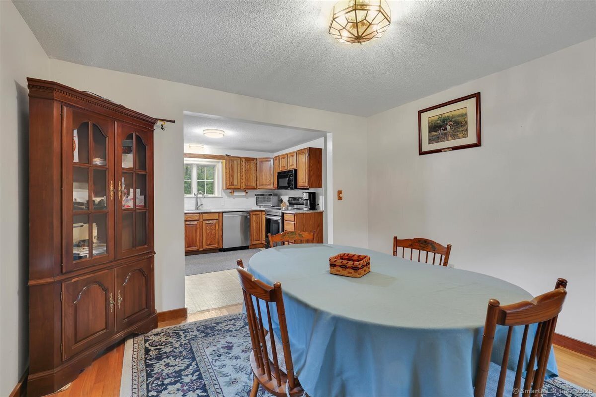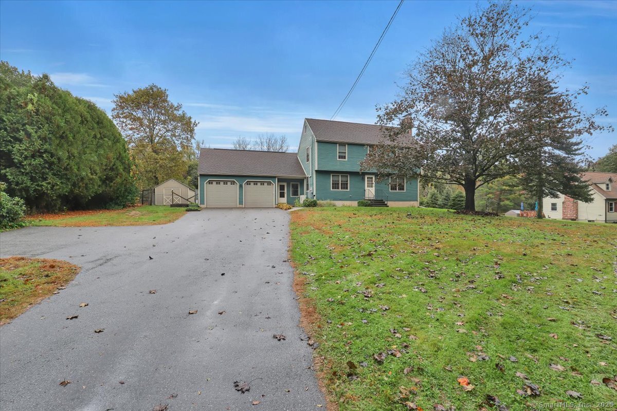 Welcome to this charming 3 bedroom Colonial set back from the road. Property is framed by a classic New England stone wall that stretches across the front of the property. This home offers 3 spacious bedrooms, including: Two large upstairs bedrooms, one with v-groove flooring and a walk-in closet, the other with three closets for abundant storage, wall to wall carpet and a skylight. A convenient main-level bedroom, perfect for guests or flexible use. Also inside you'll find: A large kitchen ready for gatherings and everyday living. A formal dining room with gleaming hardwood floors. A cozy living room featuring a fireplace with pellet stove insert. Additional highlights include a 2 car garage which is connected by an enclosed breezeway which is ideal for a mudroom, pets, or extra storage. Garage attic with pull-down stairs for additional storage. And if you need more space there is a shed for all your yard tools and toys. The property is .99 acres with a partially fenced yard, offering both privacy, safety for your pets and space to enjoy the outdoors. Large open sloping back yard. (Note: Kennel on concrete slab does not convey.) This is a must see home. ACTIVE DATE 10/15/25